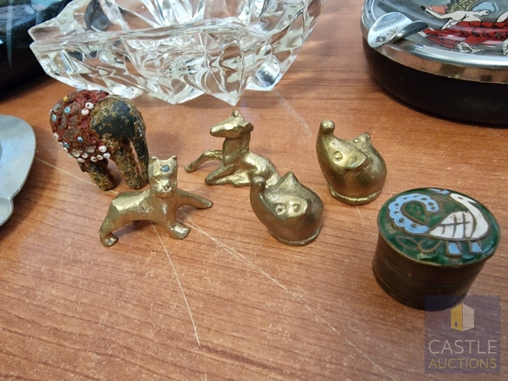 Collection of Assorted Ashtrays, Miniature Animals and Pill Pot, (10)