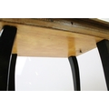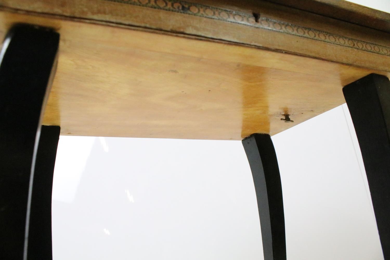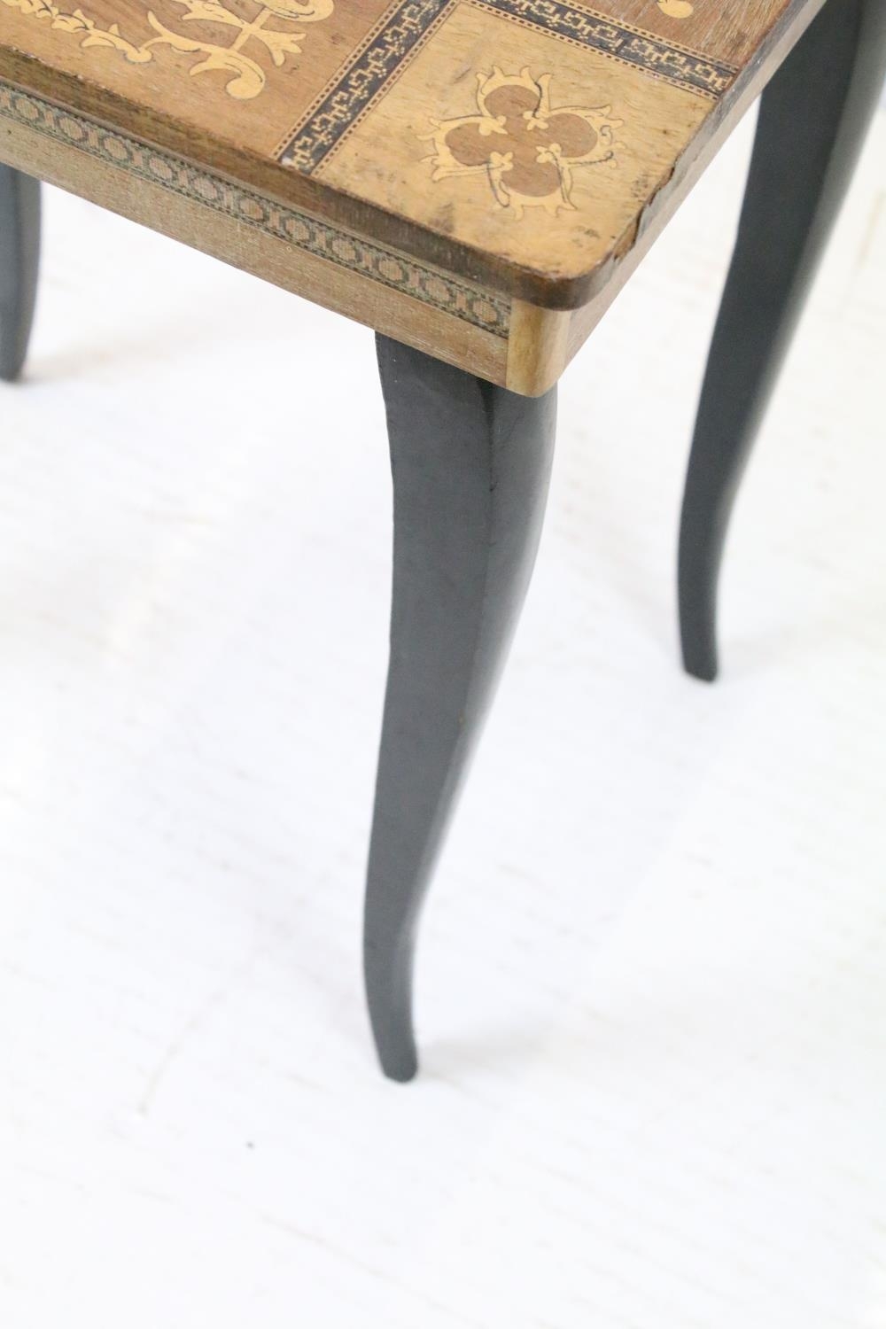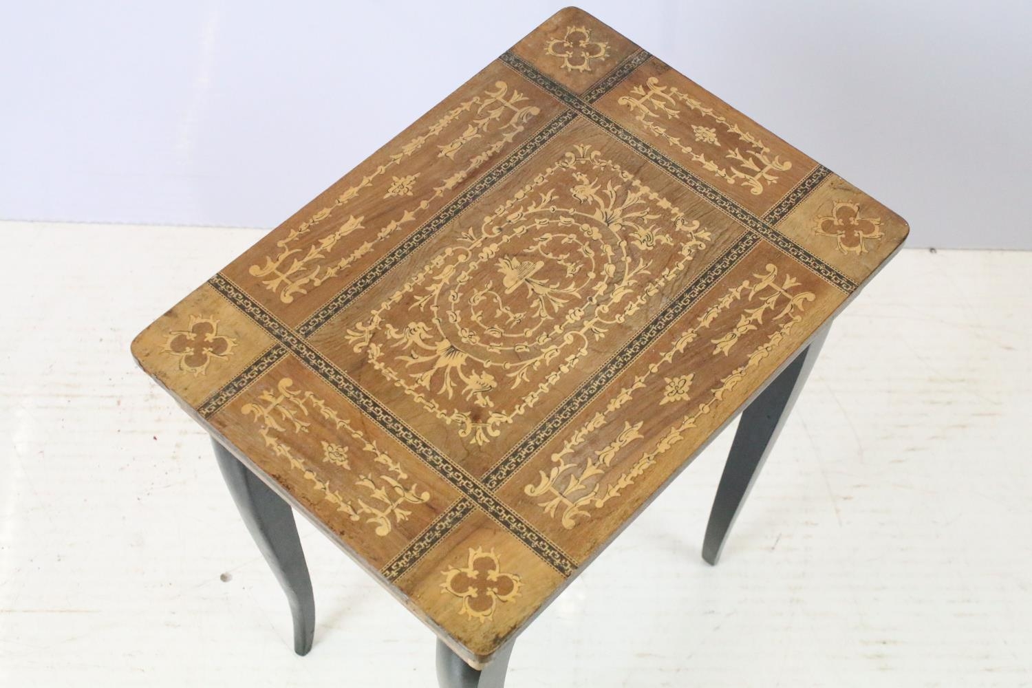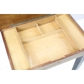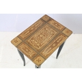 Sewing box on tapering legs, inlaid with foliage design and further inlaid with Tunbridge type banding 44cm high x 37cm wide x 27cm deep
