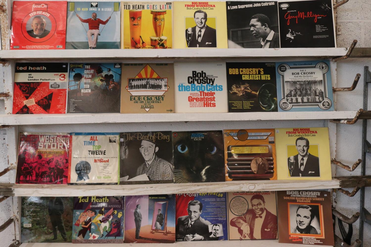 96 Jazz LPs including, Bing Crosby, John Coltrane, Ted Heath, Nat King Cole etc.. carton not included