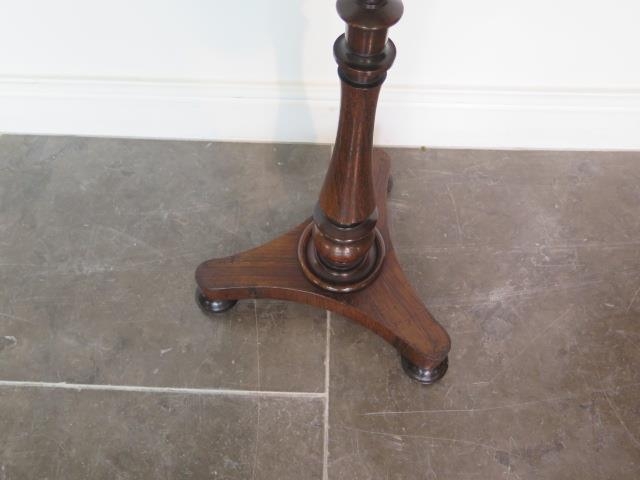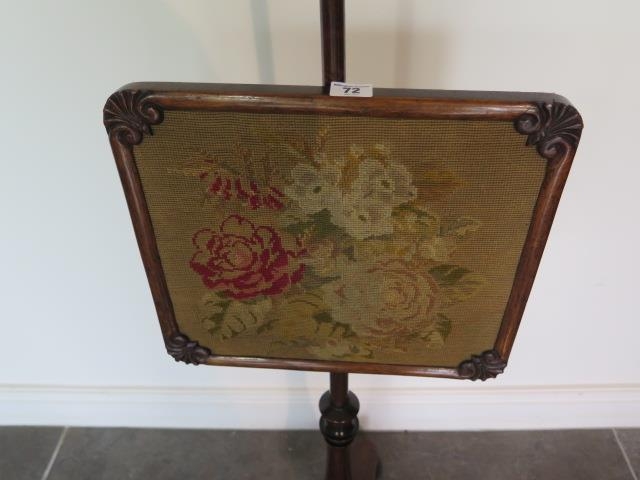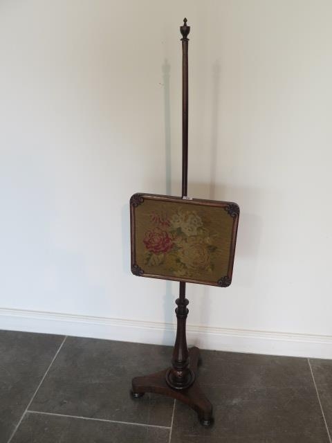 An early Victorian rosewood pole screen with embroided banner in good condition, 142cm tall