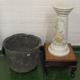 Copper Boiler with studded riveted base, Ceramic Modern Planter Base & 4 Cabriole Legged Footstool with drop in seat (3)