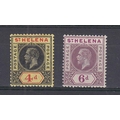 1913 4d black & red/yellow, 6d dull & deep purple both showing split ‘A’ variety R8/3, fresh mint fairly lightly mounted, SG85a & 86a cat £1050