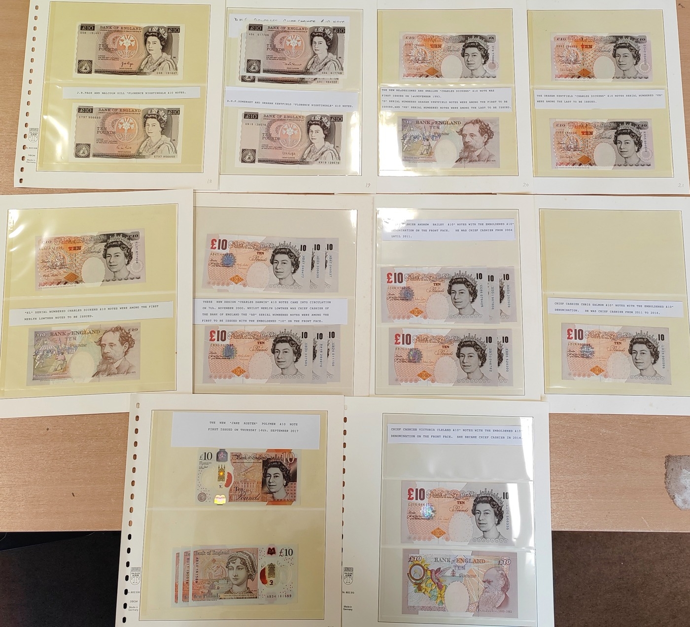 Collection of mostly uncirculated £10 banknotes with J.B. Page (2), Somerset (2), Gill (1), Kentfield (5), Lowther (8), Bailey (5), Salmon (1), Cleland (6). Qty 30 (R)