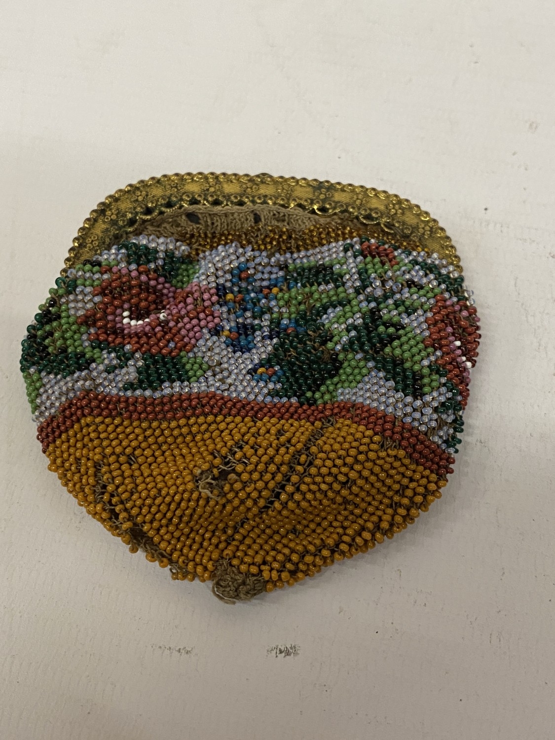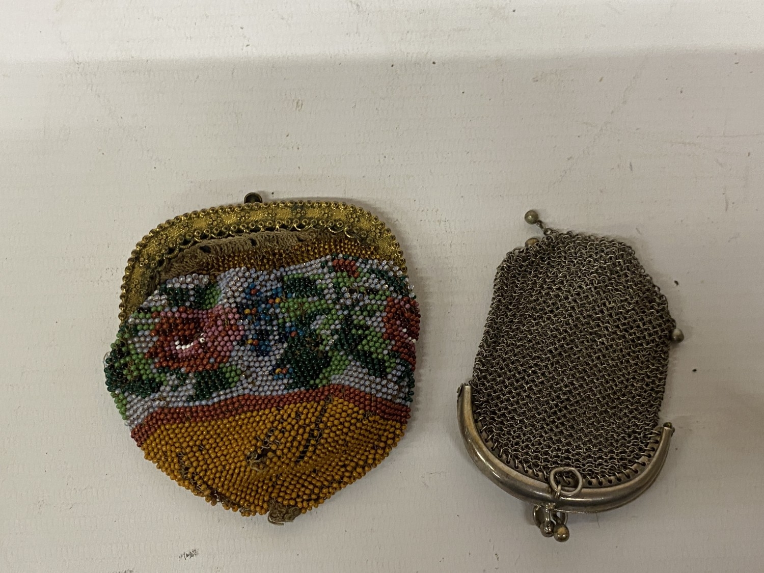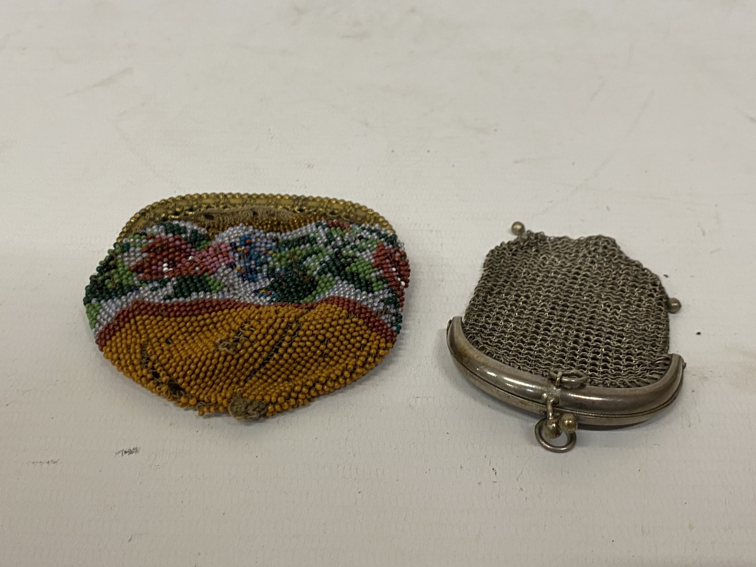 A MINIATURE ANTIQUE CHAINLINK PURSE AND A BEADED PURSE
