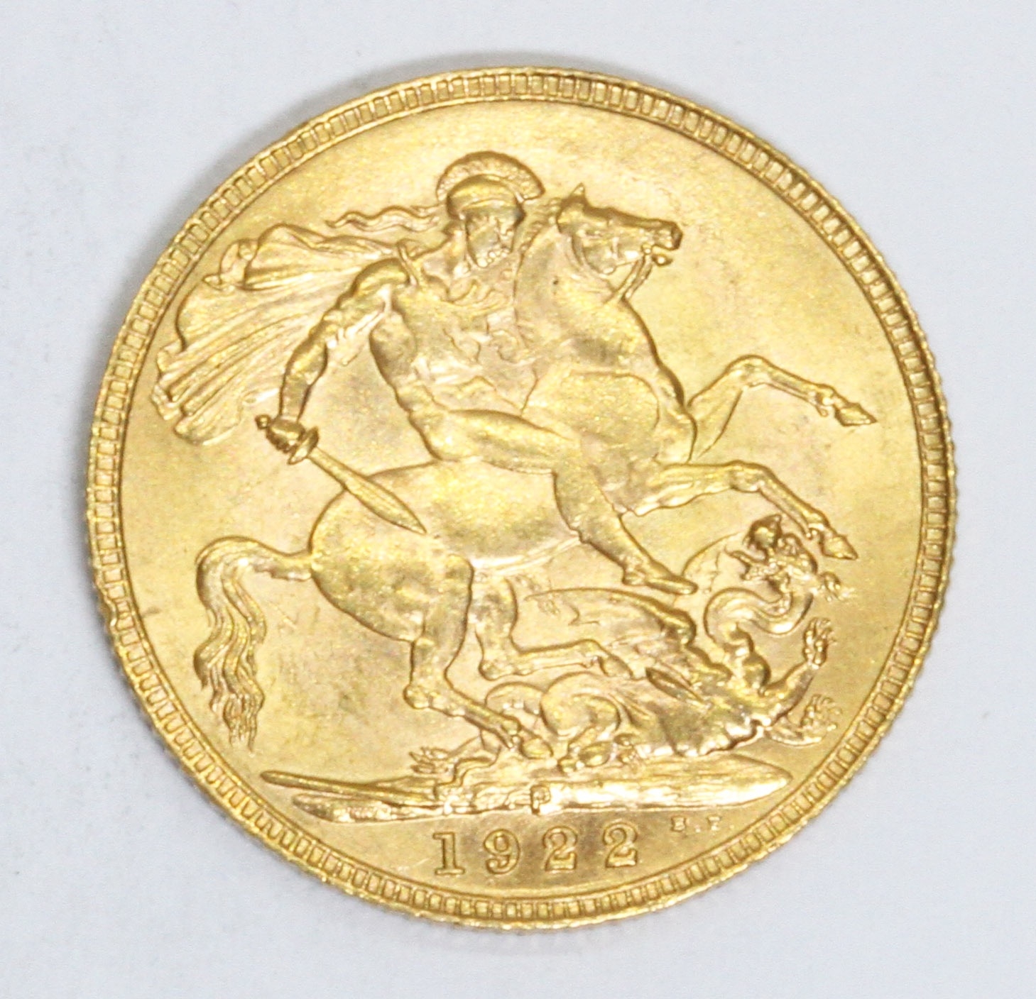 George v 1922 Perthshire Mint soverign, 10% buyer's premium (inclusive of VAT), normal online bidding fees apply.