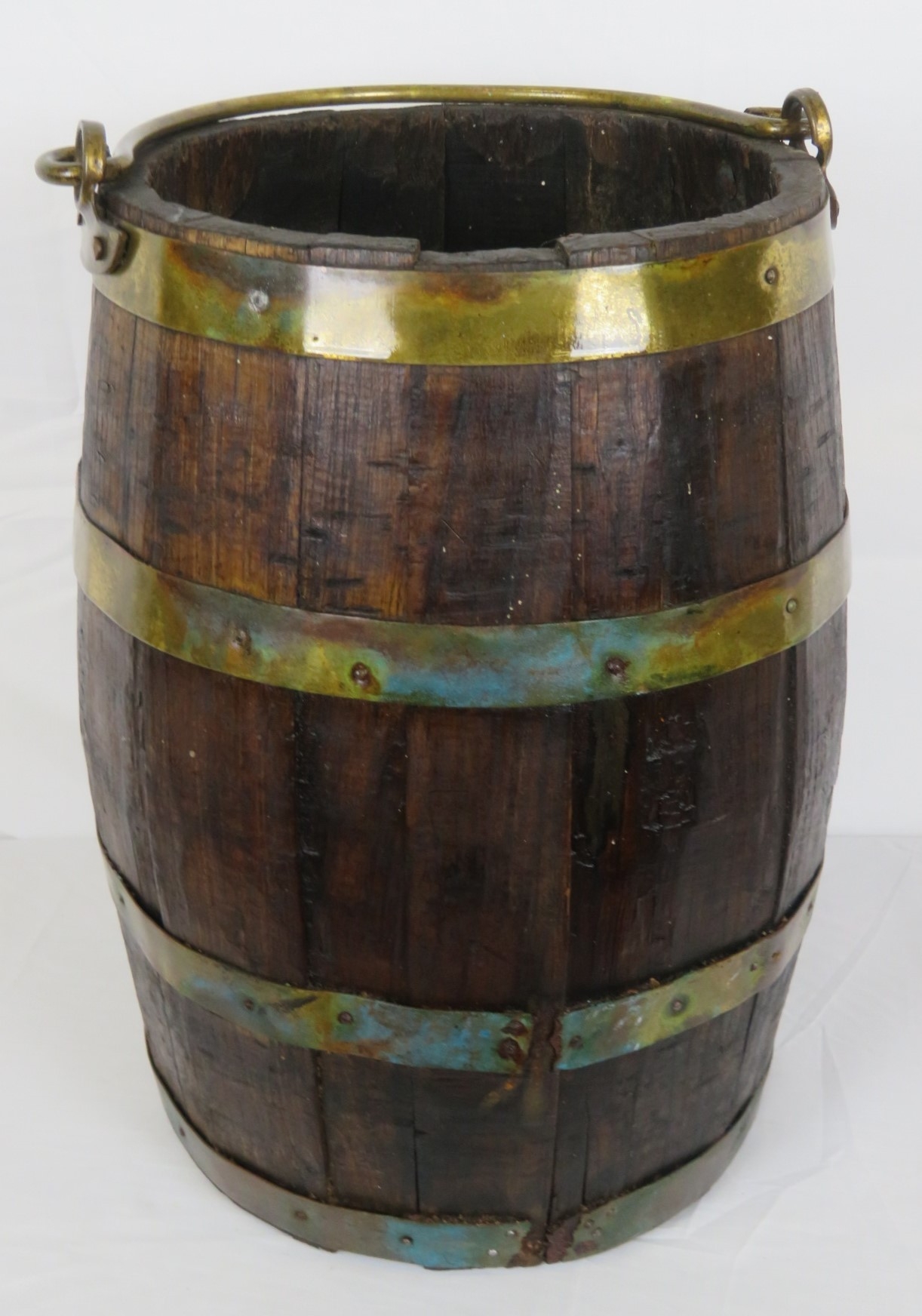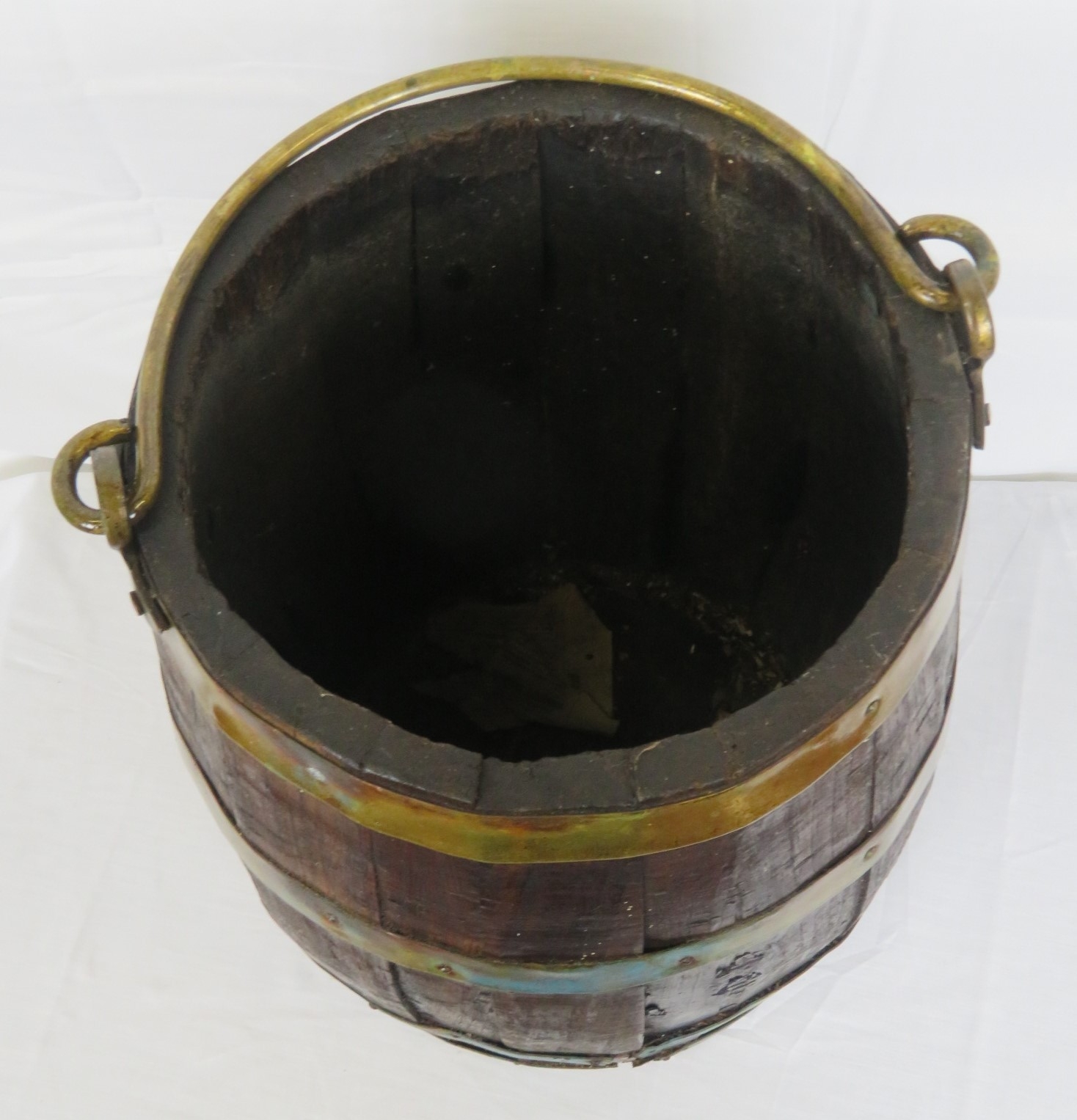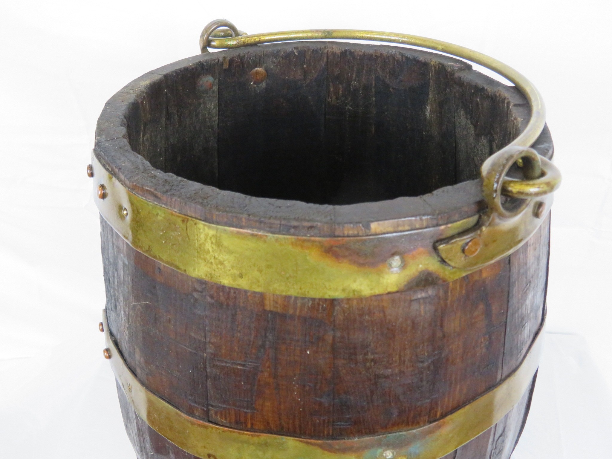 Georgian style round peat bucket with brass banding and shaped handle