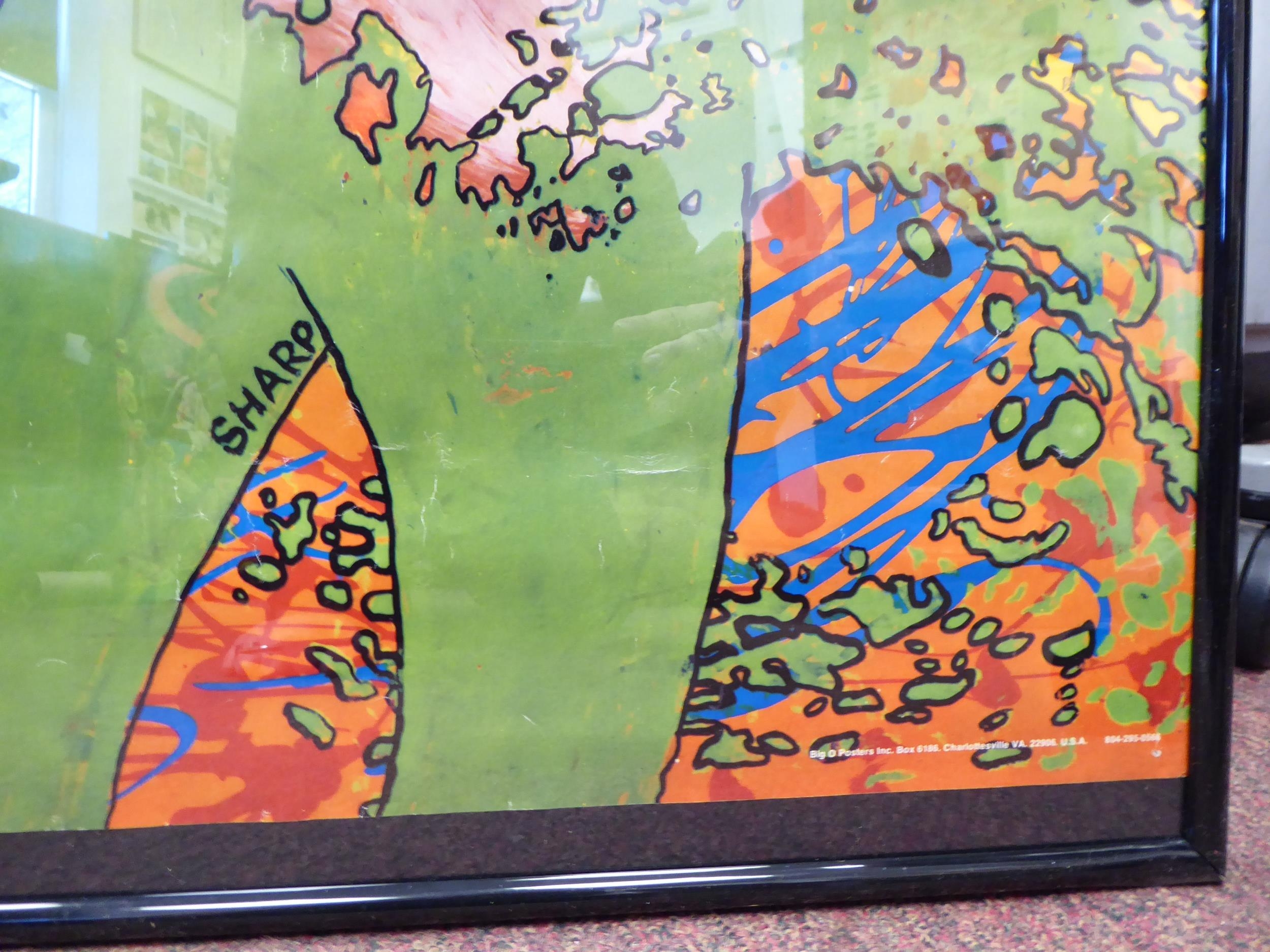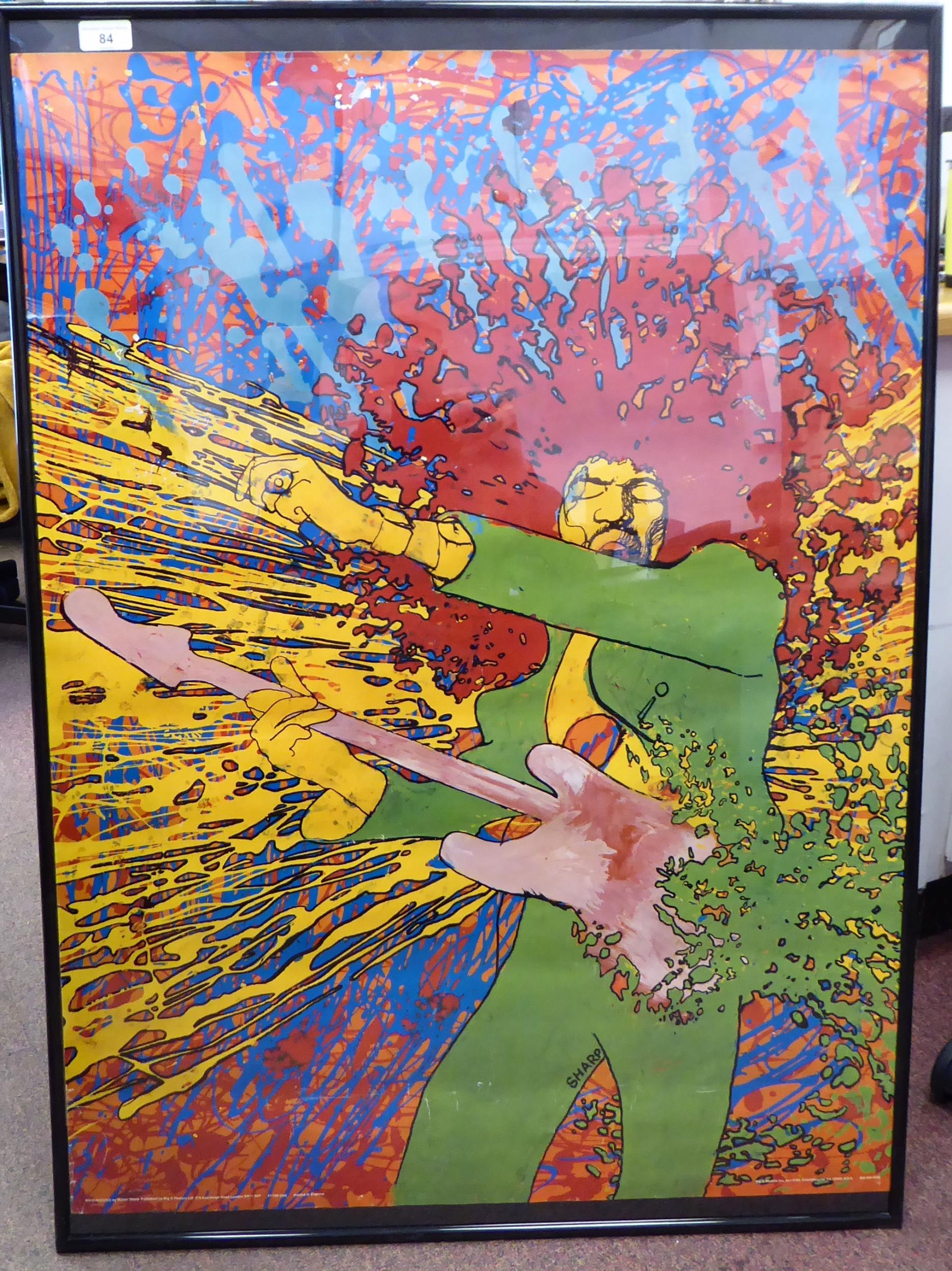 After Martin Sharp - 'Jimi Hendrix Explosion' coloured print poster, MS16 Hendrix by Martin Sharp Publications Big O Posters Ltd 36" x 24" framed