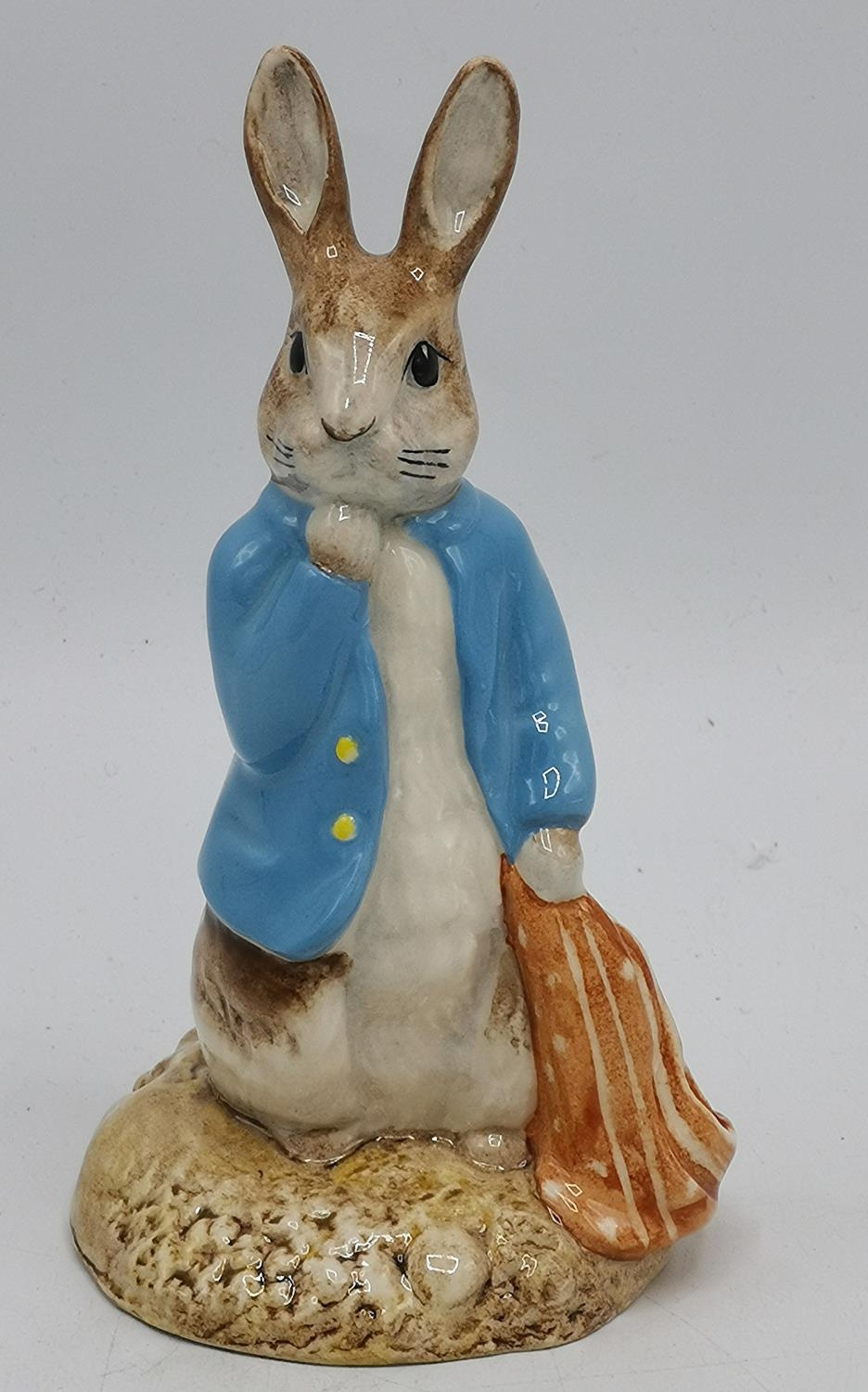 BESWICK BEATRIX POTTER CHARACTER FIGURINE "PETER AND THE RED POCKET HANDKERCHIEF" (Original Box)