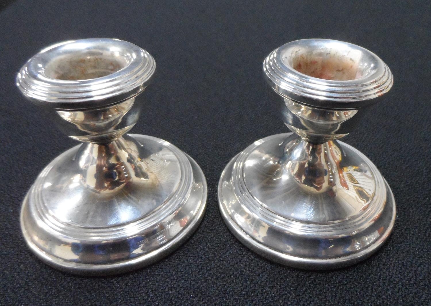 Pair of silver dwarf candlesticks with weighted bases, Birmingham 1970