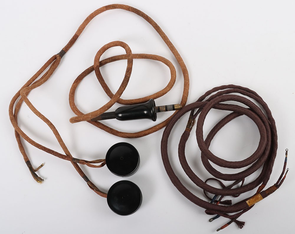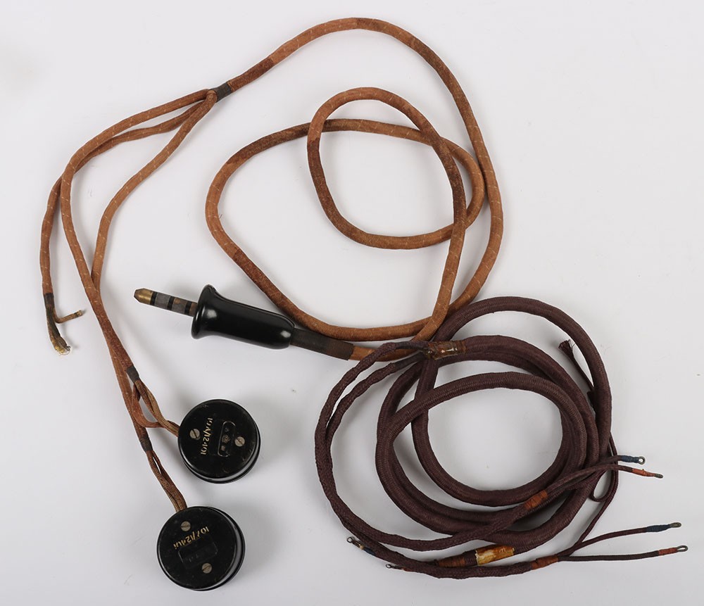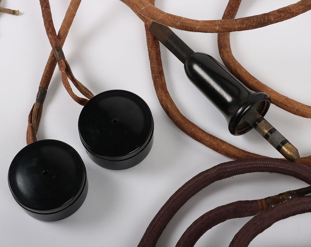 WW2 RAF External Type Wiring Loom & Recievers. A good set of early 'AM' marked receivers with the complete wiring loom and jack plug for external wired flying helmets. Another loom accompanies the lot which can be used for spares. Good overall condition.