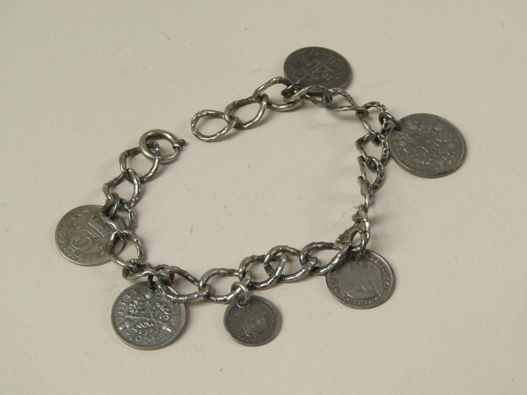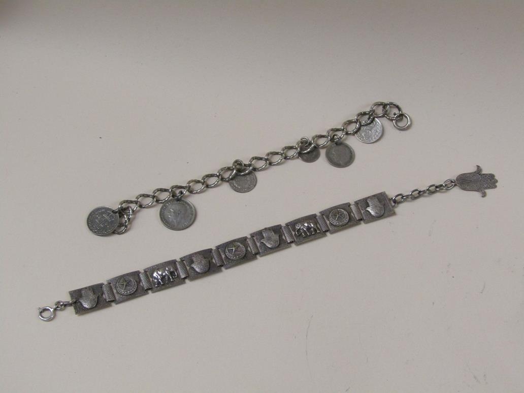 SILVER BRACELET TOGETHER WITH A COIN MOUNTED SILVER BRACELET
