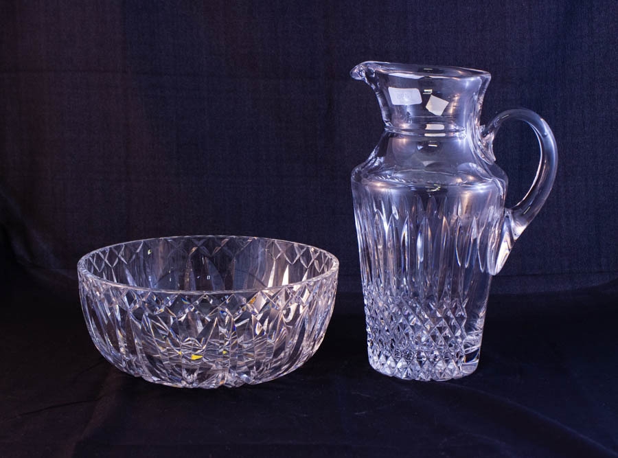 CUT GLASS JUG NS + WATERFORD CRYSTAL BOWL 20CM DIAM
