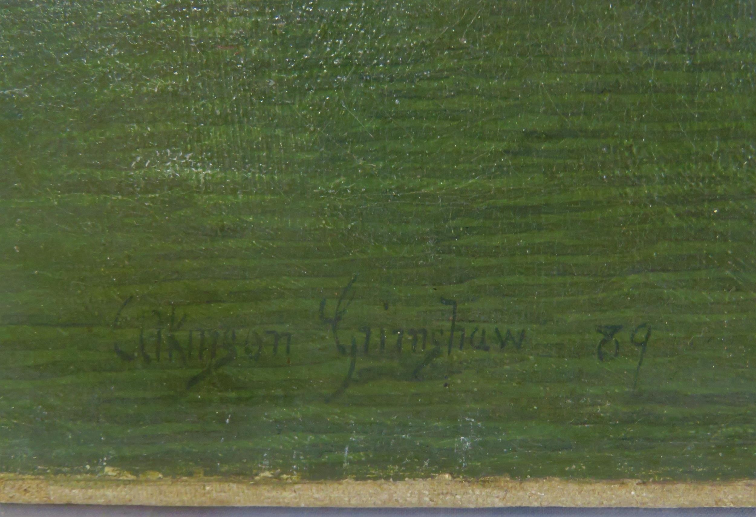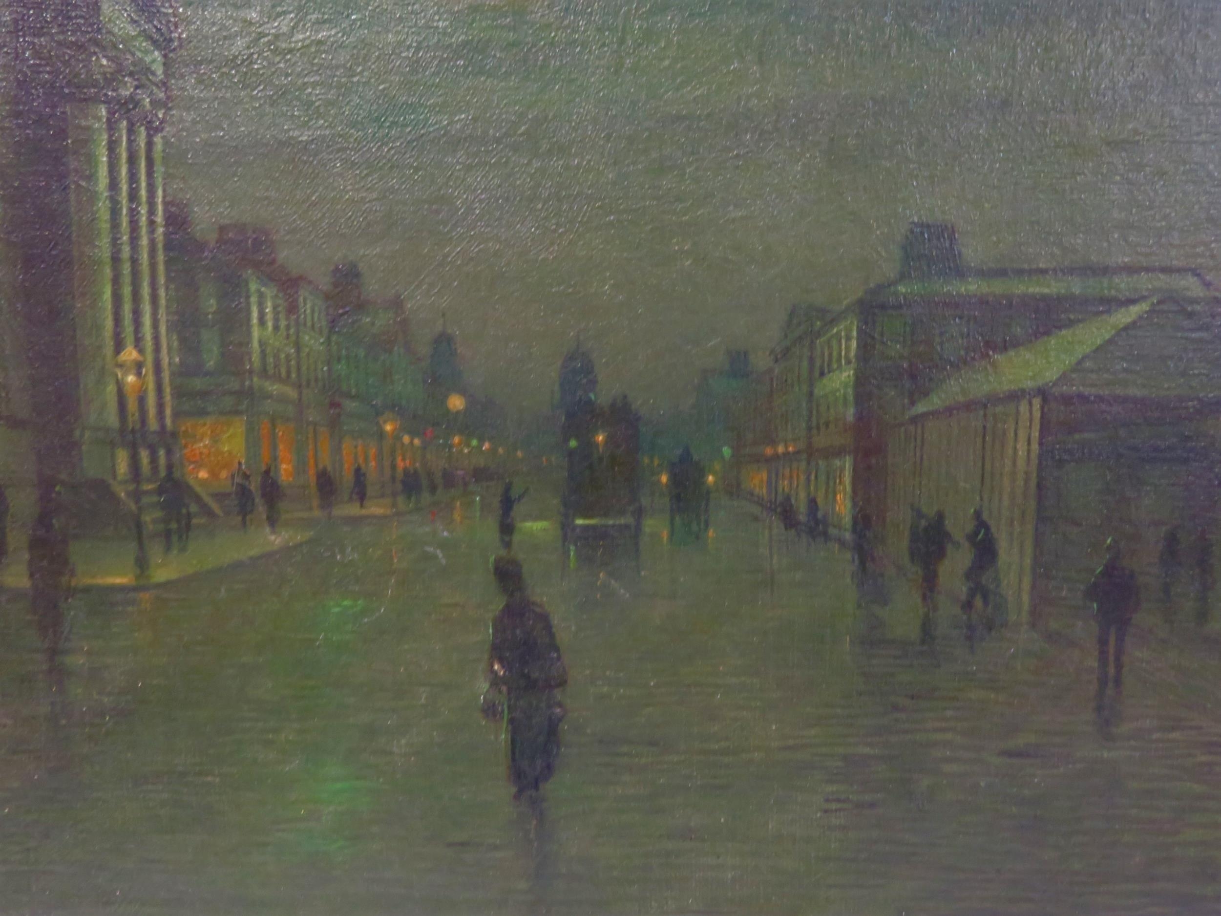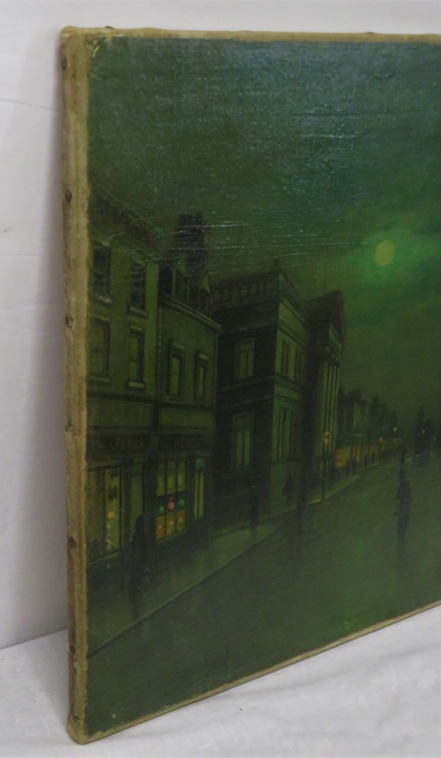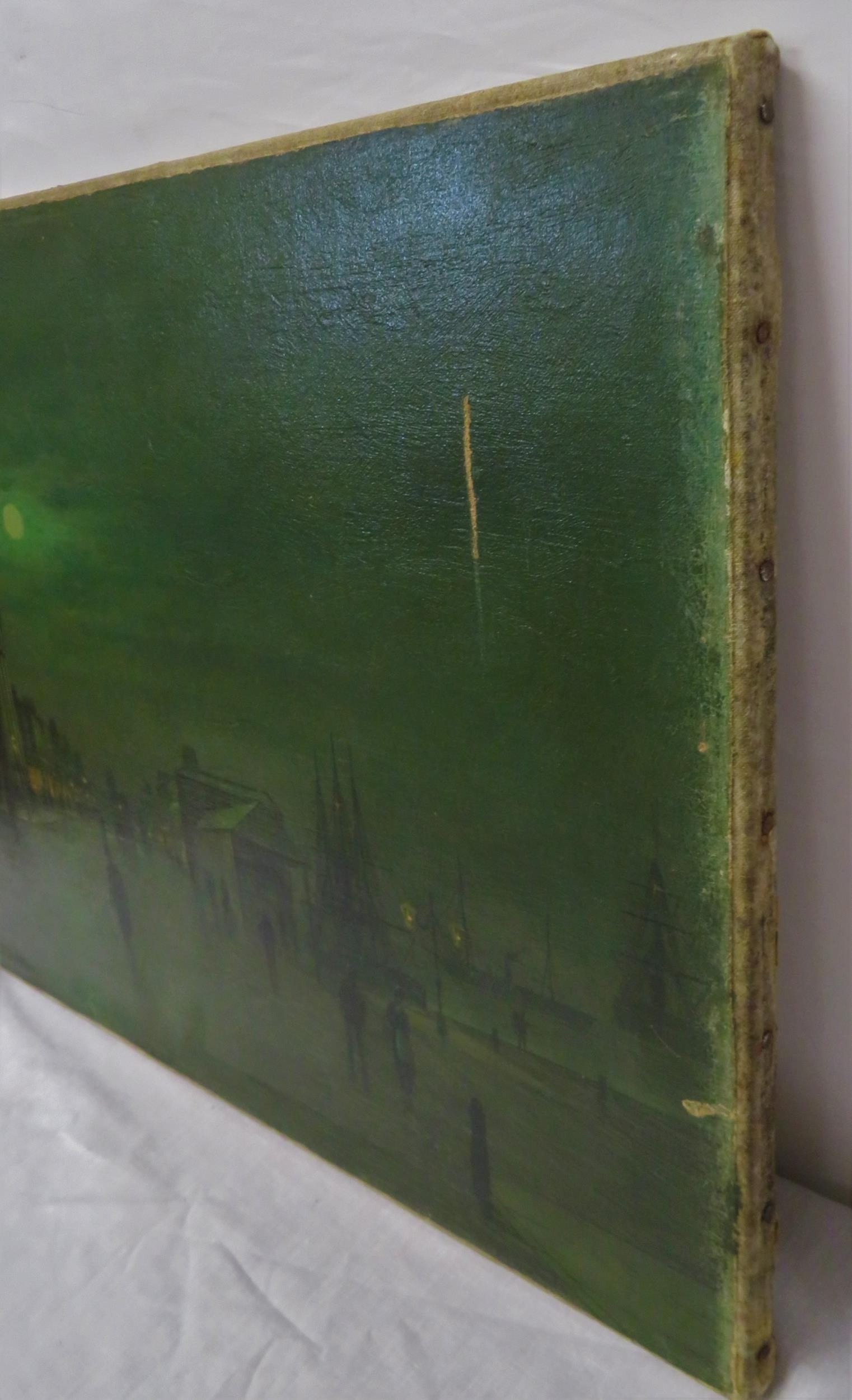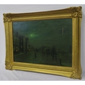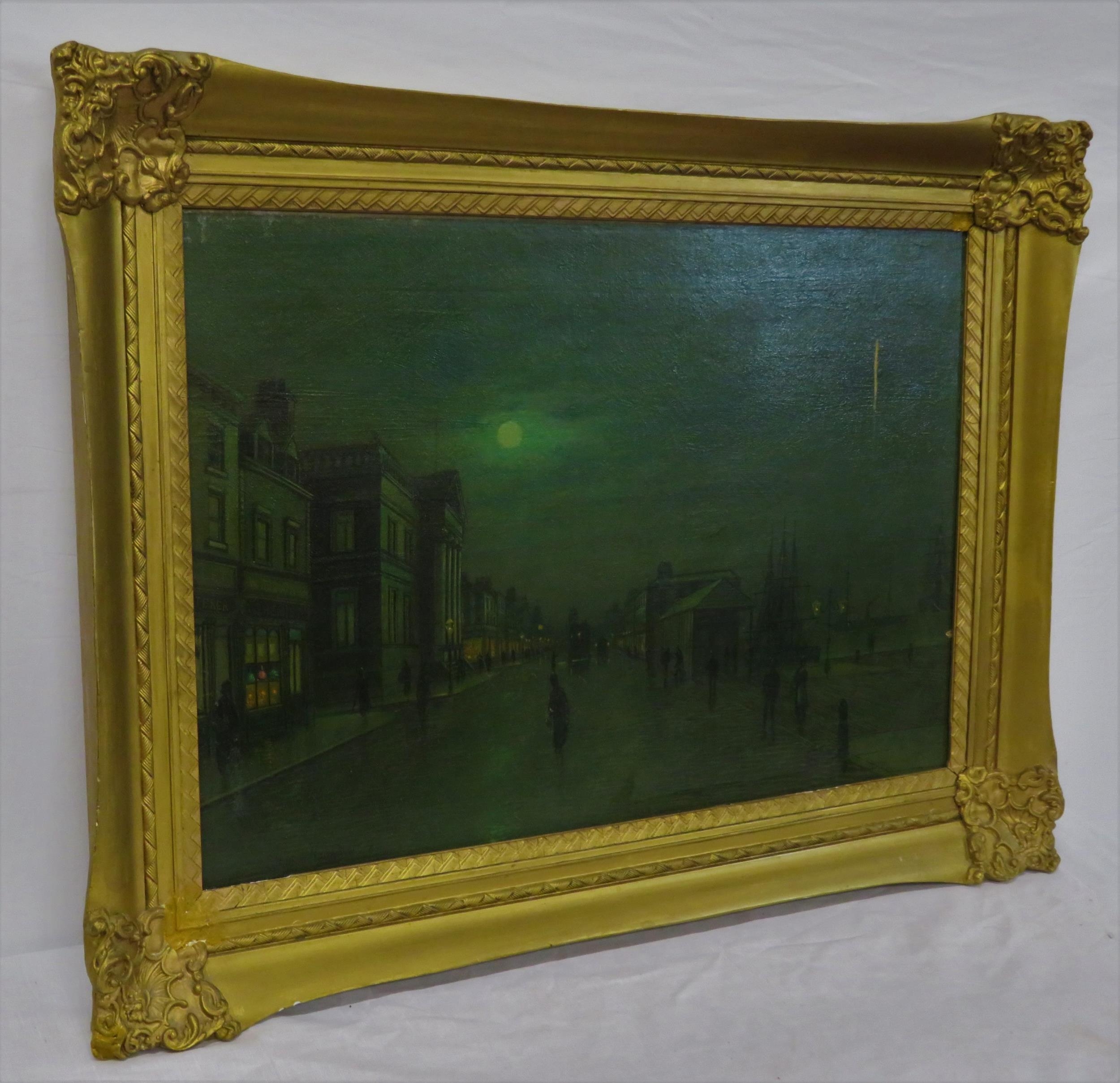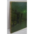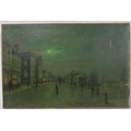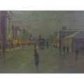 After John Atkinson Grimshaw (1836-1893) 'Moonlight Quayside streetscape with figures' oil on canvas 39x57cm,v signed 'Atkinson Grimshaw 89'