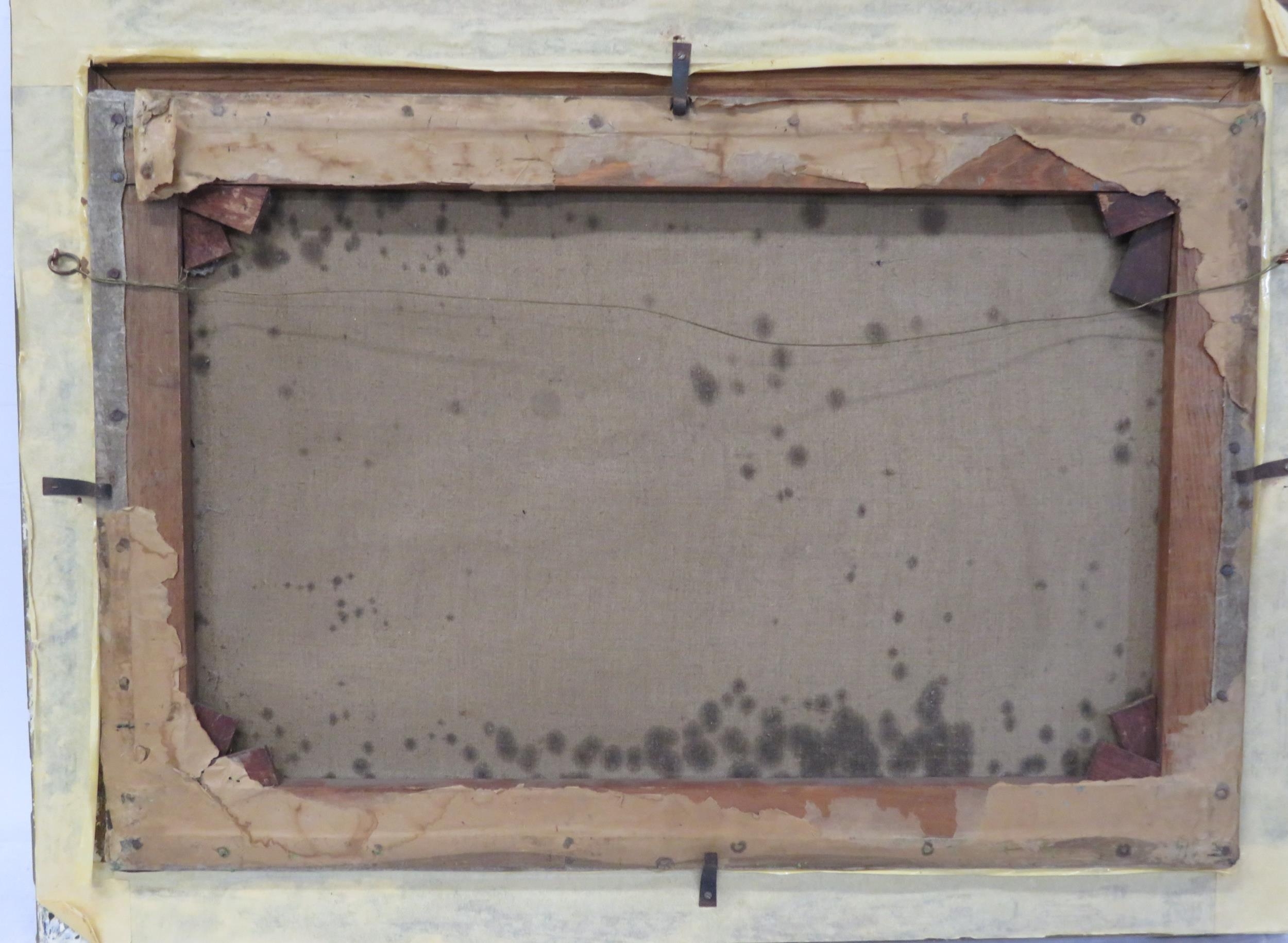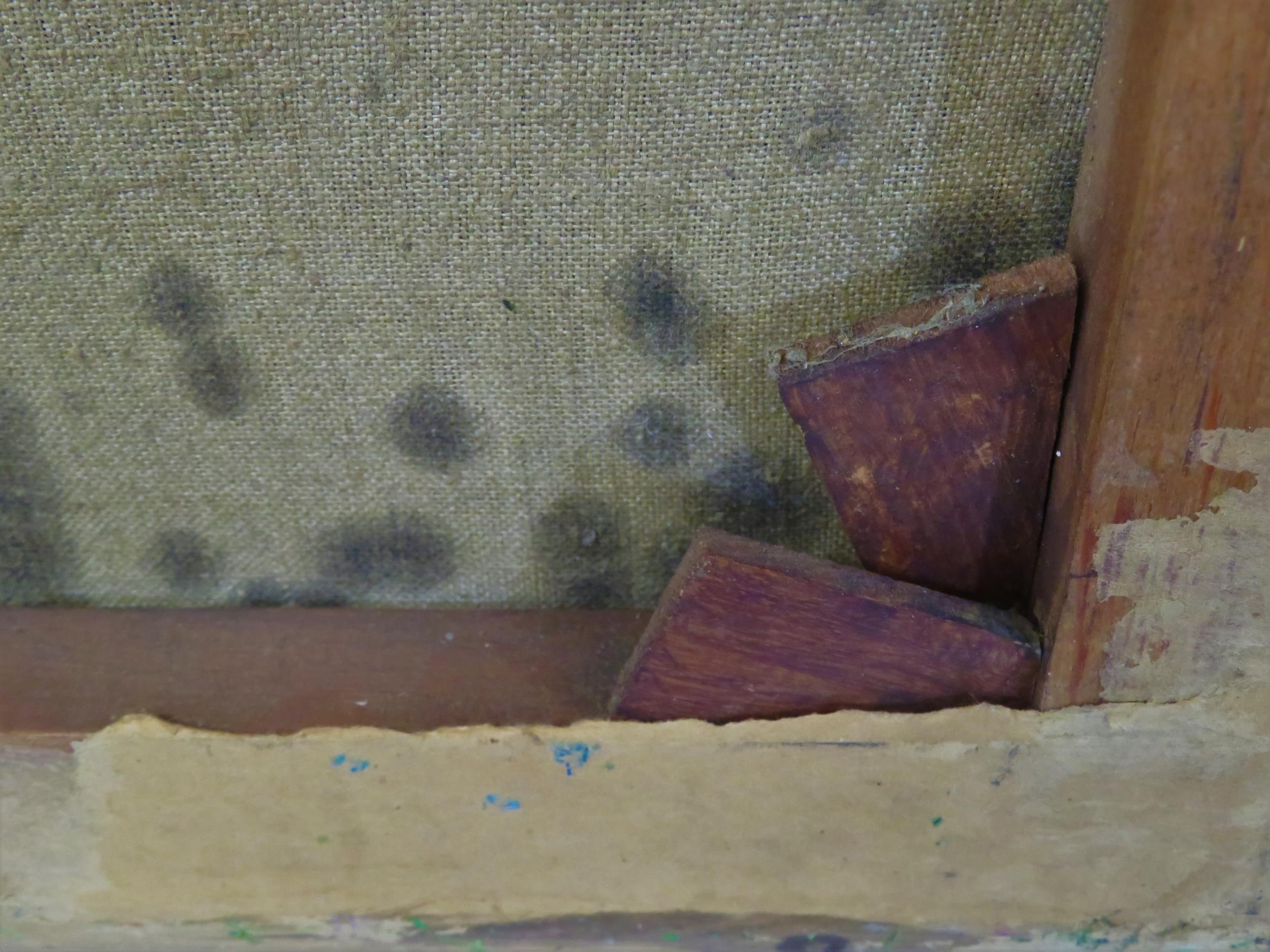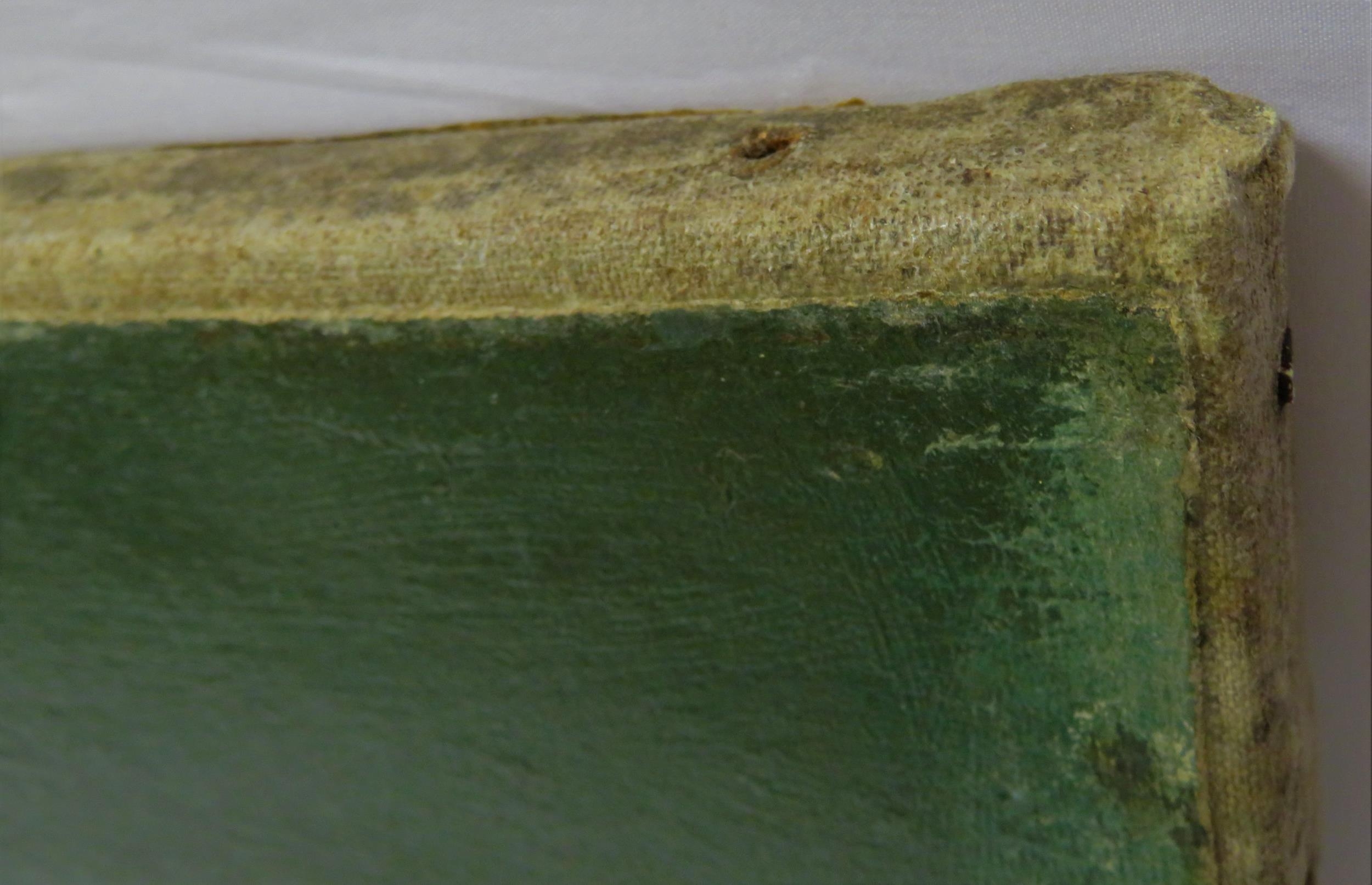 Old damage to original canvas with signs of old damp ingress to right side – relined a long time ago