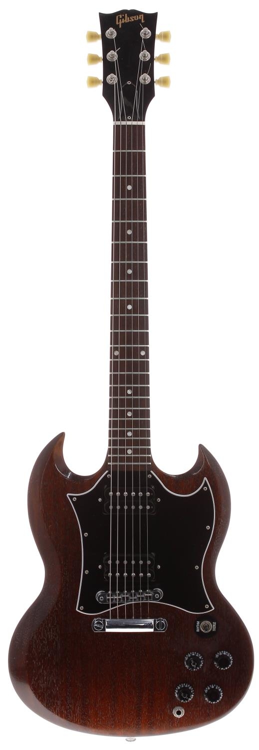 2016 Gibson SG Special Faded T electric guitar, made in USA; Body: faded natural mahogany; Neck: mahogany; Fretboard: rosewood; Frets: good; Electrics: working; Hardware: good; Case: original gig bag and Spider Cases fitted hard case; Weight: 3.01kg; Overall condition: very good