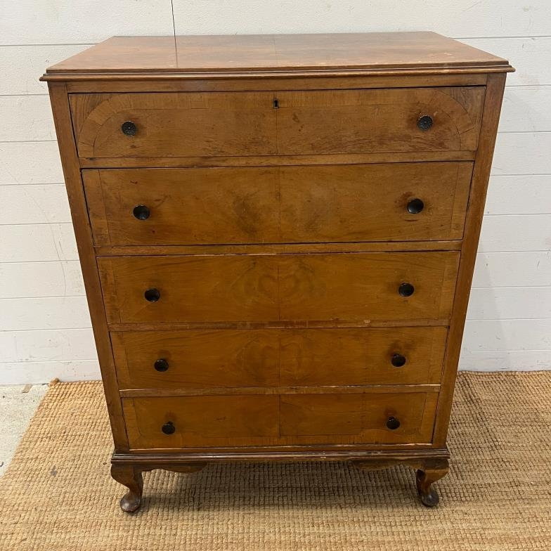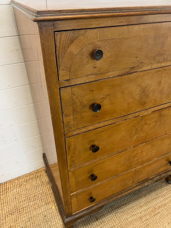 An inlaid chest of drawers with five tapering drawers (H113cm W83cm D52cm)