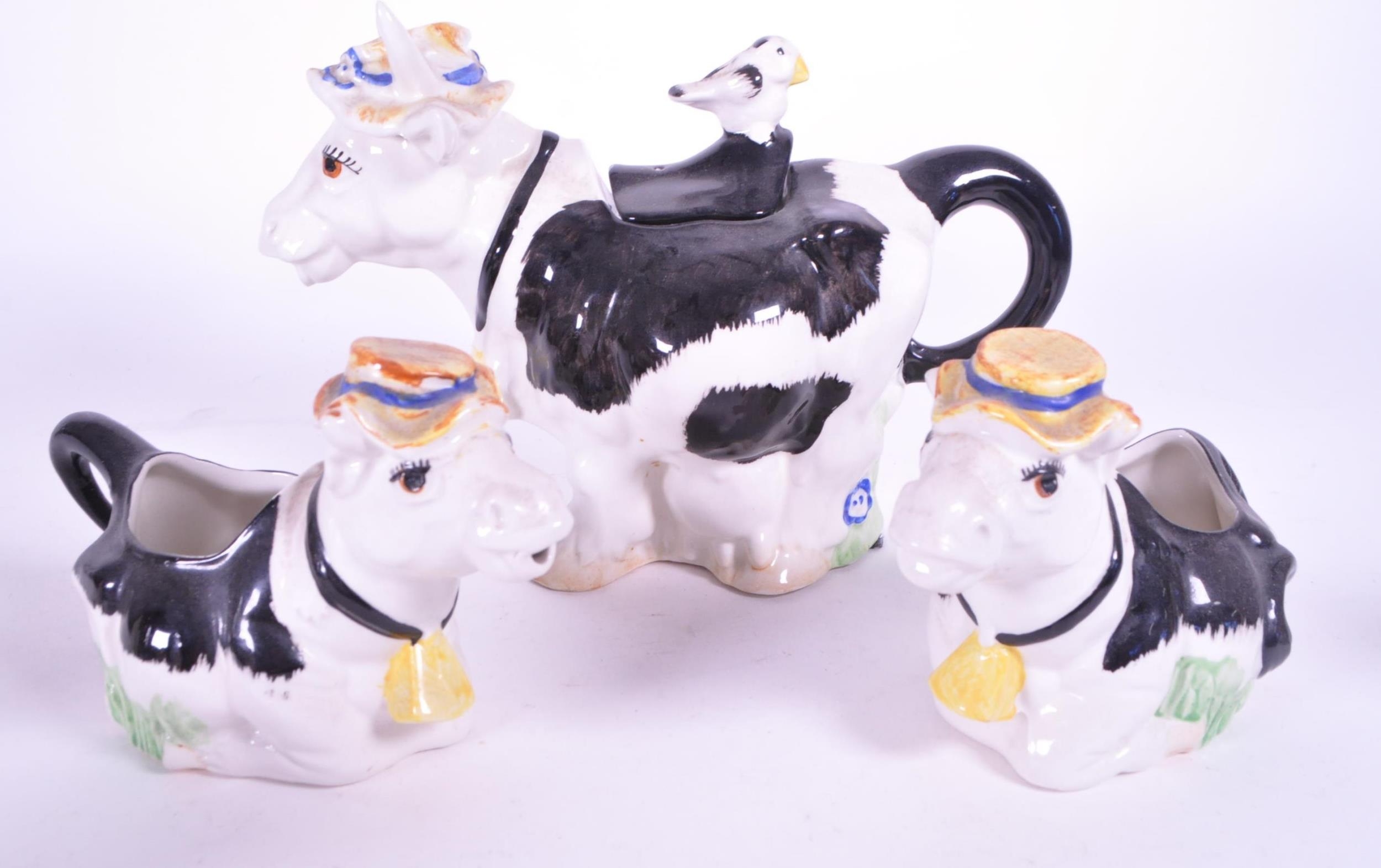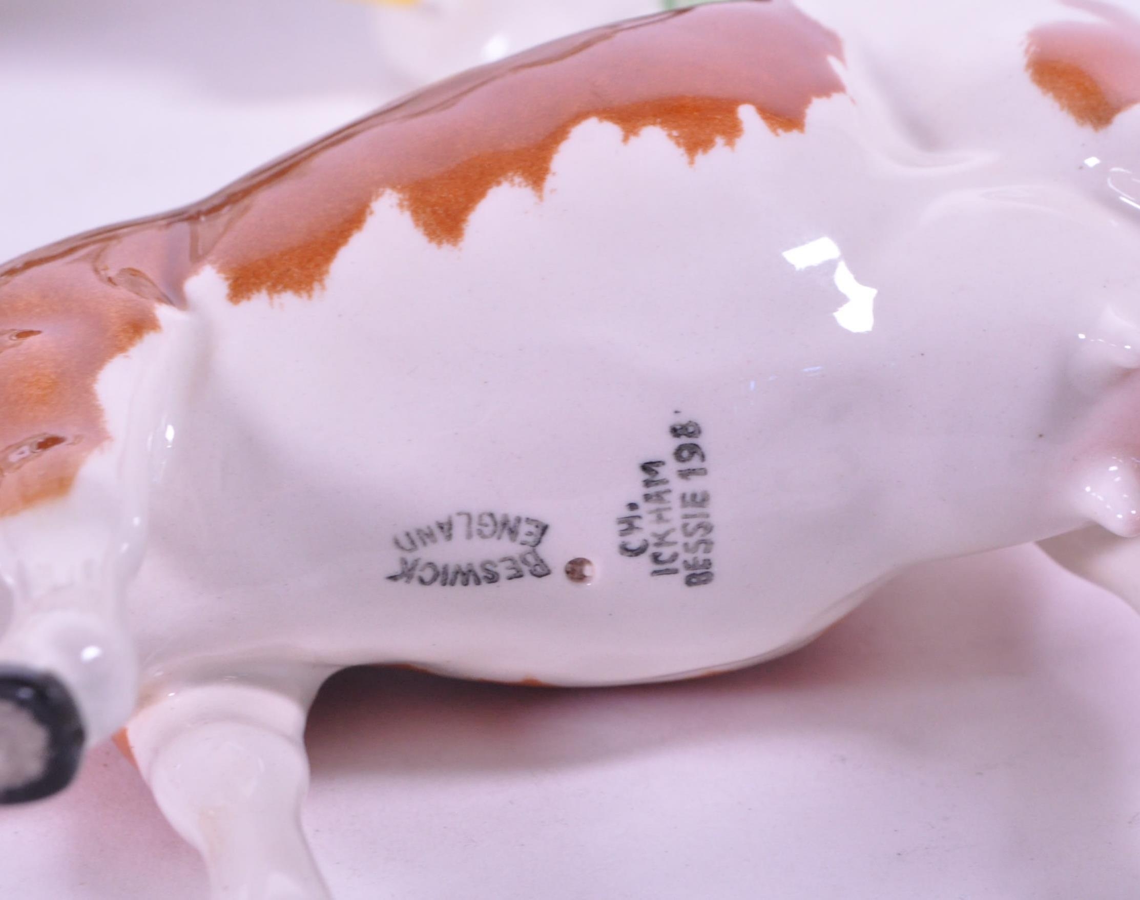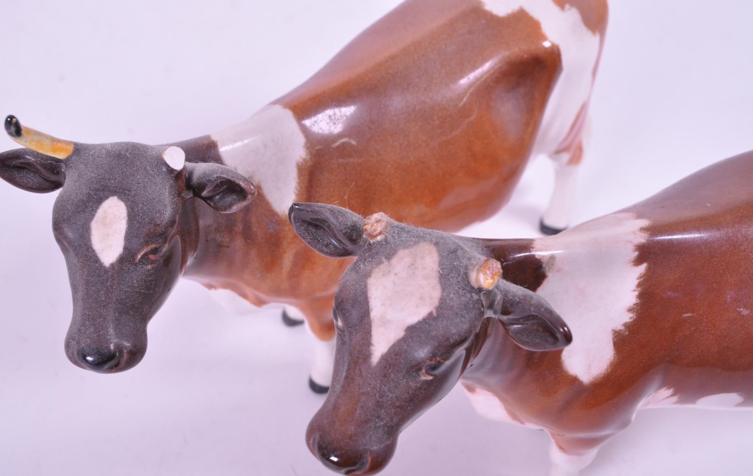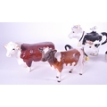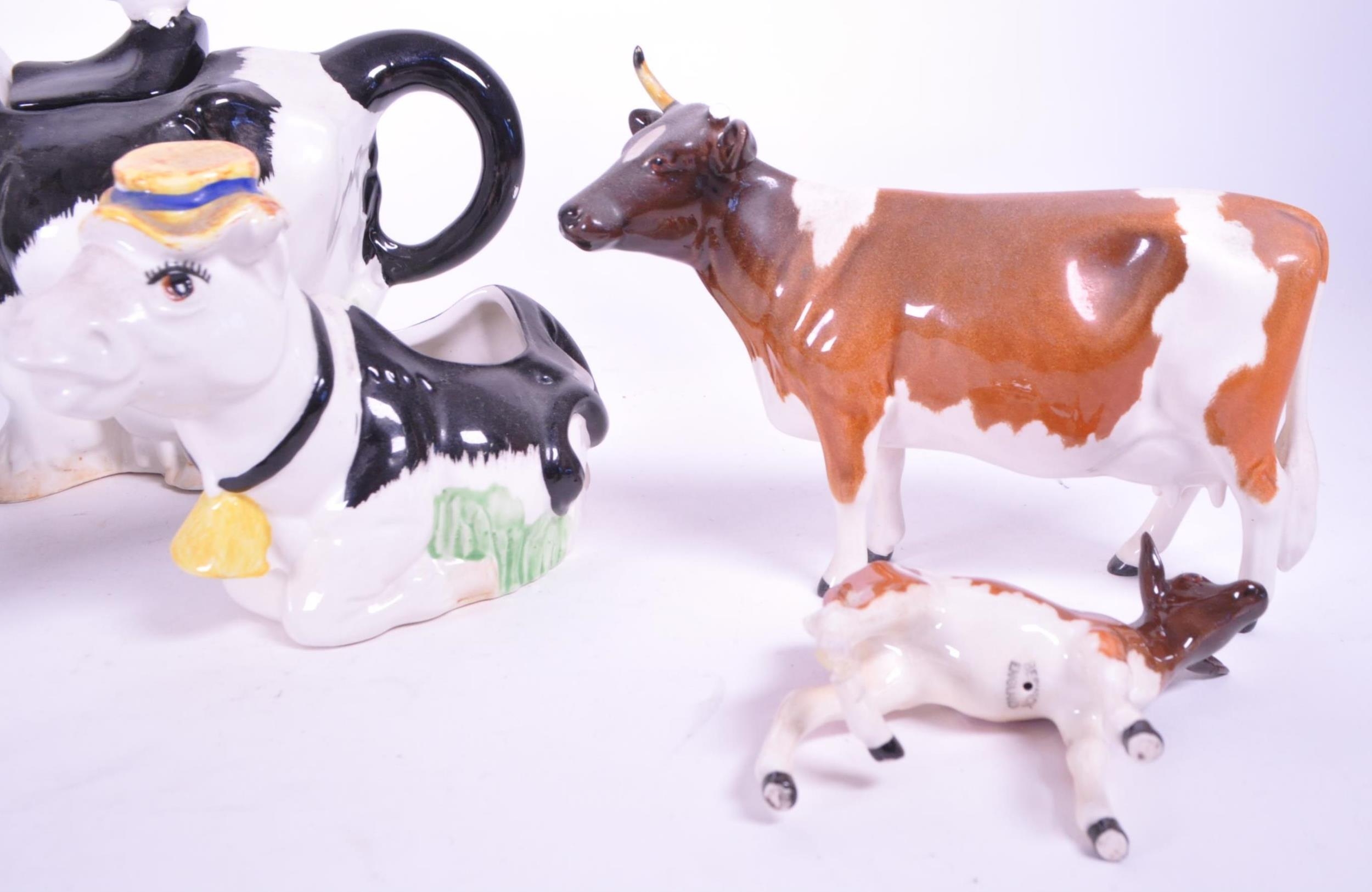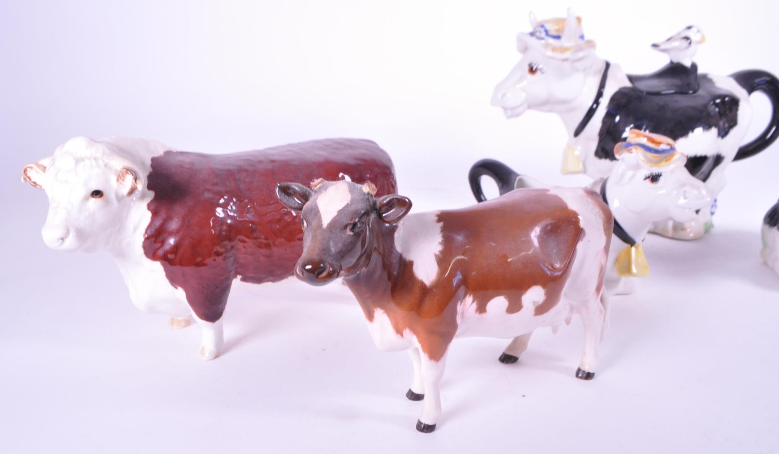 Beswick - A collection of porcelain cow figurines / statues. Three Beswick examples with makers mark to underside Holstein Friesian breed, af. Together with a Price & Kensington cow milk jugs and a Hereford cow.