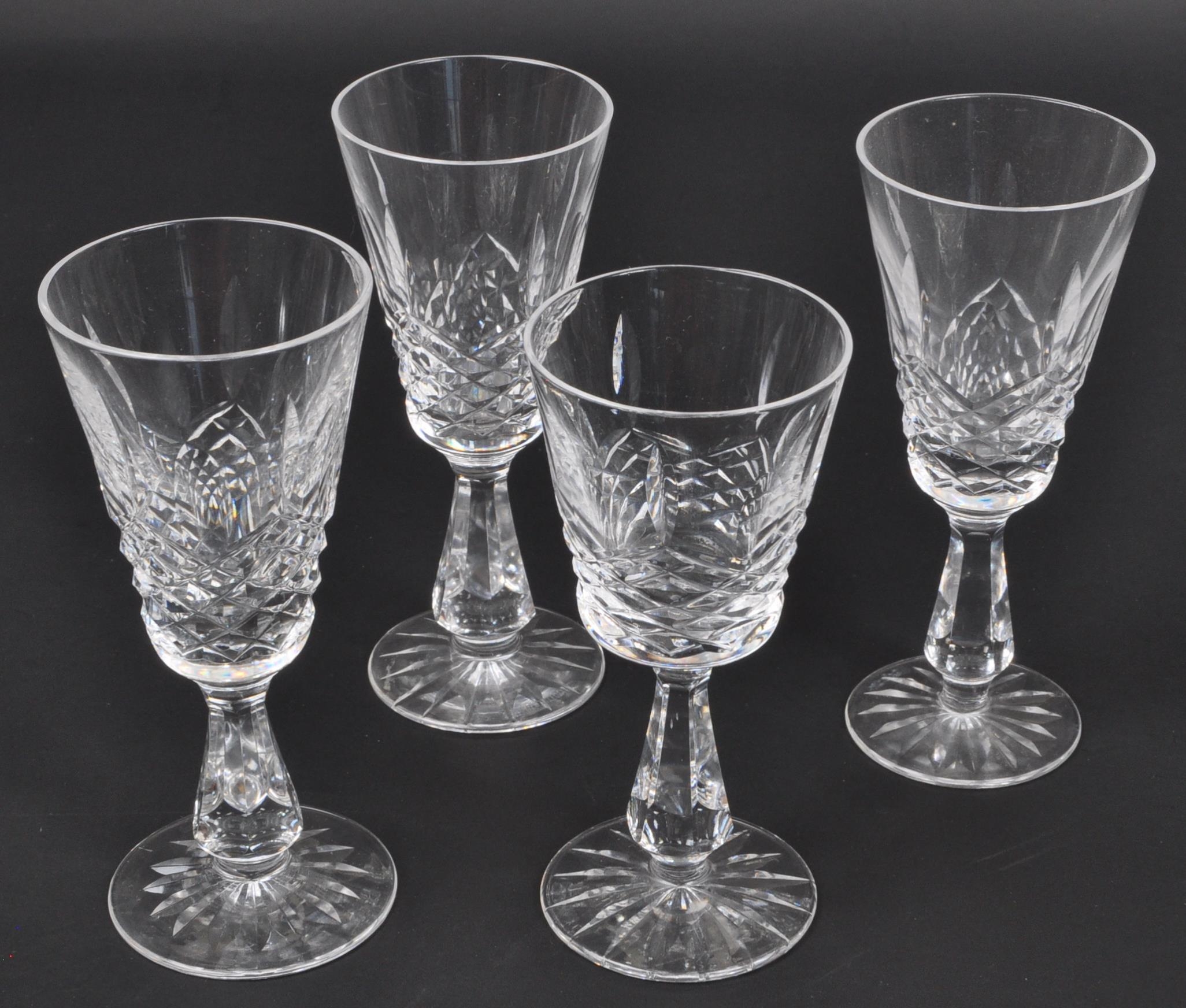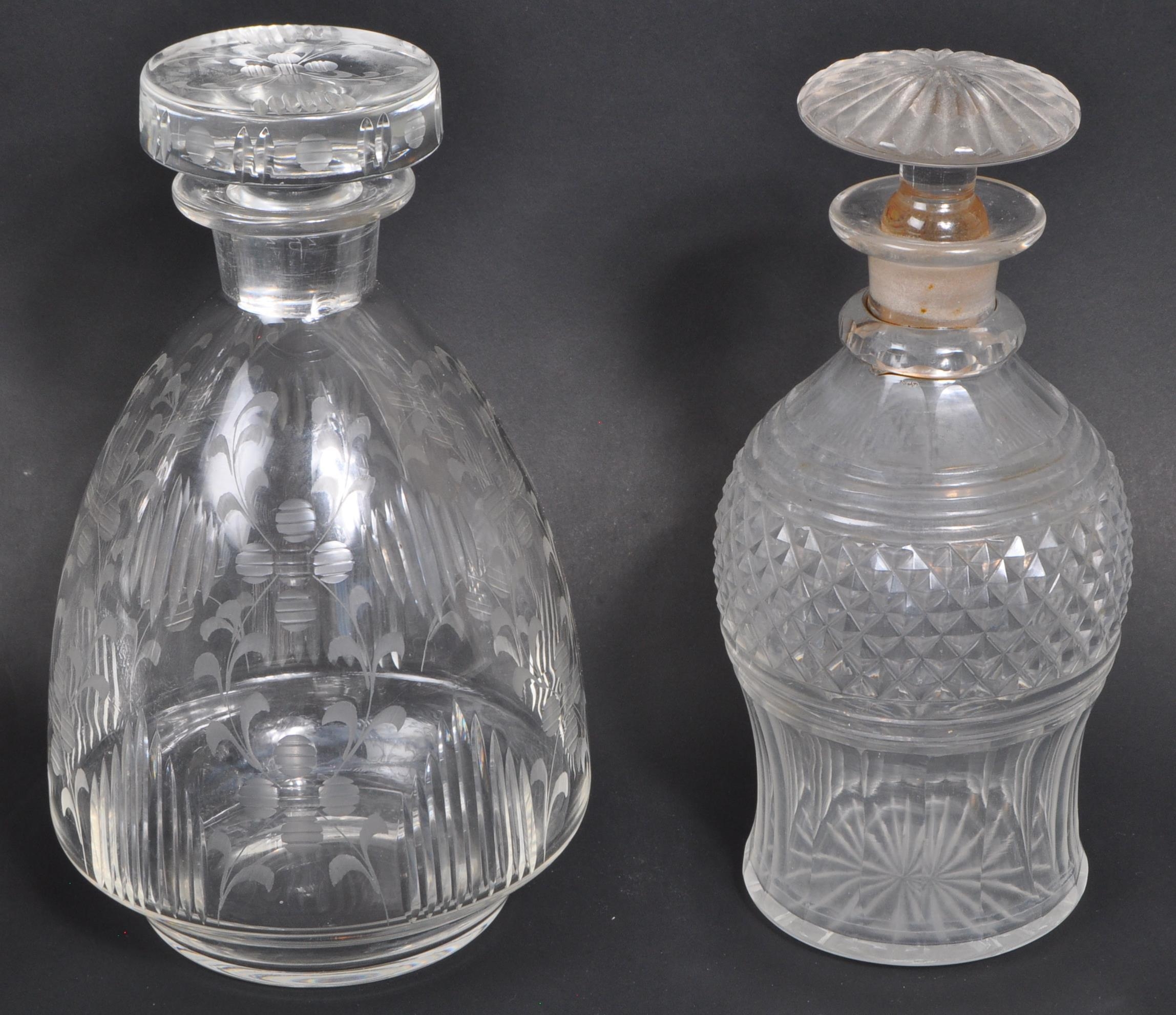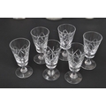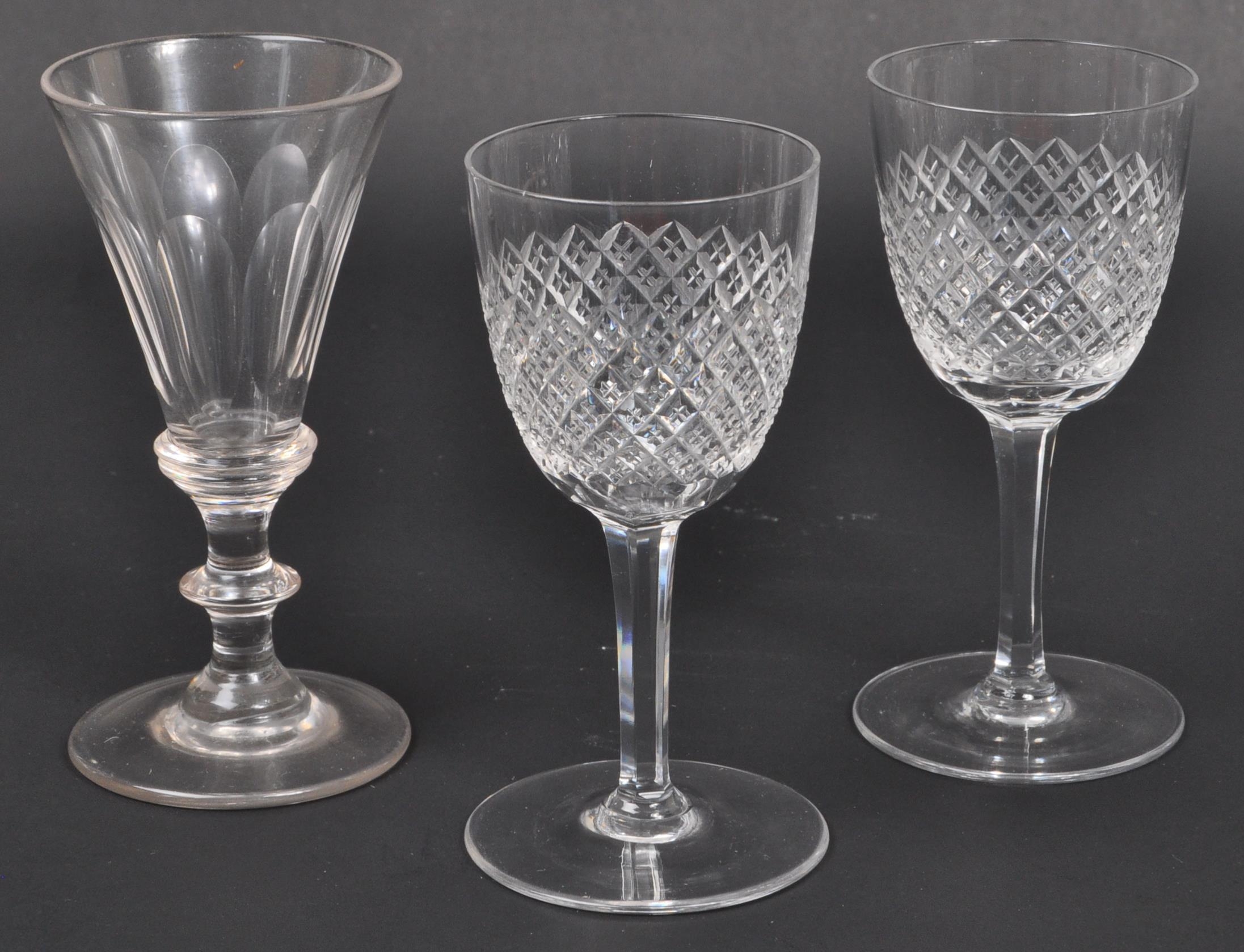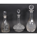 A collection of 19th century and later glass decanters and drinking glasses to include signed Tudor glass, etched glass, crystal glasses in the form of flutes and tumblers. Measures 24cm tall.