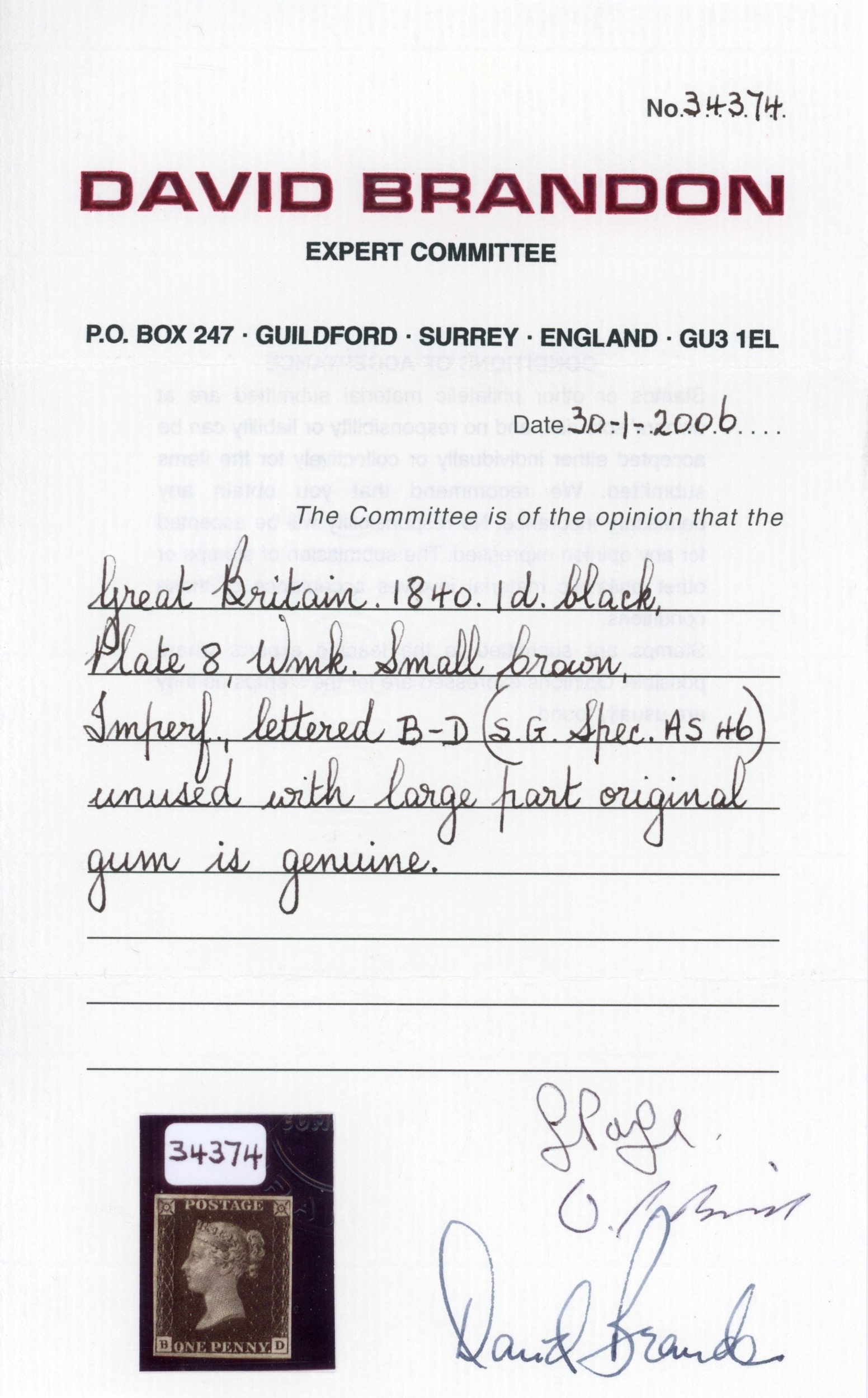 GB SG 2 1d black Plate 8 (BD) unused regummed