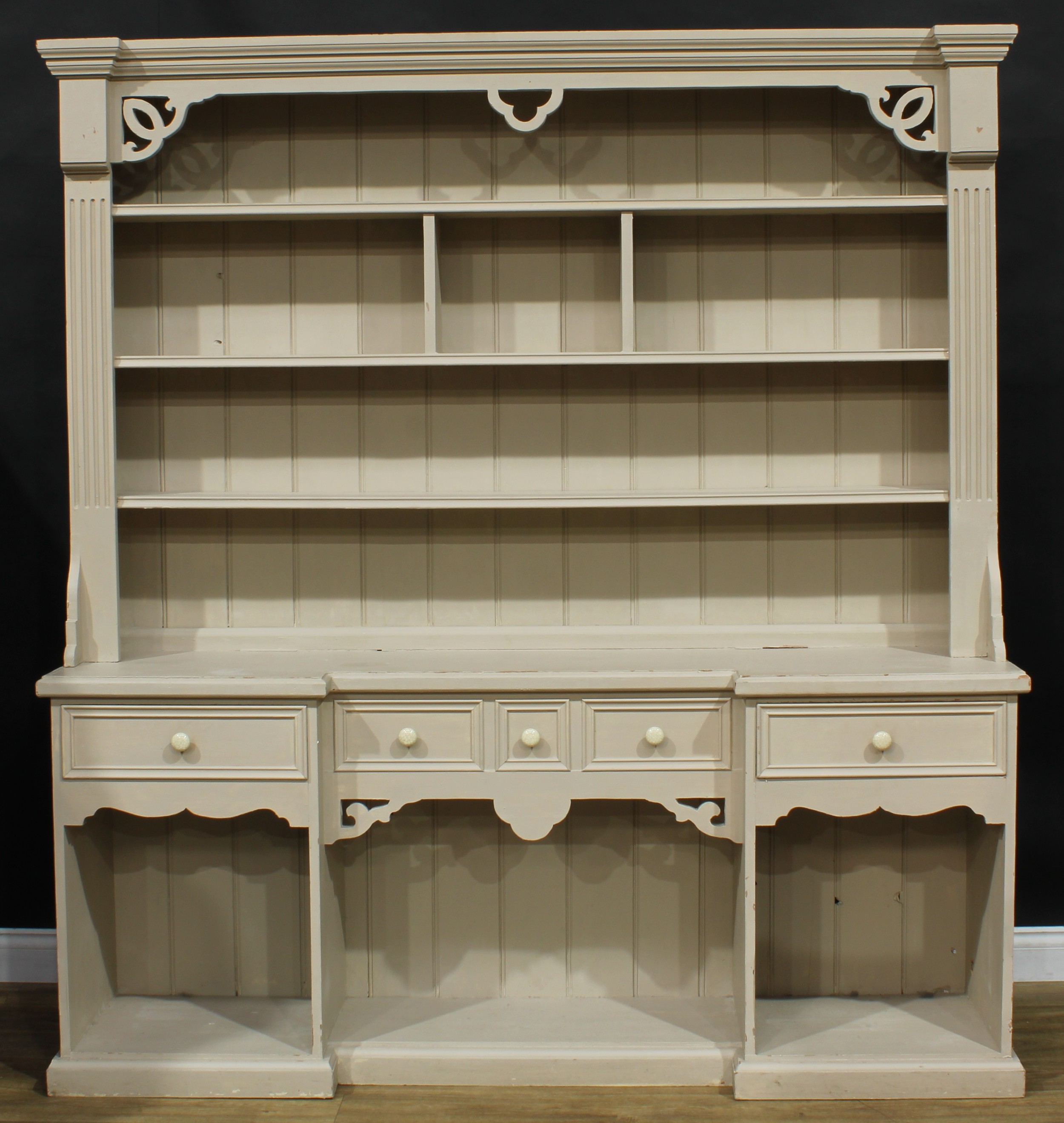 A contemporary painted pine dresser, 200.5cm high, 186cm wide, 42.5cm deep