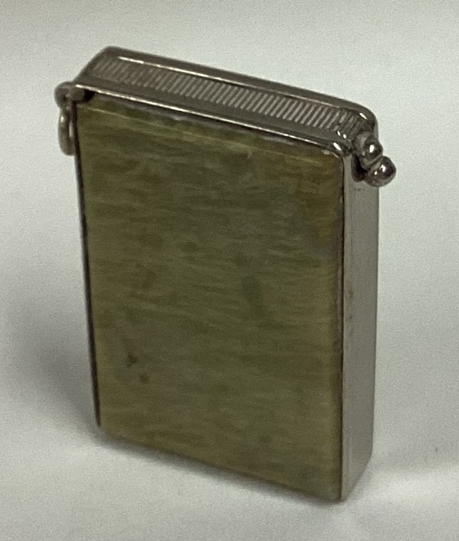 An agate-mounted hinged top vesta case. Approx. 18 grams. Est. £10 - £20.