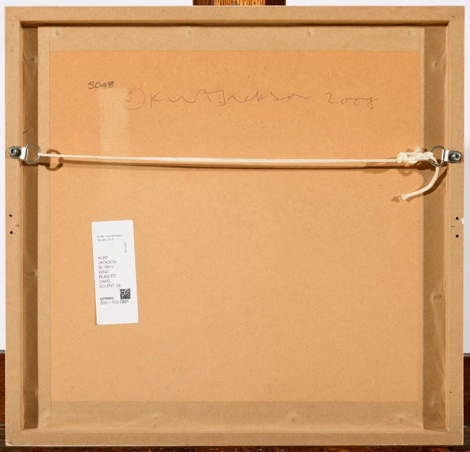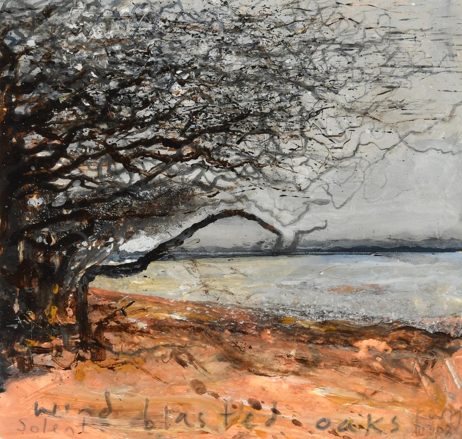 KURT JACKSON (B.1961). WIND BLASTED OAKS, SOLENT. (d) Signed and dated `Kurt J/ iii.3.08`, mixed media on paper