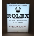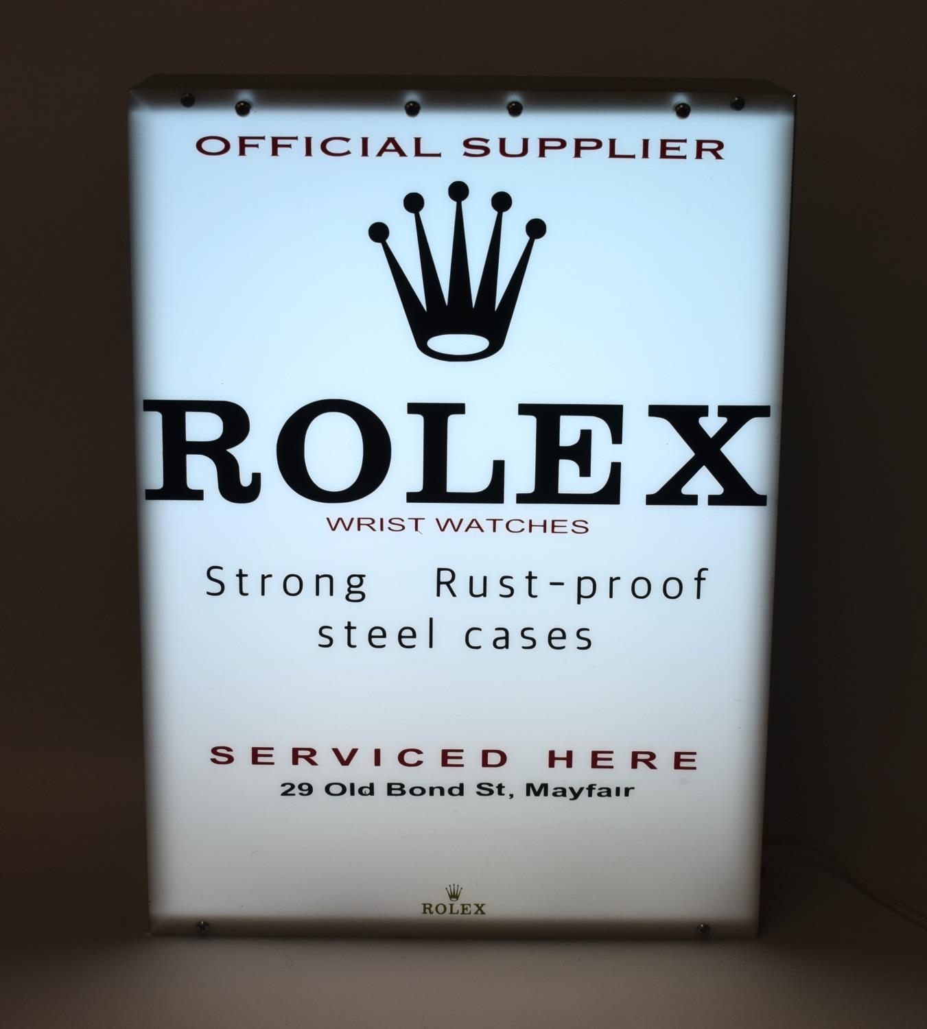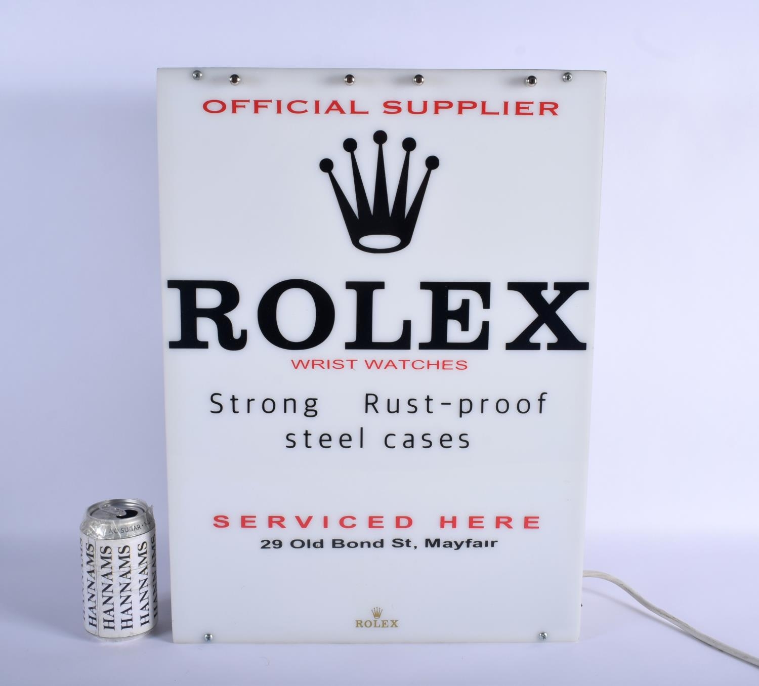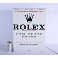 A RARE VINTAGE ROLEX OYSTER WRIST WATCH SERVICING BOX LIGHT SHOP DISPLAY within a metal casing. 54 cm x 34 cm.