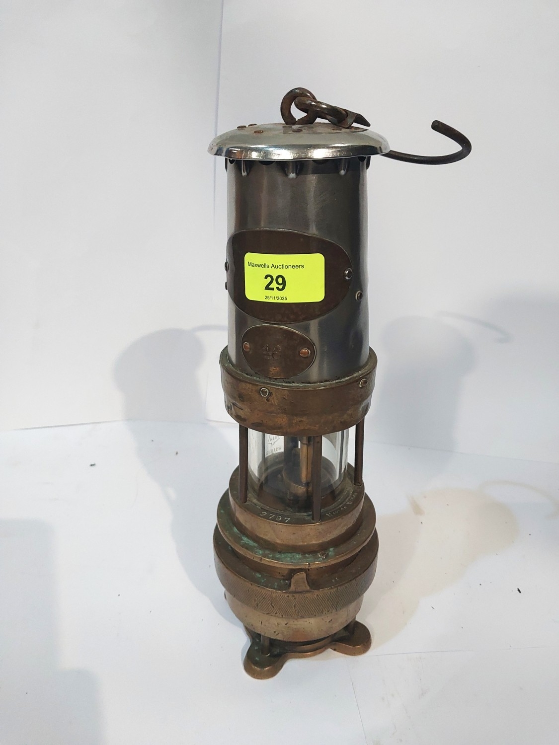 A J.H.Naylor Ltd Spiralarm minors safety lamp 2797 unusual with red glass base