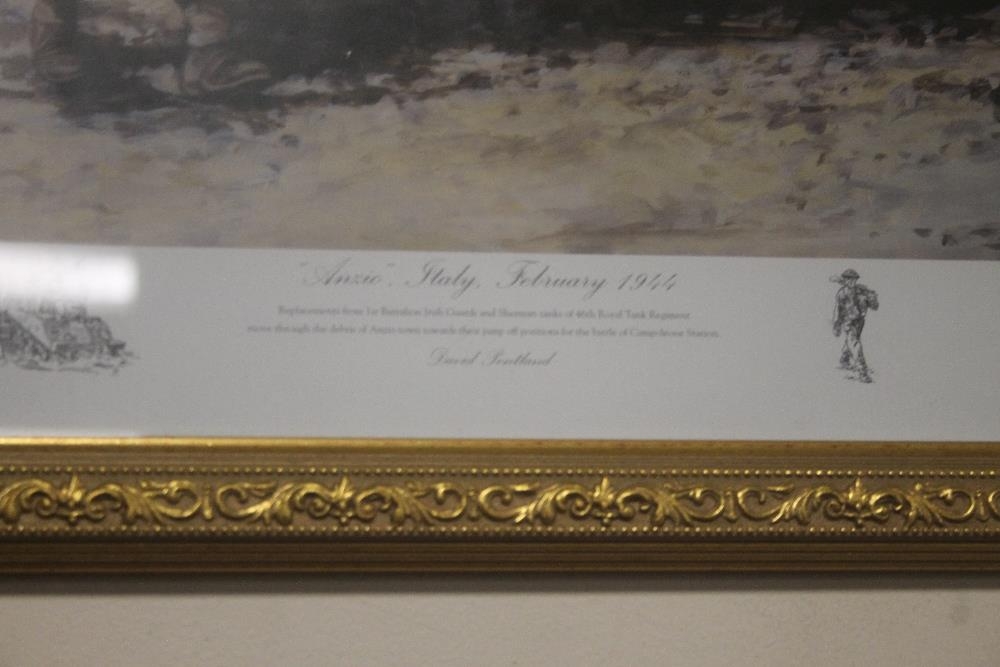 A FRAMED AND GLAZED DE PENTLAND PRINT TITLED "ANZIO ITALY FEBRUARY 1944" SIGNED TO THE LOWER RIGHT