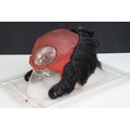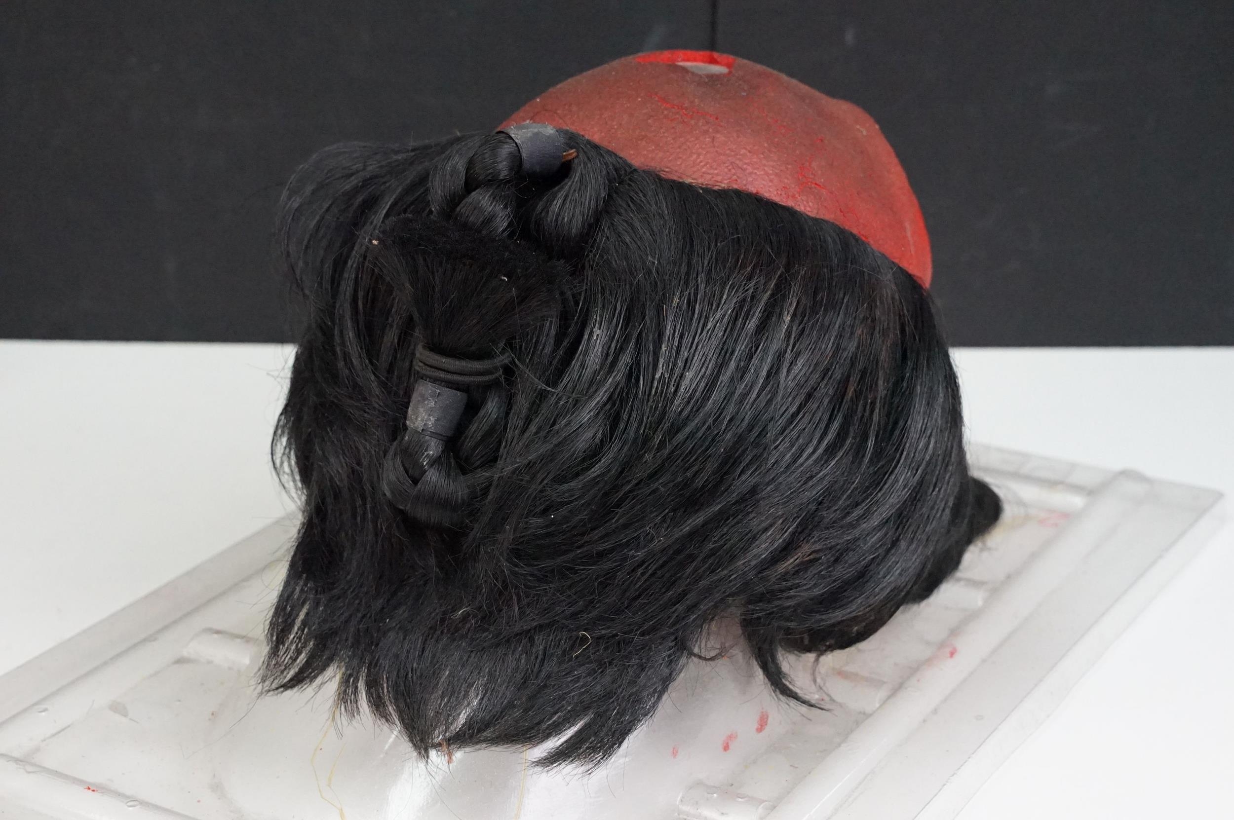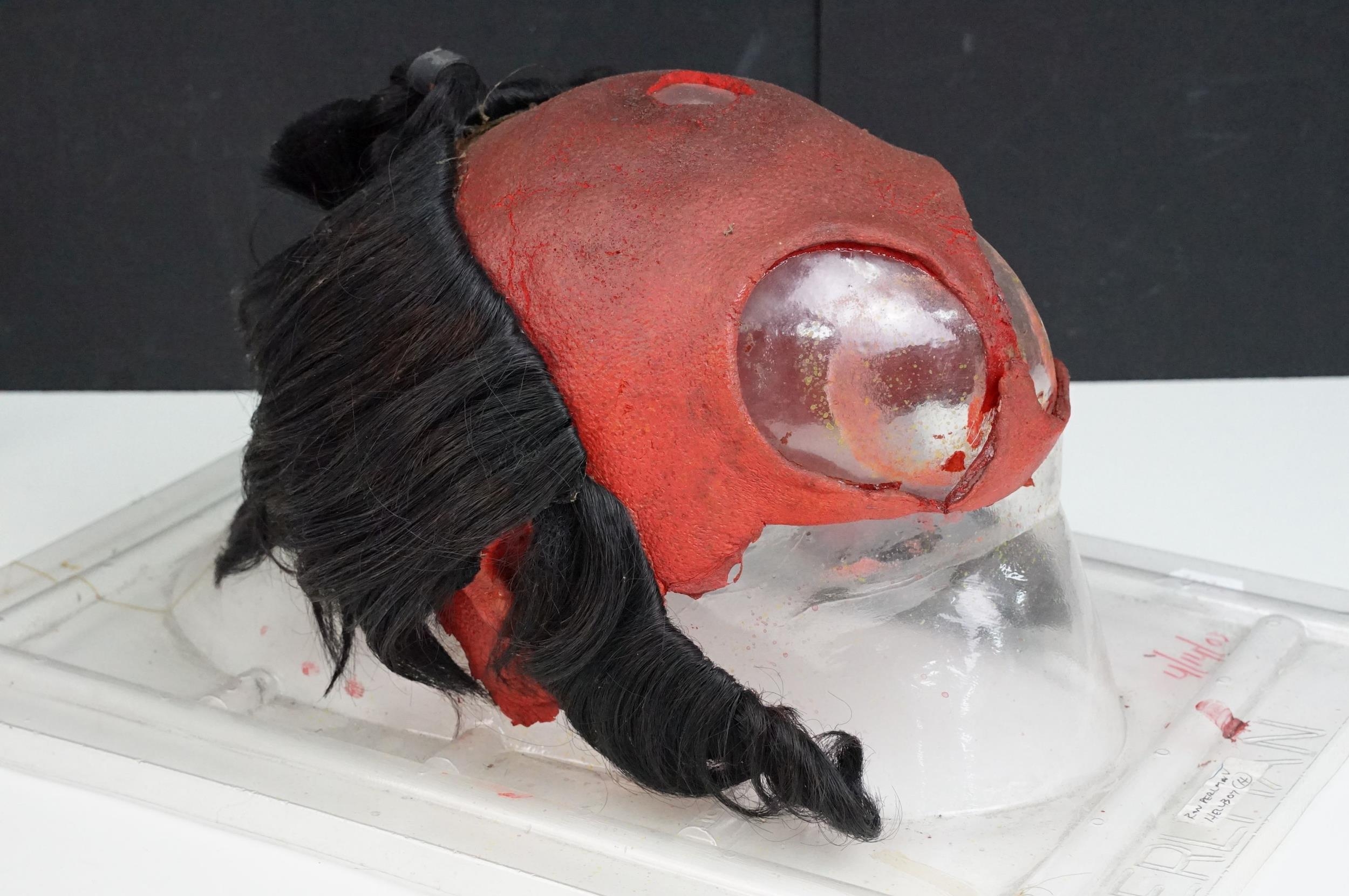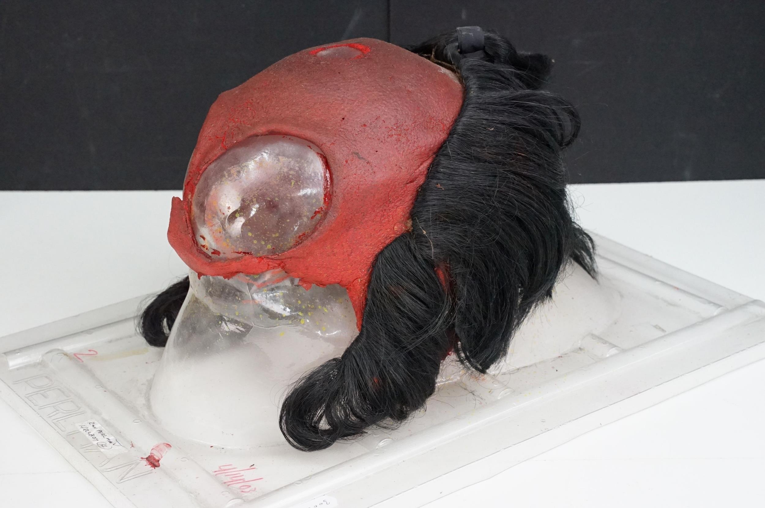 Film props - Collection of original Ron Perlman Hellboy movie props to include headpiece residing on a vacuform plastic mould with “Perlman” cast into the plastic, 2 x sets of lips residing on vacuform mould with 'Perlman Chin 2' cast onto plastic, and 2 x horn stubs, plastic moulds feature small stickers/pen note from production,