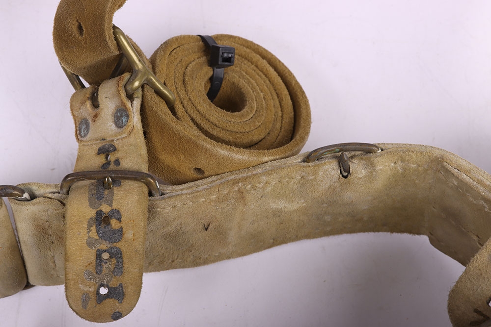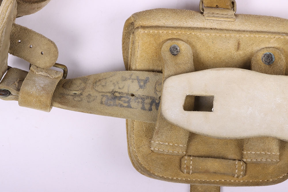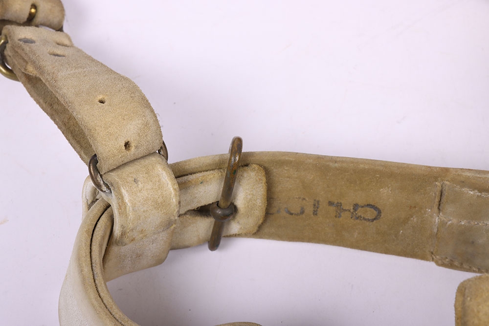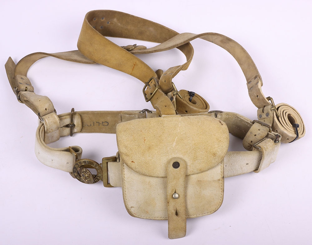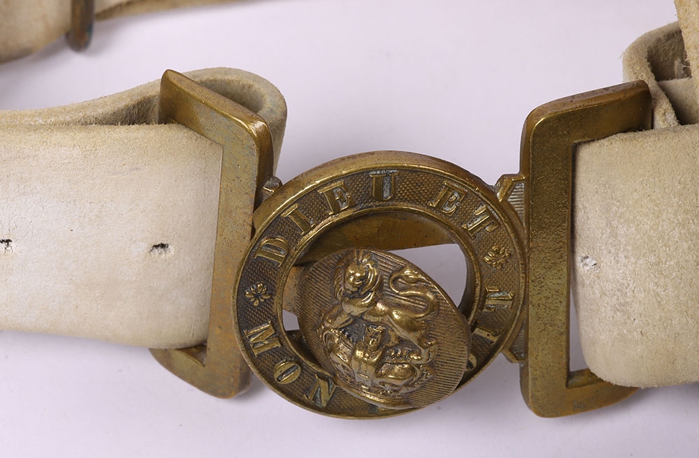 Victorian 3rd Volunteer Battalion Royal Highlanders Pattern 1888 Slade Wallace Equipment, consisting of white buff leather waist belt with universal pattern other ranks brass waist belt clasp. Pair of cross straps and Volunteer type pouch stamped under the flap ‘3. V.B.R.H’. Generally good condition.