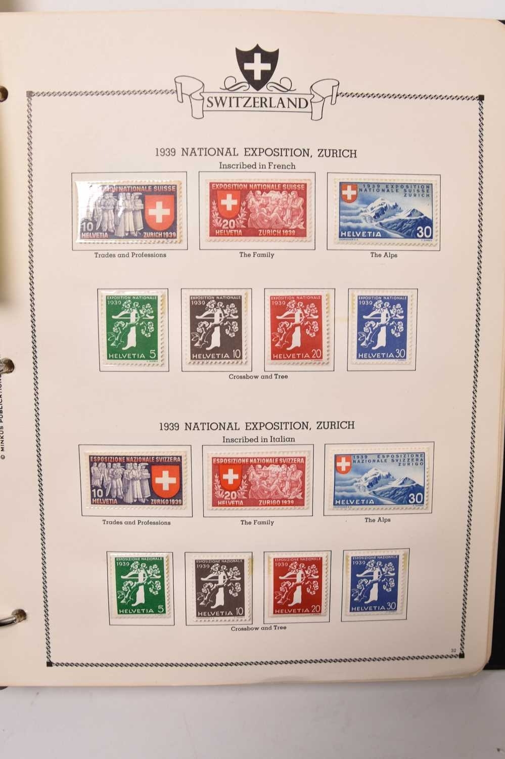 A large collection of world stamps, housed in 10 large stockbooks plus a smaller stockbook primarily of Commonwealth 1949 UPU mint sets, then a printed Minkus album of Switzerland (1903-64 mainly mint, plus International Labour Office, Education Office, World Health Organisation and European Office issues to 1976) plus an almost empty Ideal Postage Stamp Album (8th Edition) which is very clean. Also a 2 volume collection of William and Kate Royal Wedding and 1 album of 25th Anniversary of QE2 Coronation.