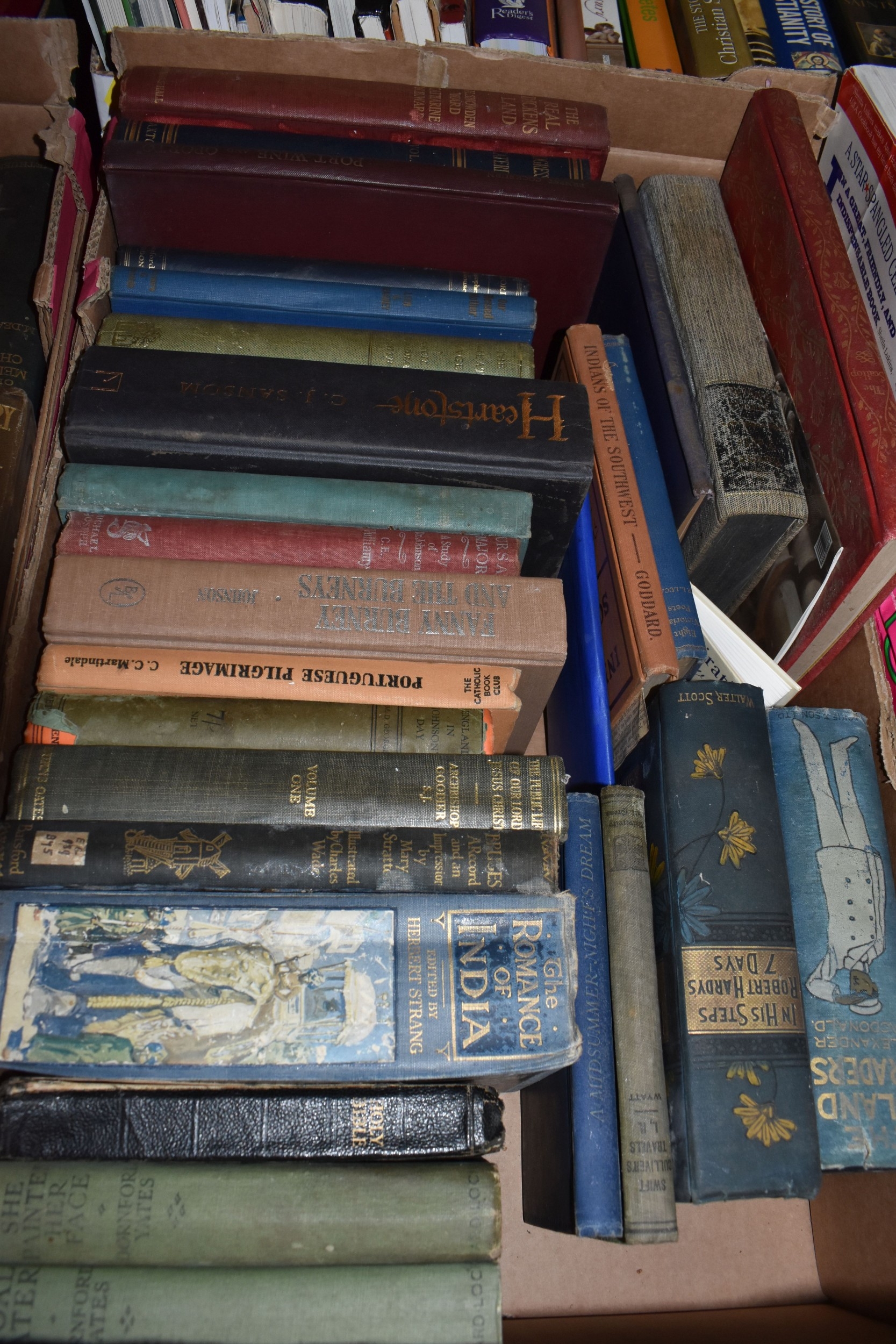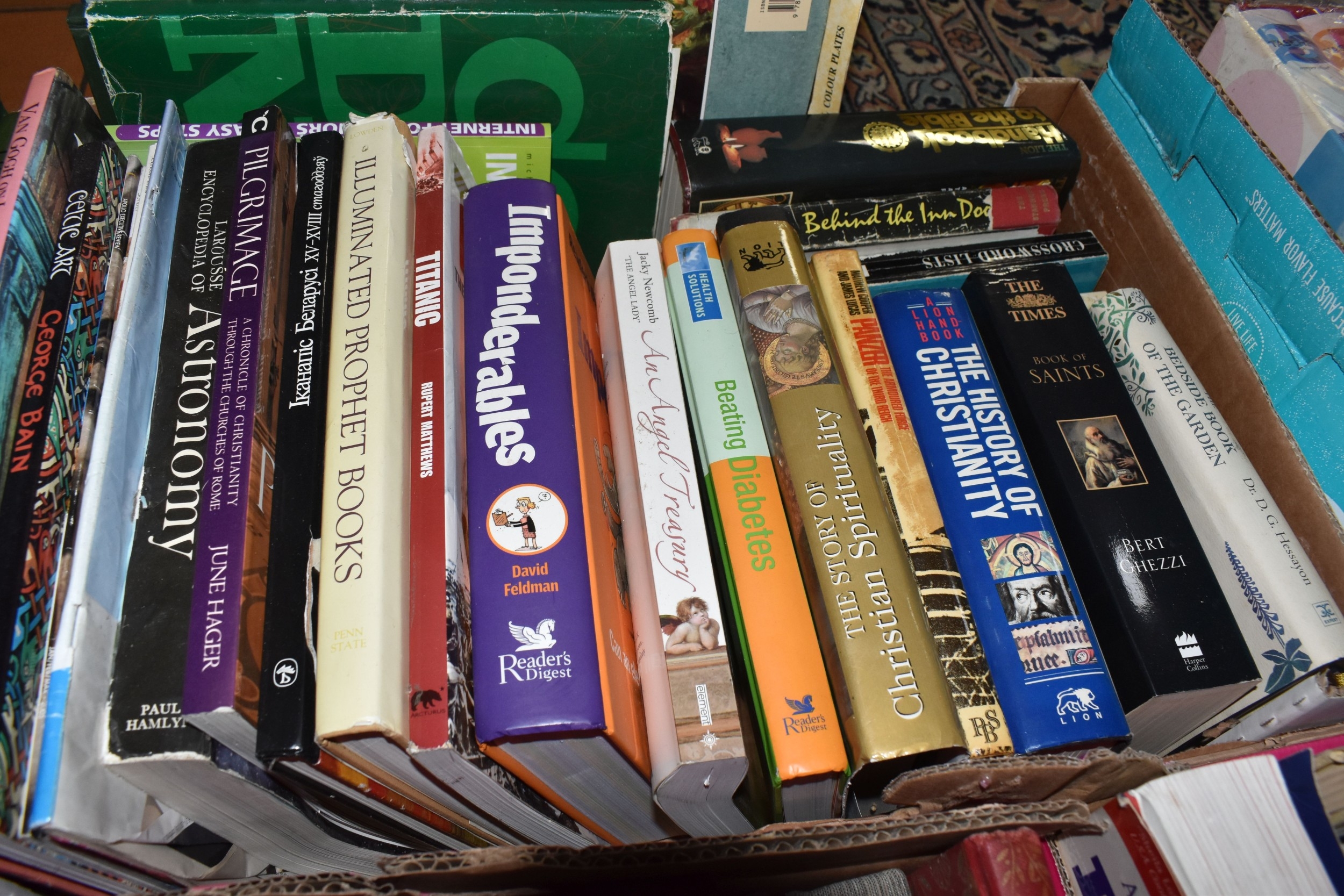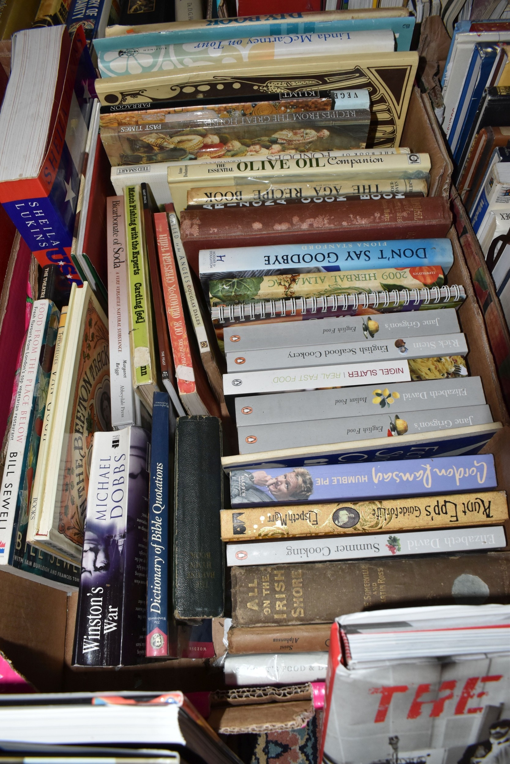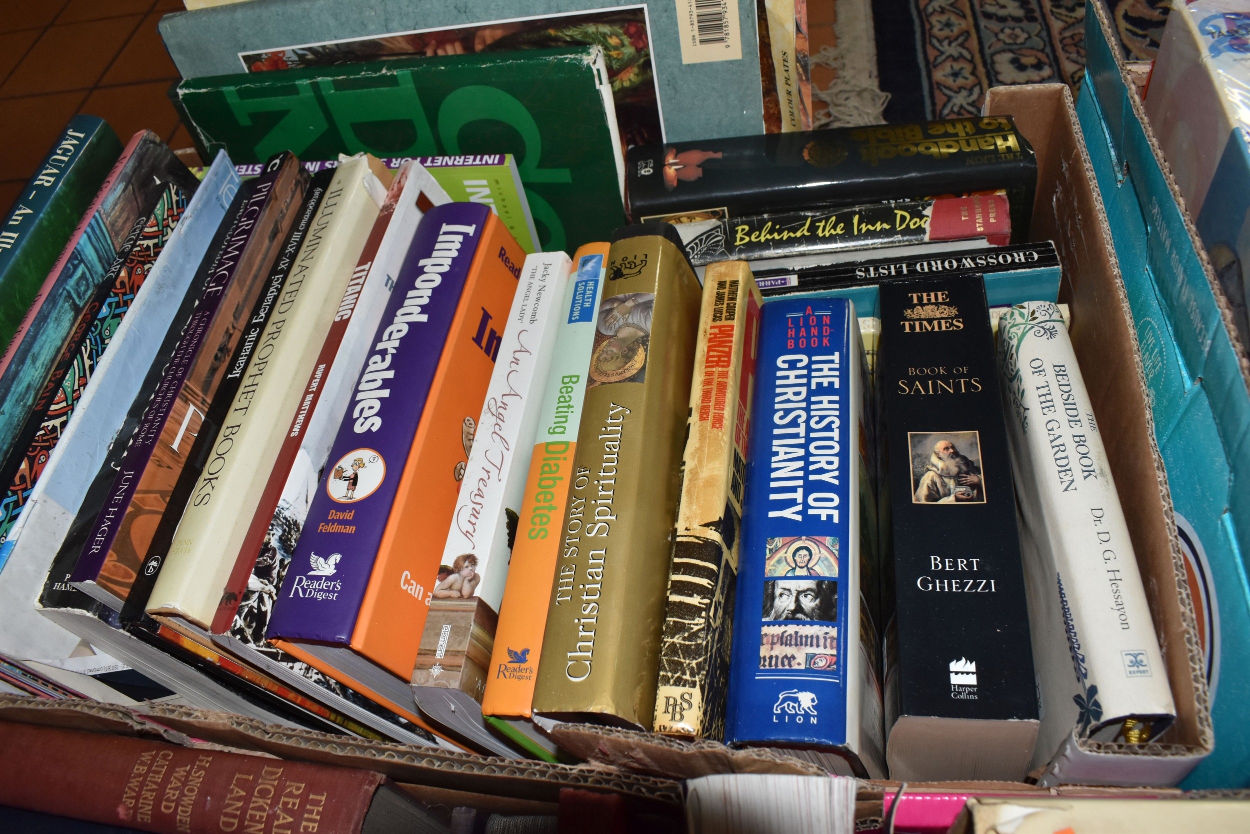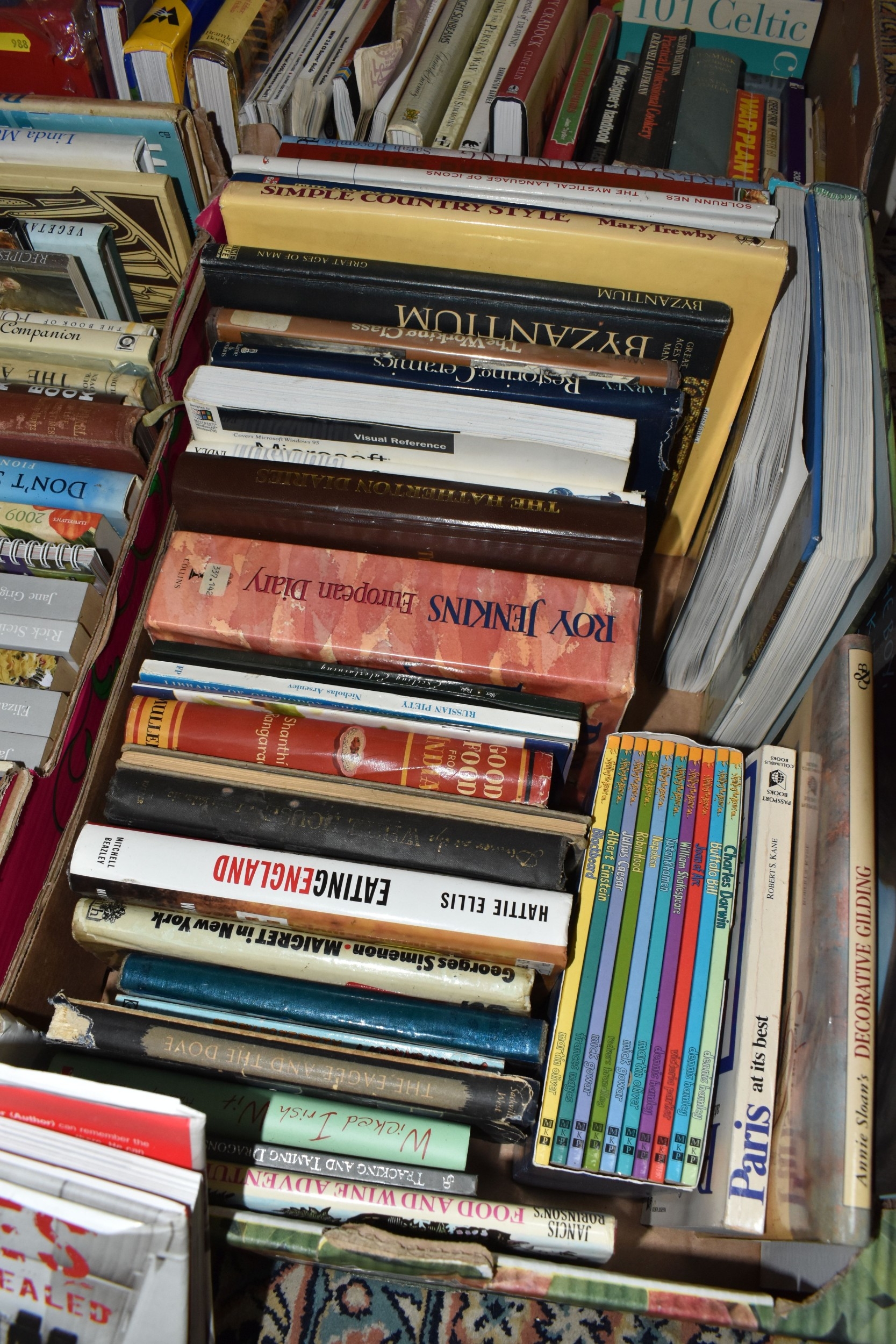 SEVEN BOXES AND LOOSE BOOKS, approximately one hundred and thirty titles in hardback and paperback formats, subjects to include history, Christianity, cookery, antiquarian and vintage titles, art, motoring, travel, etc, 'The Beatles Revealed' by Hugh Fielder, Taschen Masterpieces of Western Art in two volumes, etc (7 boxes + loose) (sd)
