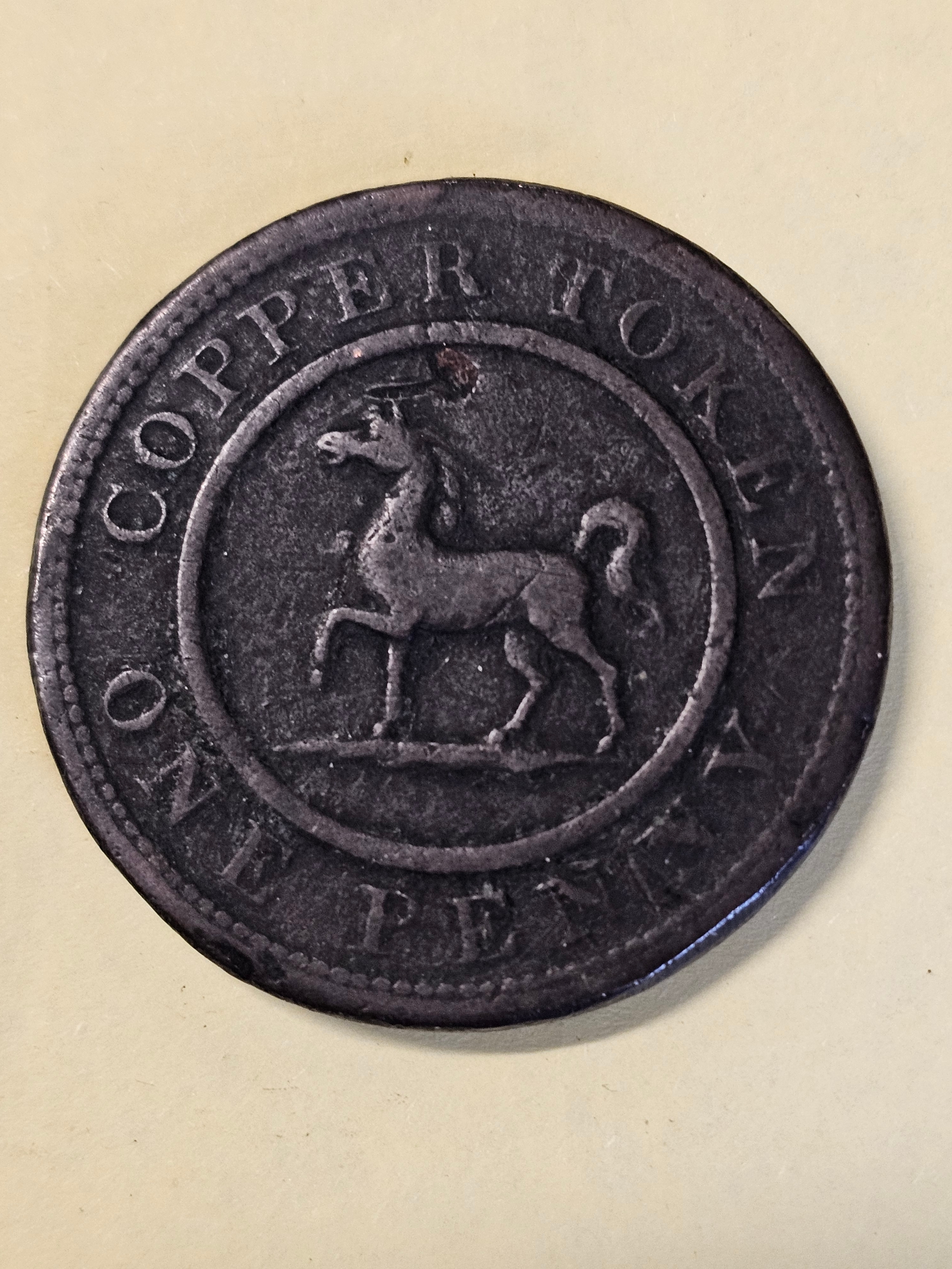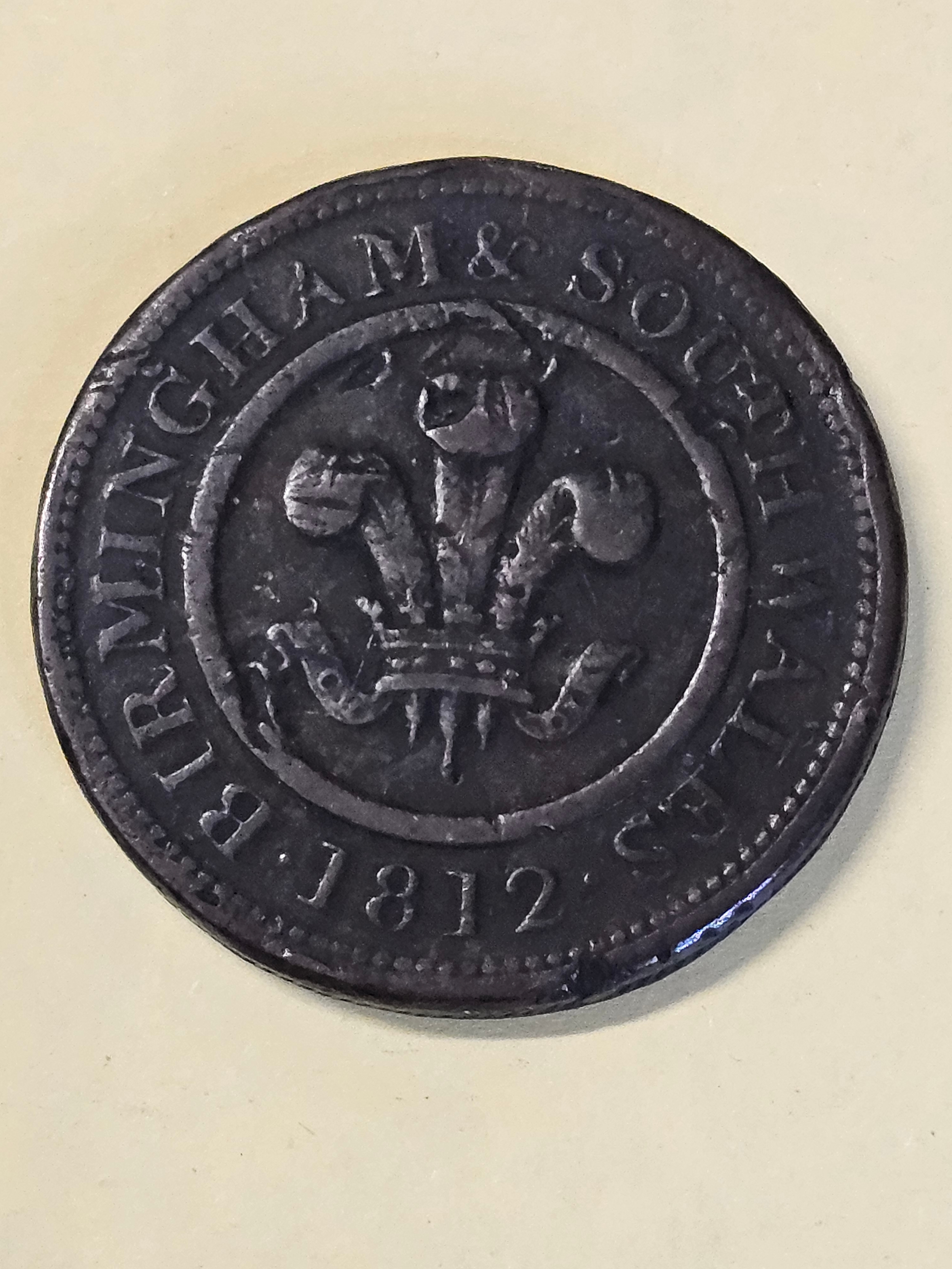 Worcestershire Birmingham Cooper Token: 1812 Birmingham & South Wales Penny, Prince of Wales' triple-plumed crest & horse