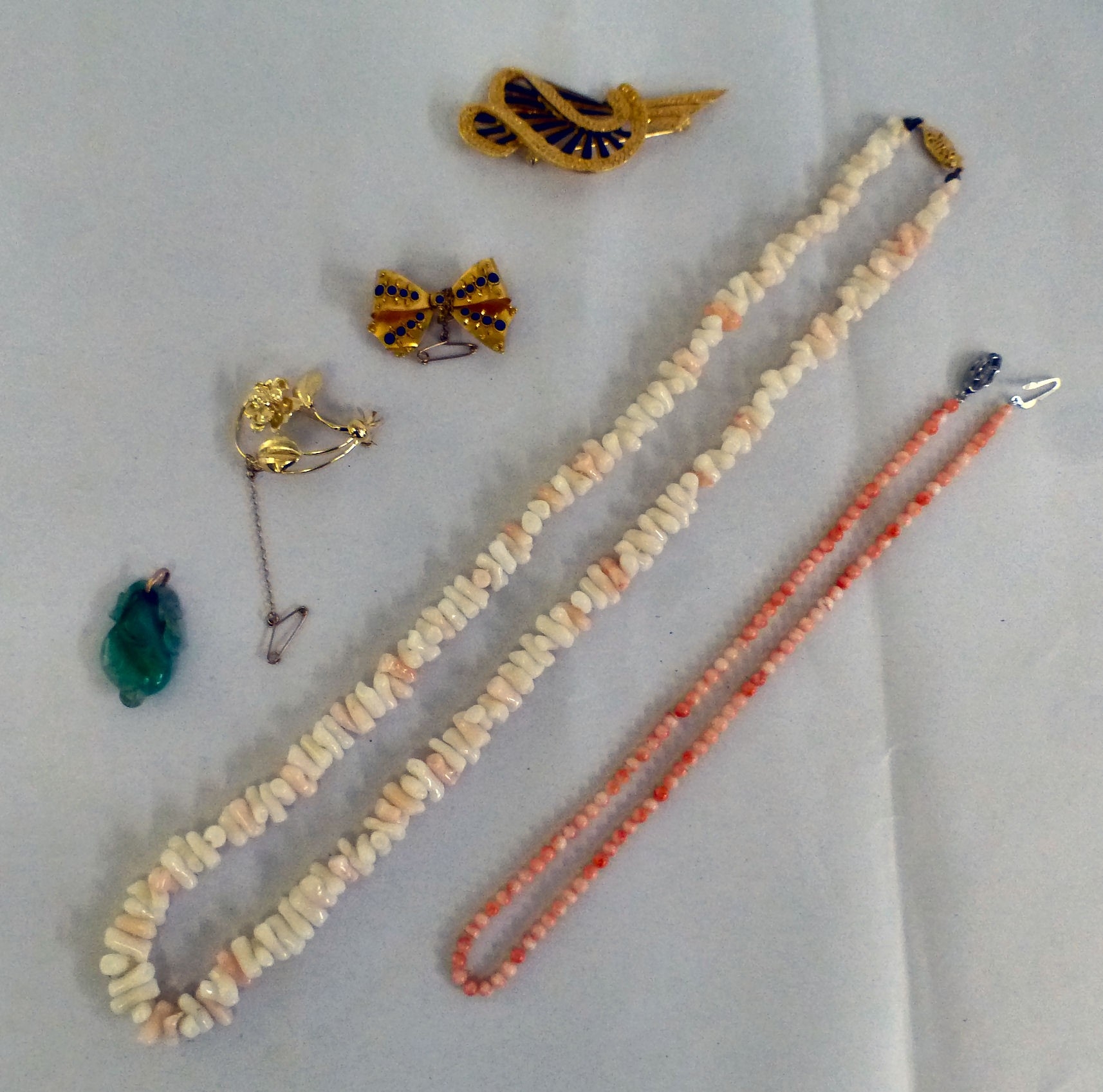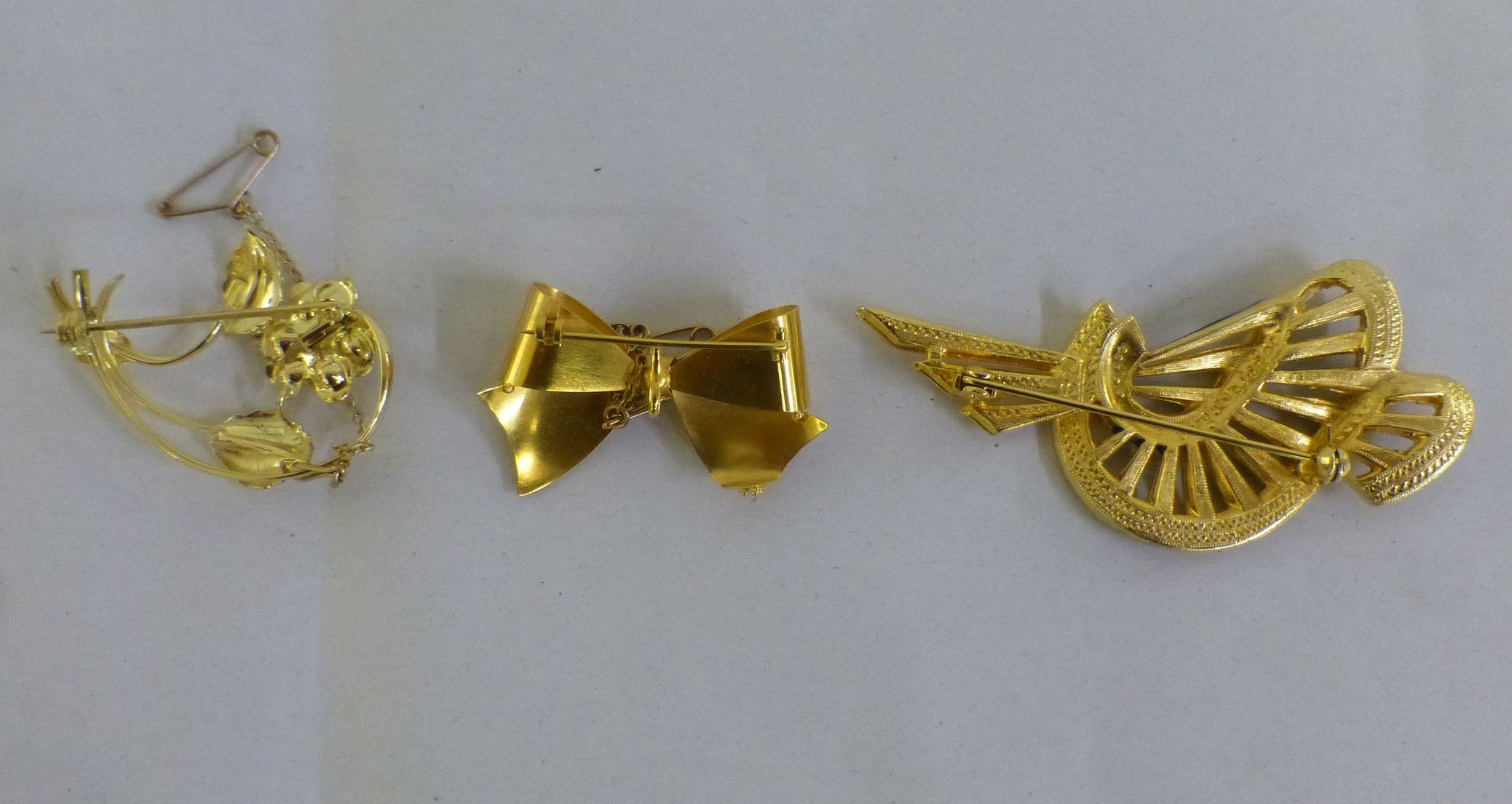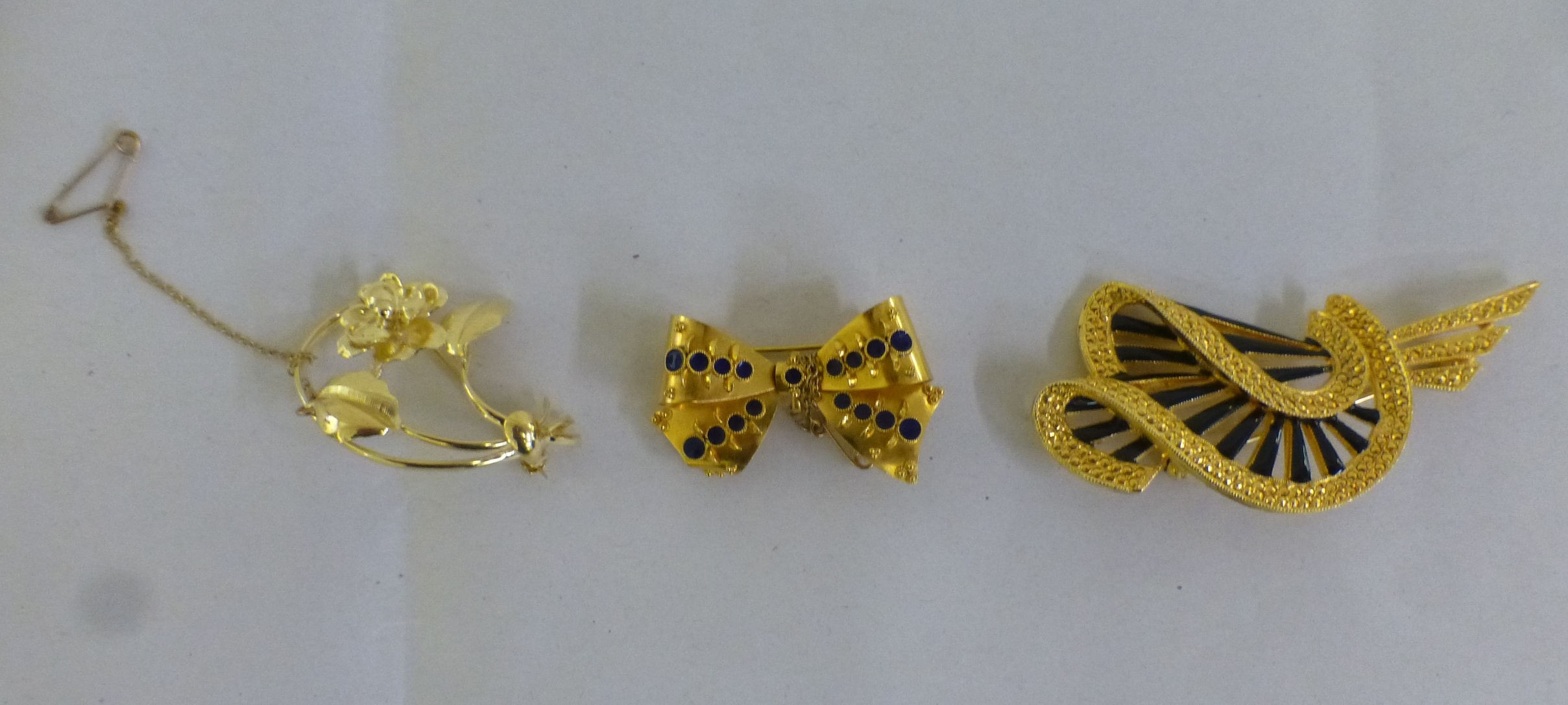 Items of personal ornament: to include a yellow floral design brooch stamped 750 (approx. 6grms)