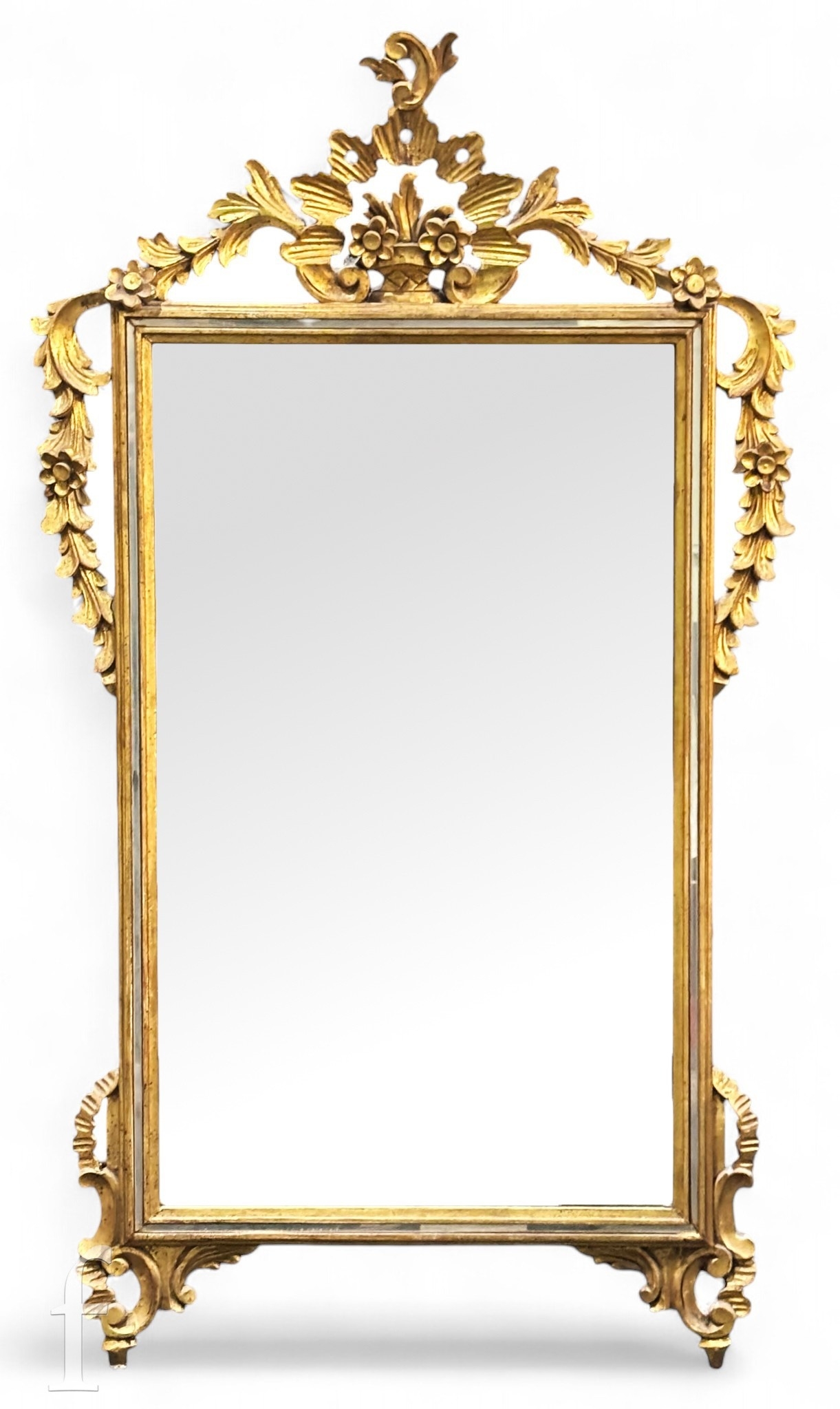 A reproduction wall mirror with a swagged floral garland gilt frame, height 114cm and width 64cm.