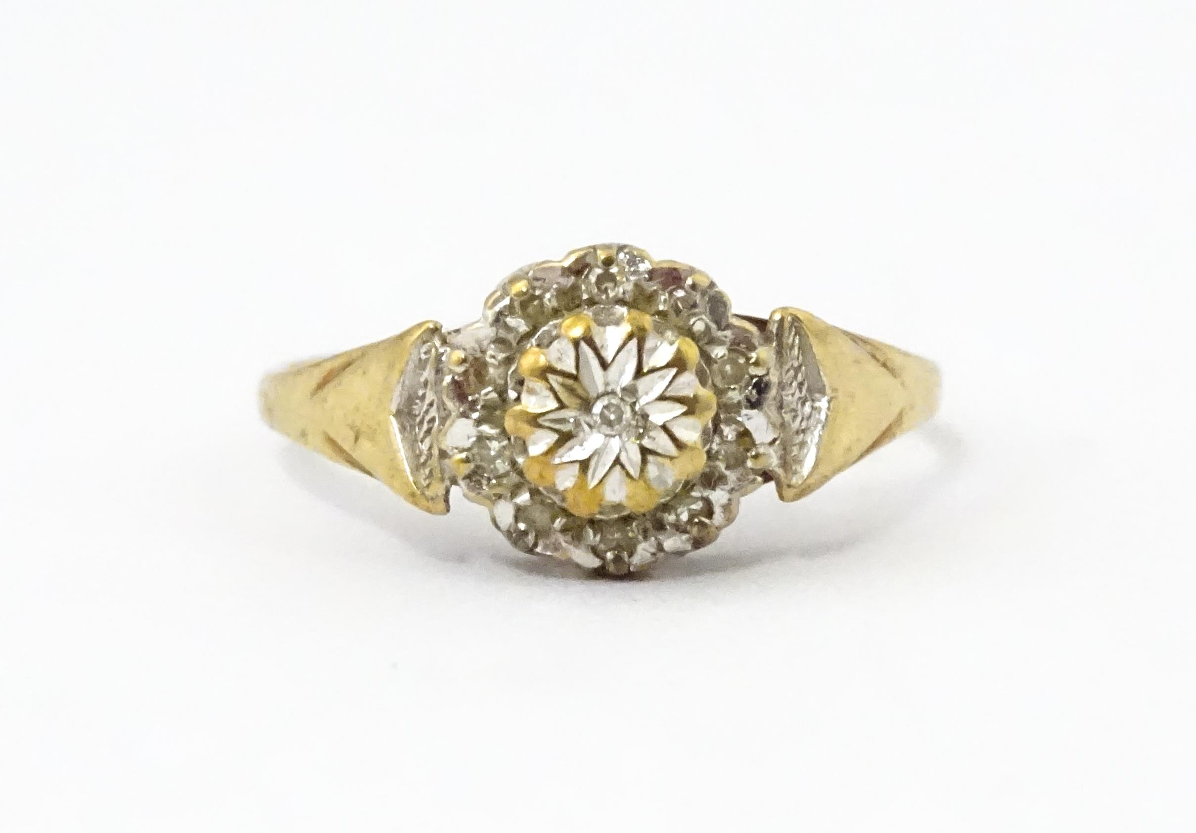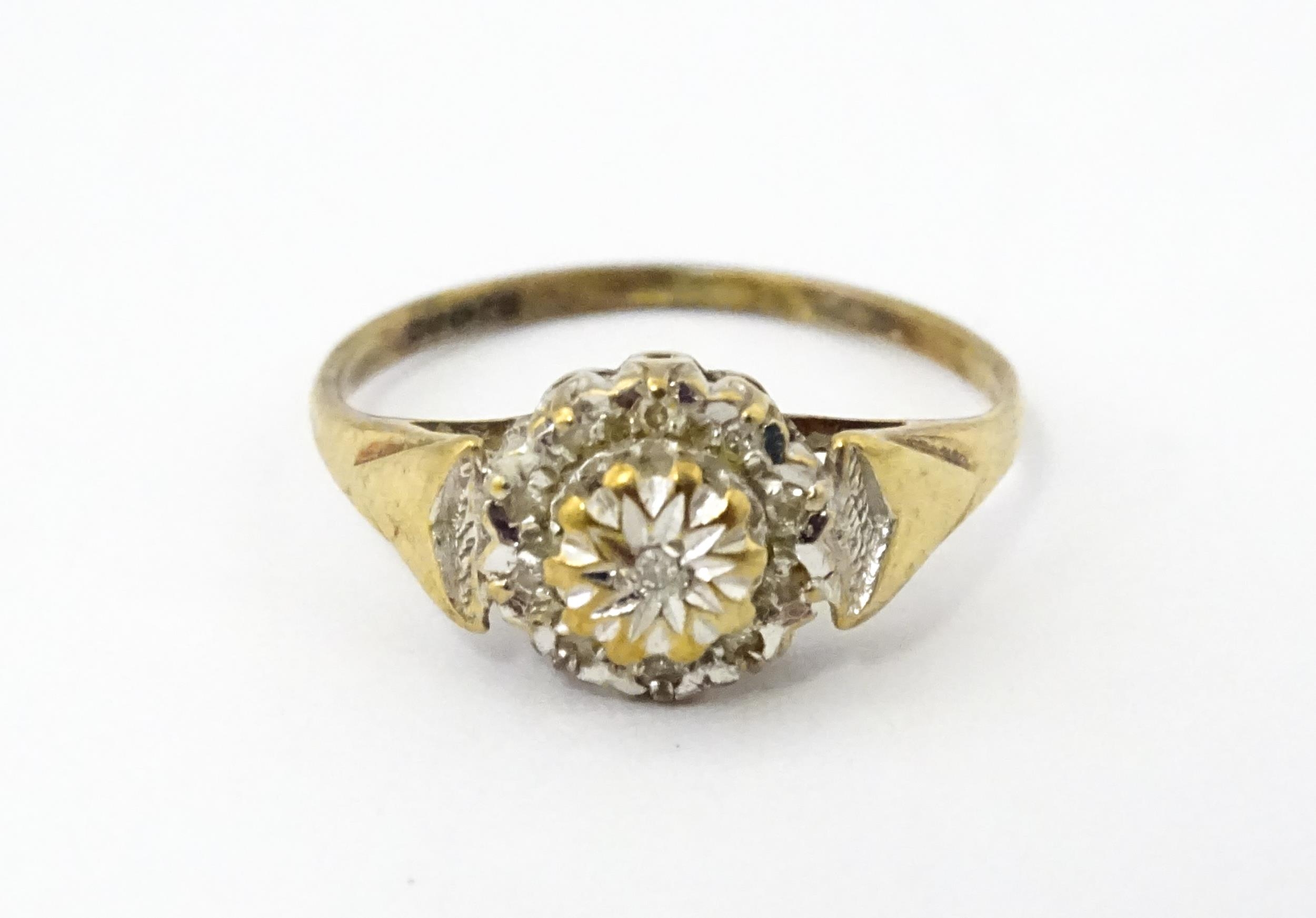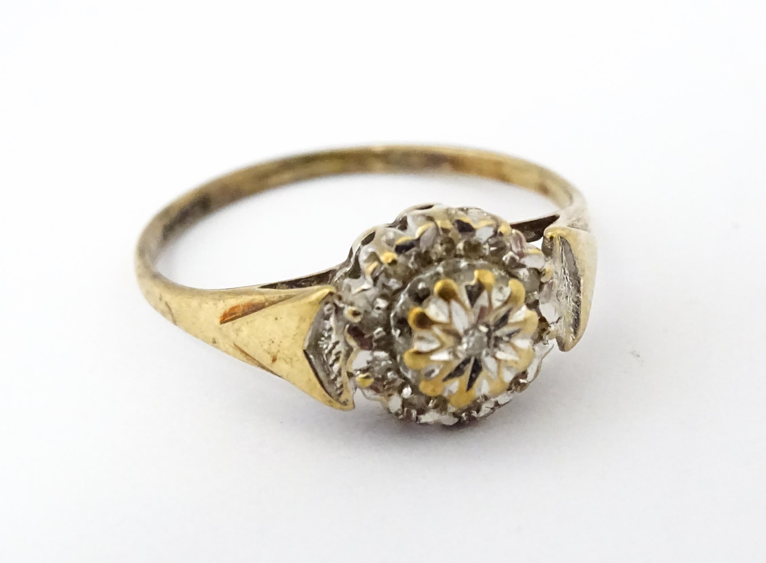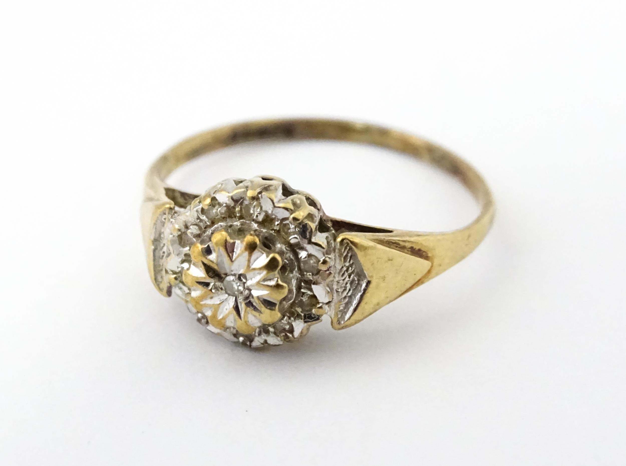 A 9ct gold ring set with diamonds. Ring size approx. K 1/2