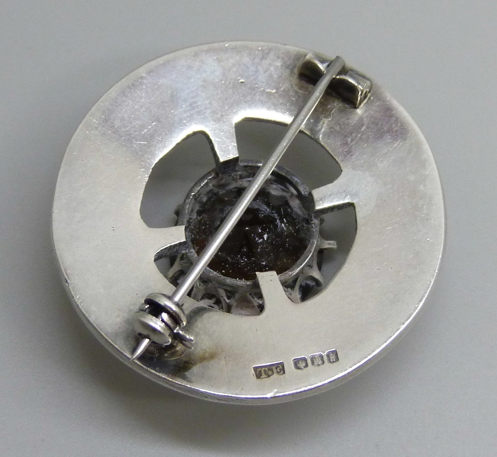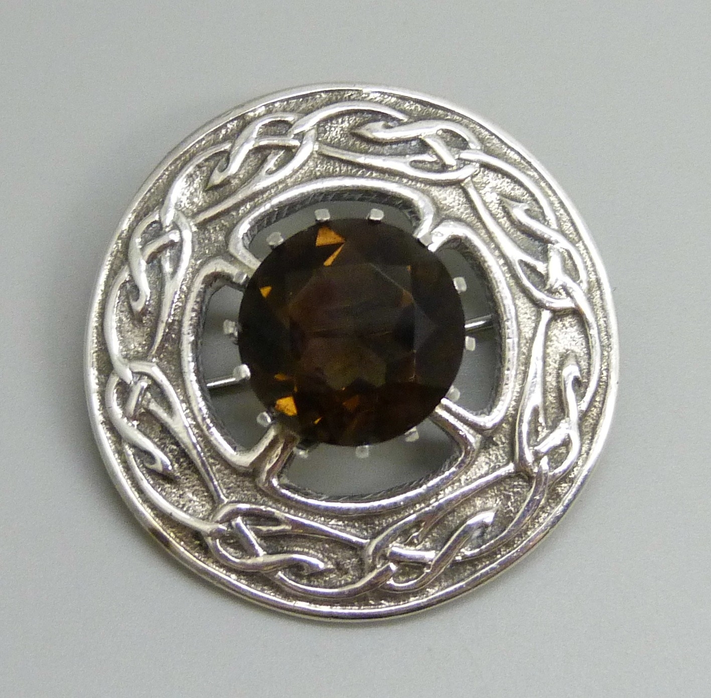 A Scottish silver and smoky quartz brooch, T.E, Edinburgh, 1991, 3.4cm
