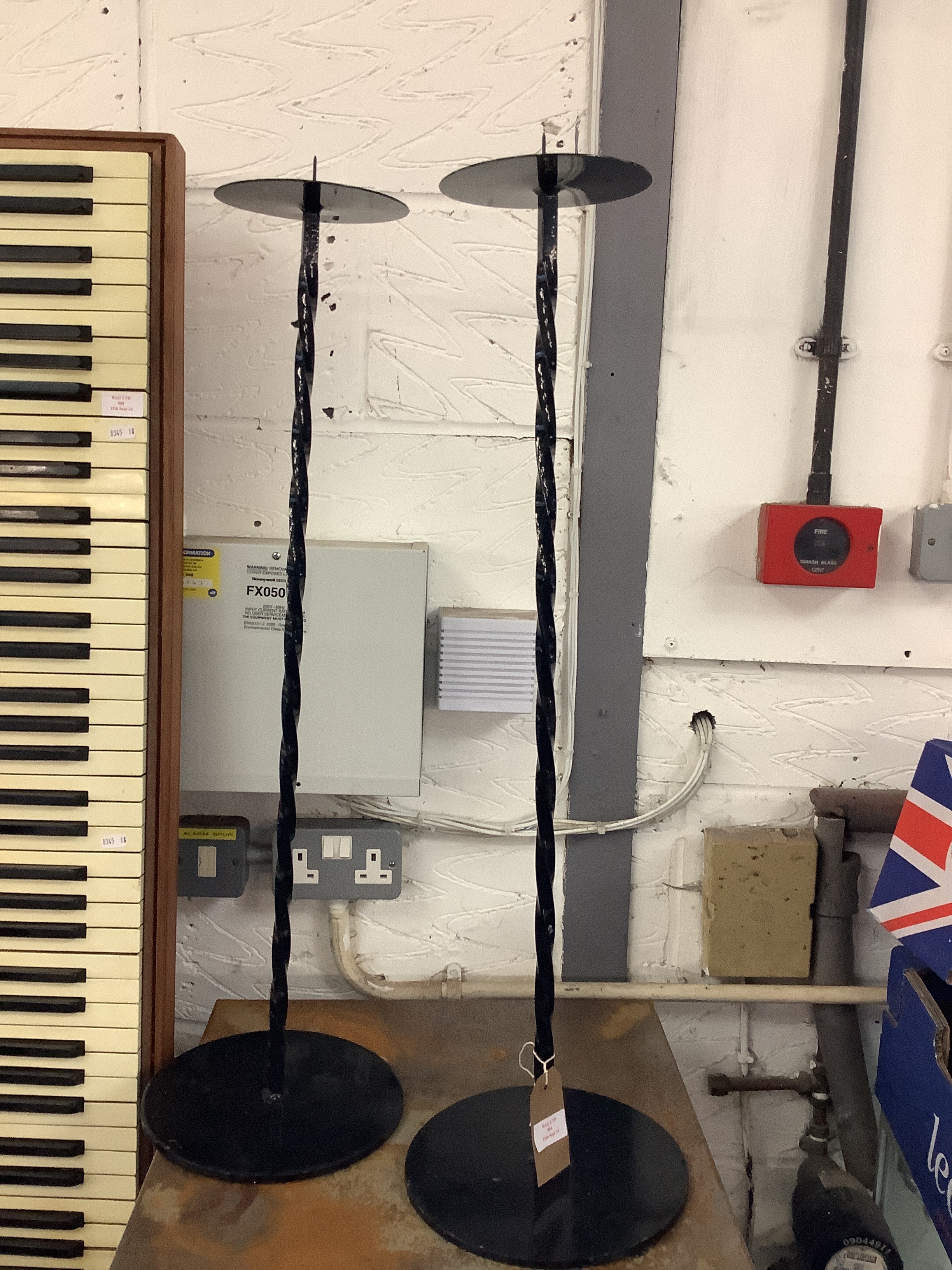 Two iron candlesticks