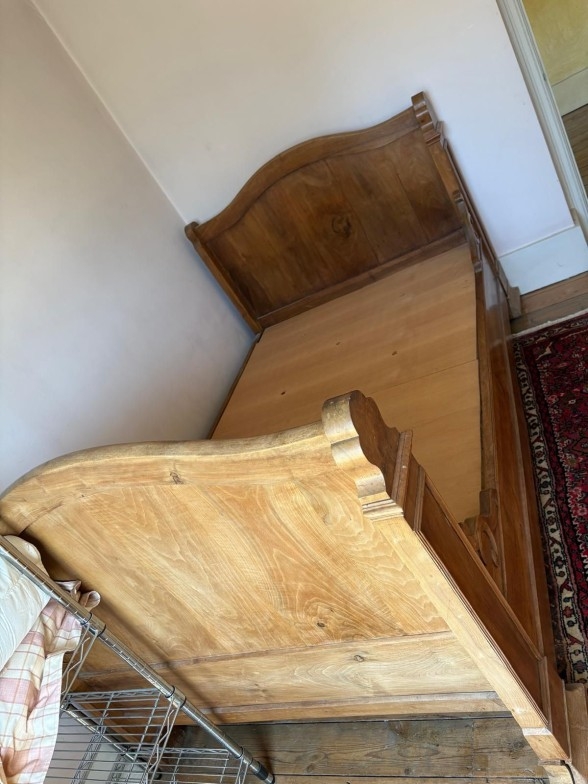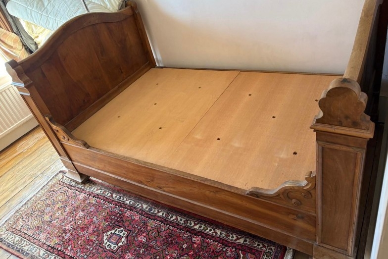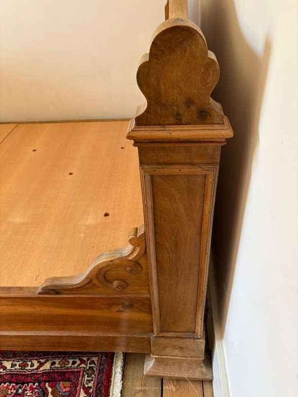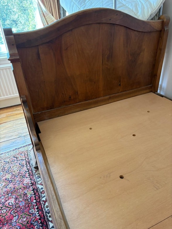 English pine sleigh bed with headboard and footboard