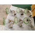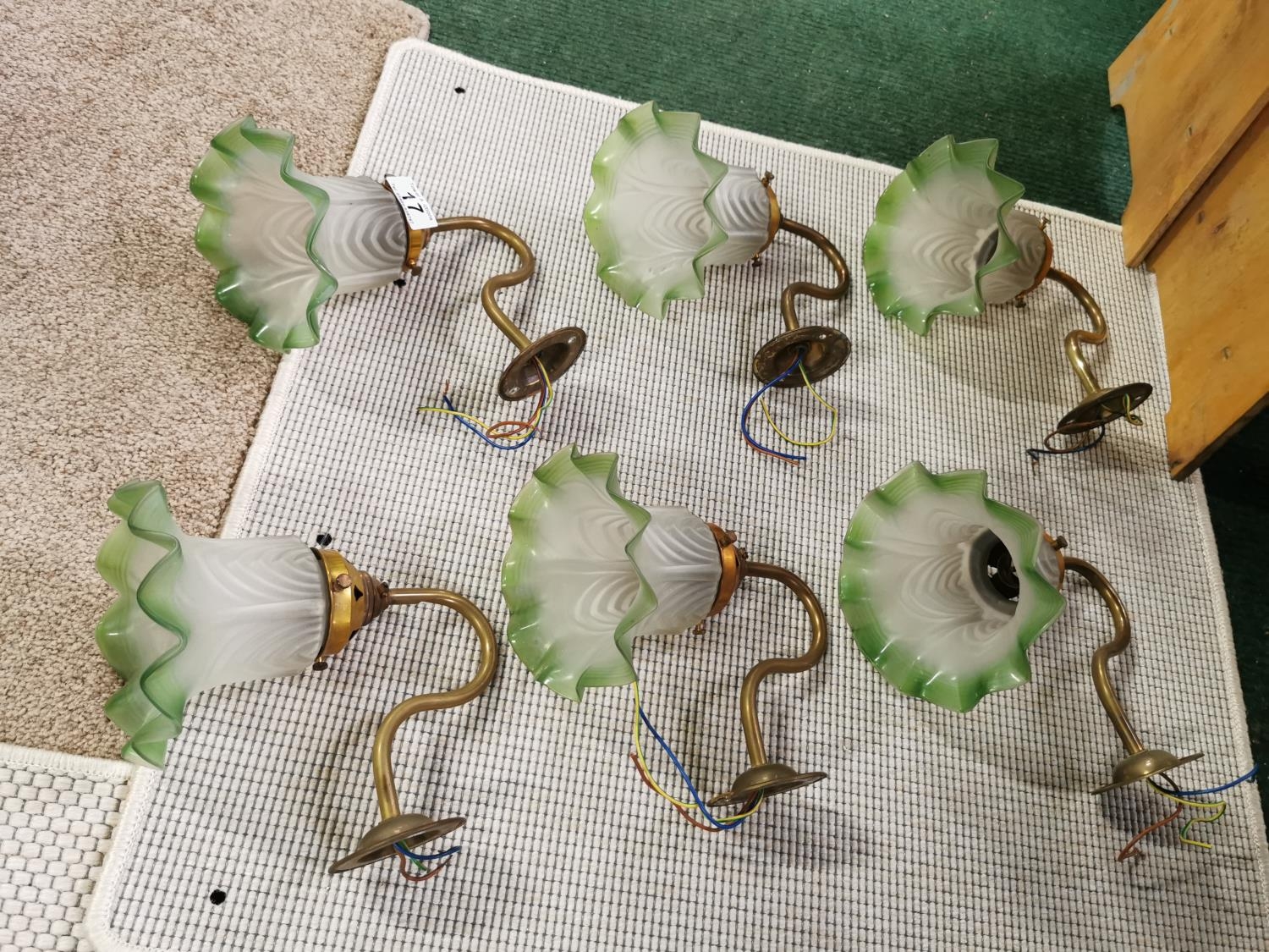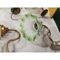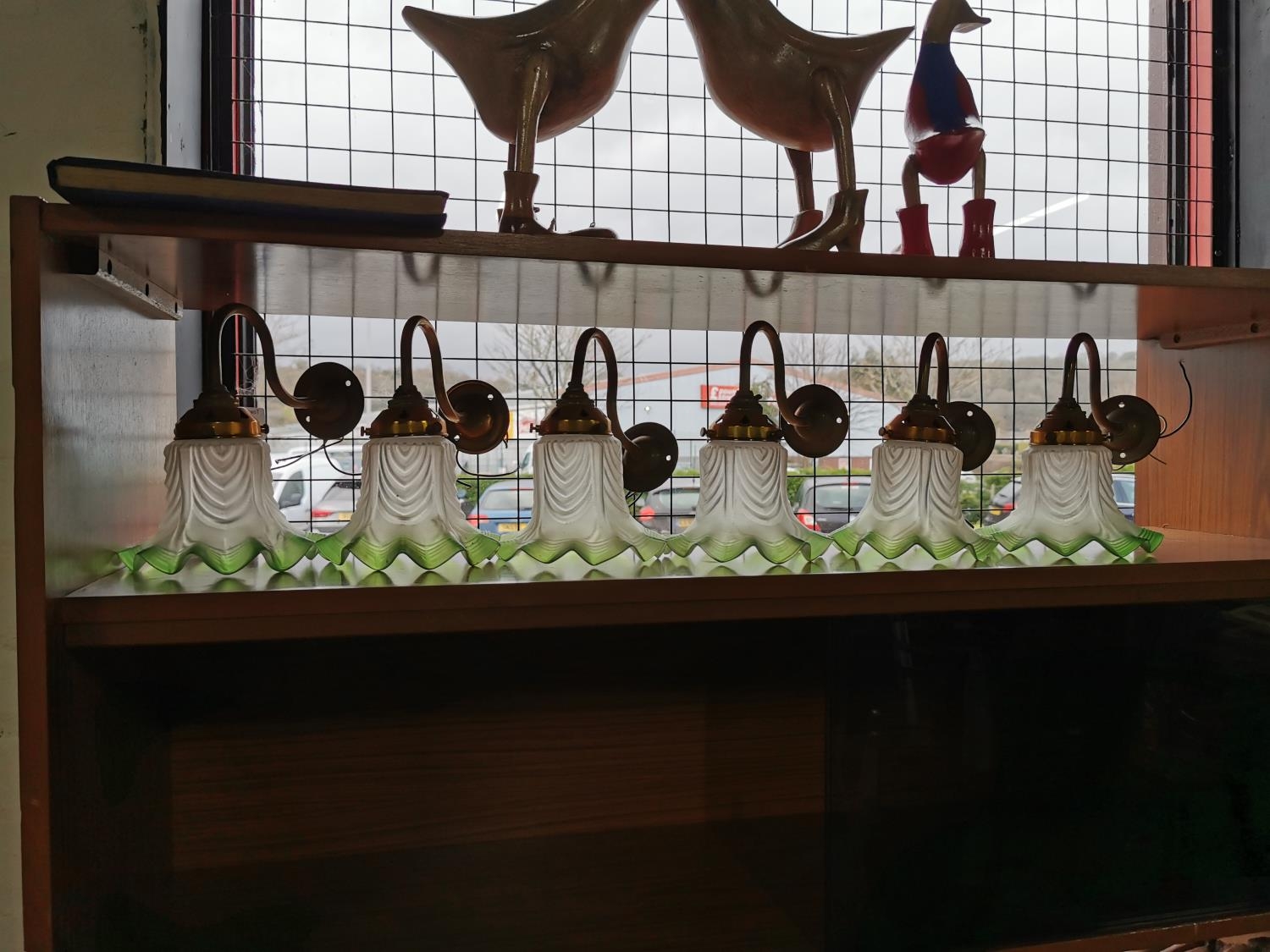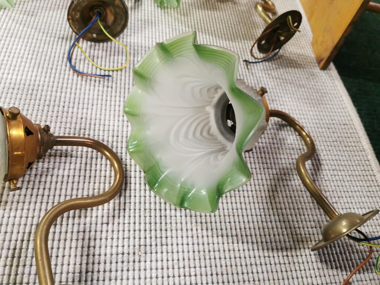 Set Of Six Vintage French Brass Wall Lights With Good Green Glass Shades