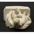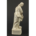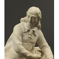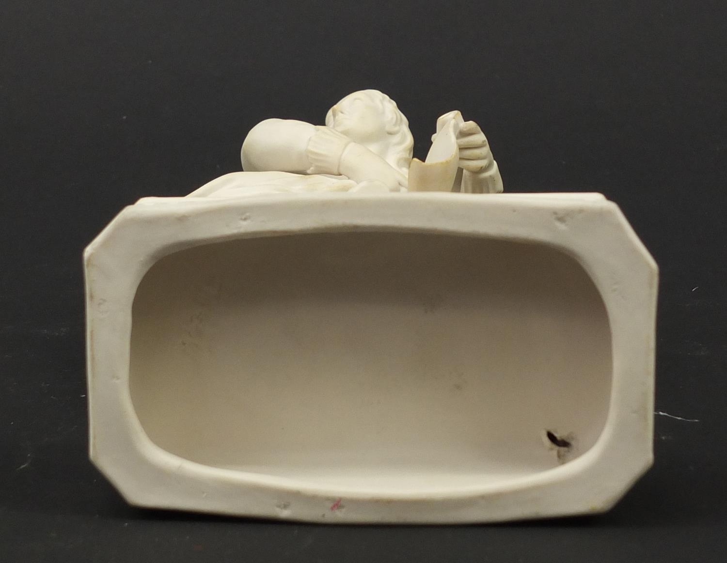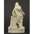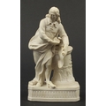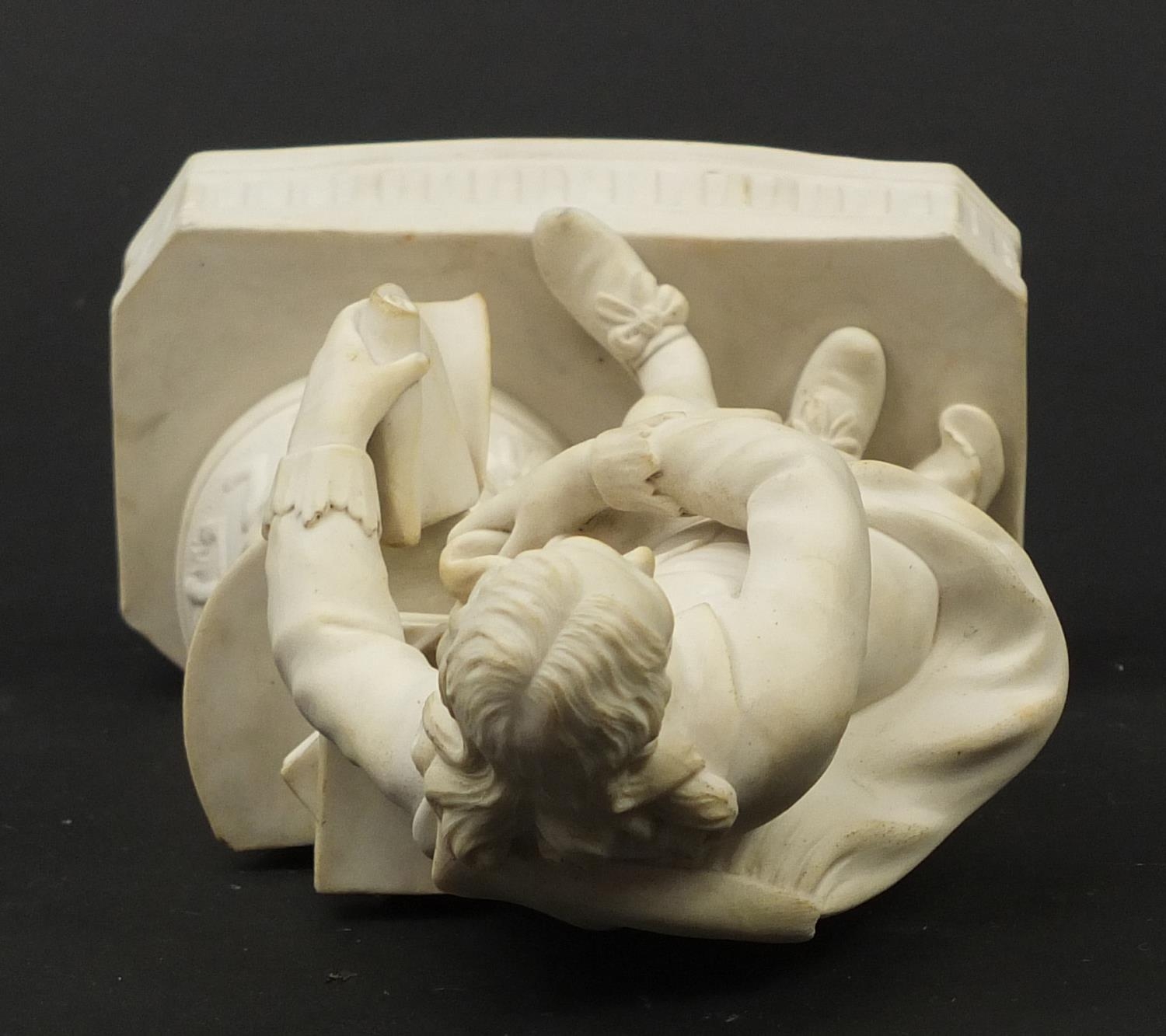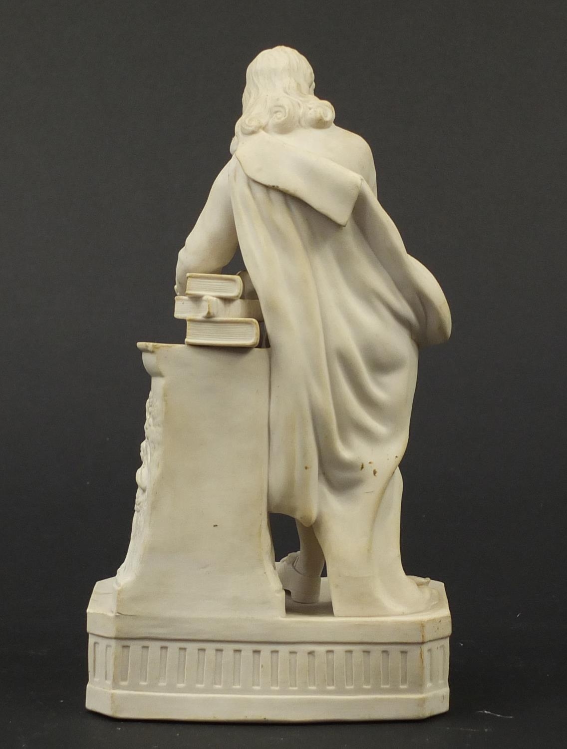 Victorian parian figure of a man beside a pillar holding a scroll, 24.5cm high