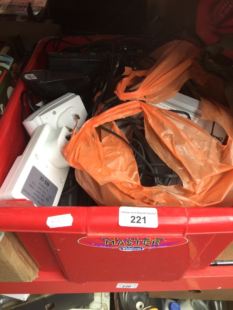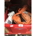 A crate with Dell laptop, radio, other computer items