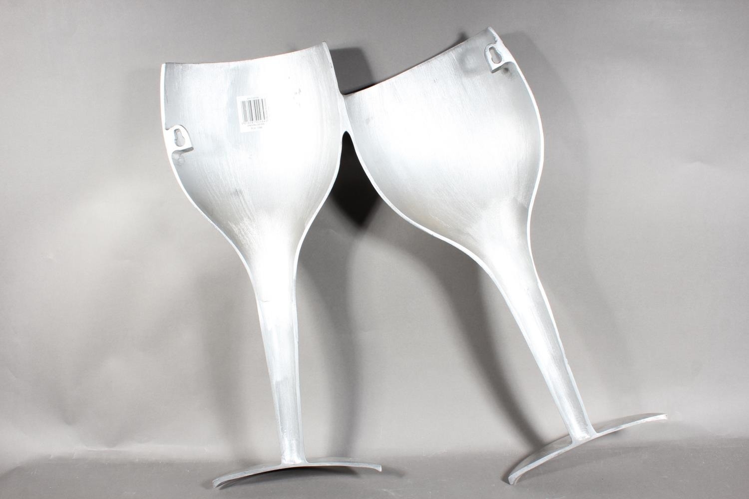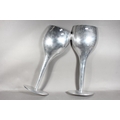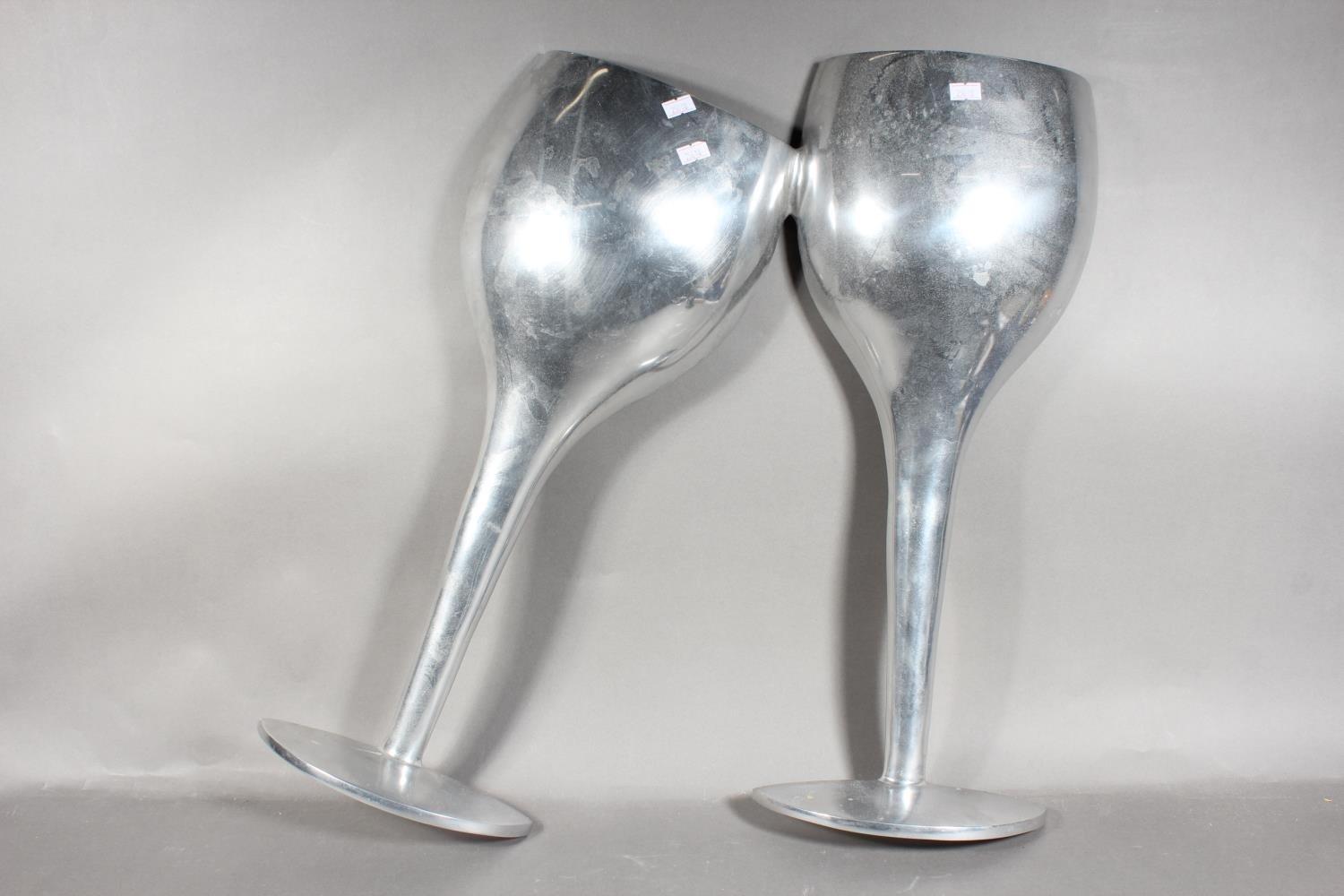 Pair of aluminium large decorative champagne flutes, 55cm high.