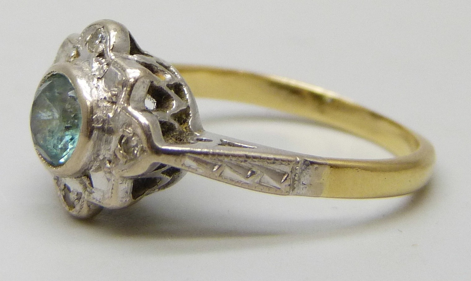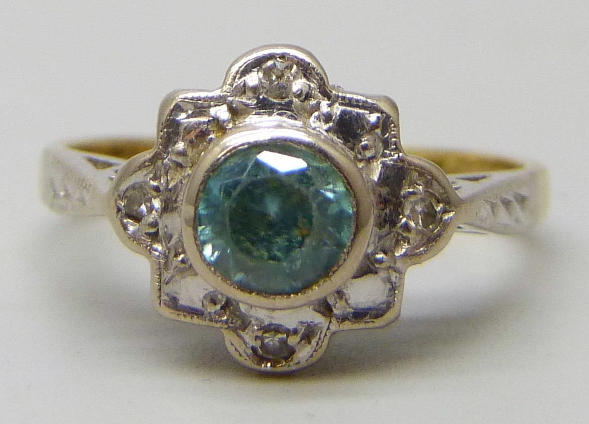 An 18ct gold, topaz and diamond ring, 3.2g, I