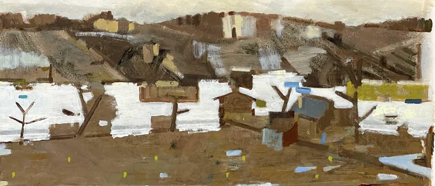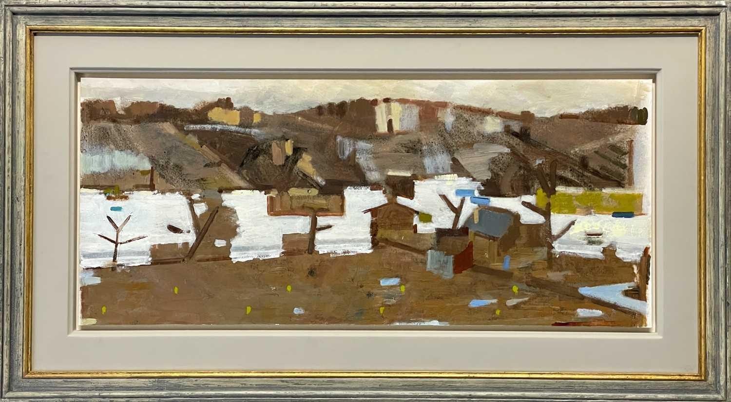 Michael UPTON (1938-2002) Brown Plymouth Sound Oil on paper, estate stamp to verso, 29 x 66 cm, framed 46 x 84cm This typical Michael Upton work is in excellent condition with no paintloss or discolouration. It is attractively float-mounted with the mount also in good condition.
