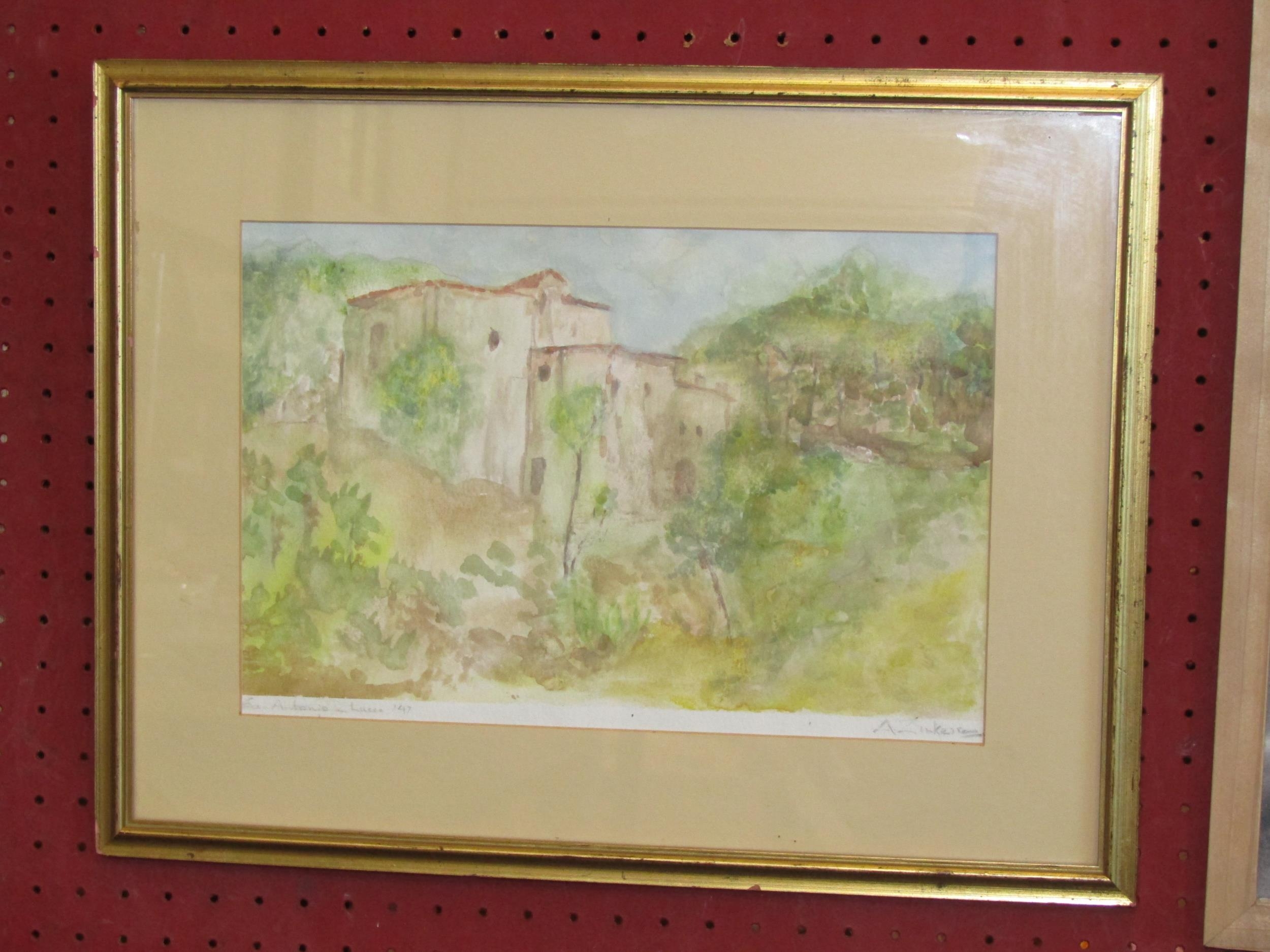 ANNA ZINKEISEN (1901-1976): A watercolour landscape scene titled "San Antonio Z. Lucca" dated '47, signed lower right, framed and glazed, 20cm x 30.5cm image size