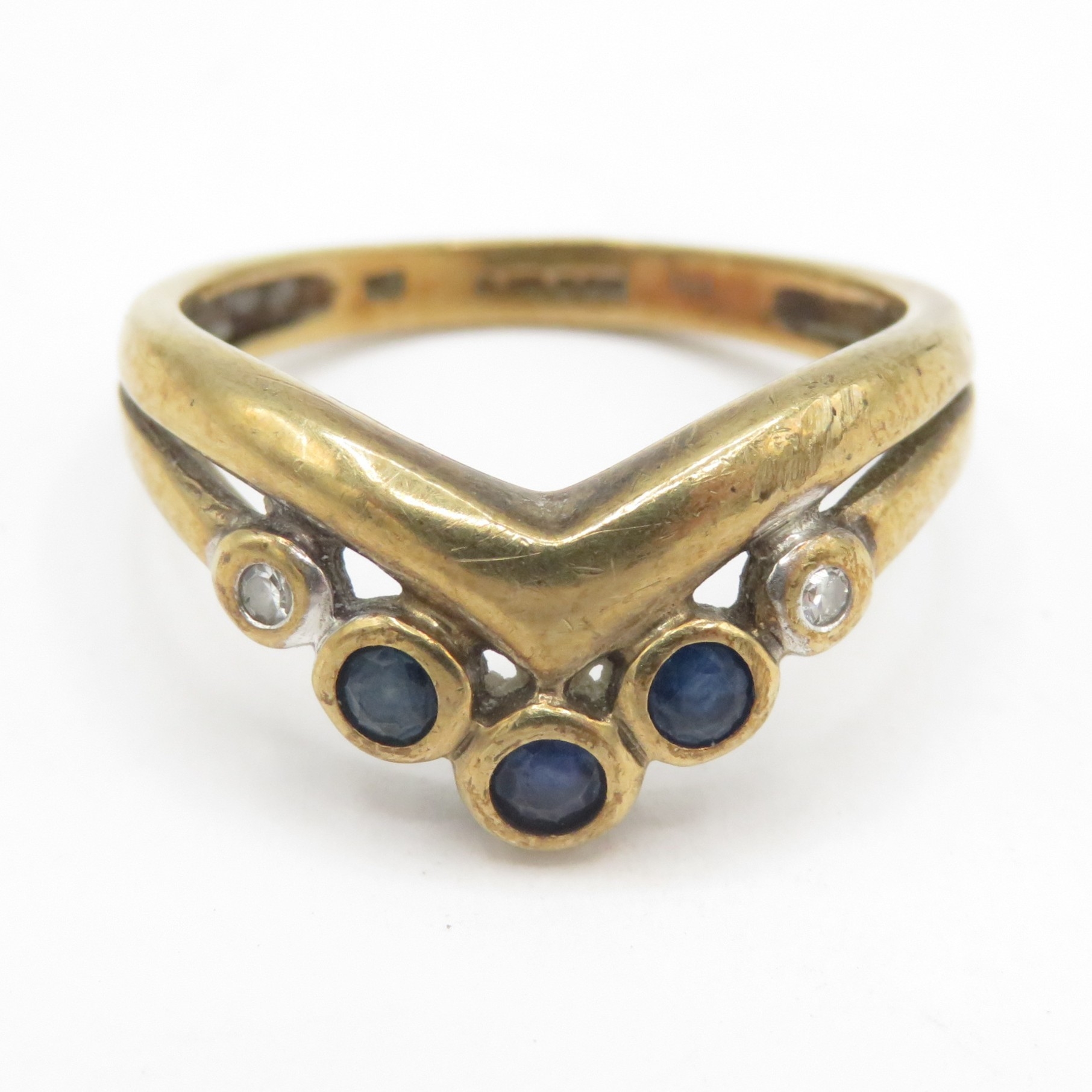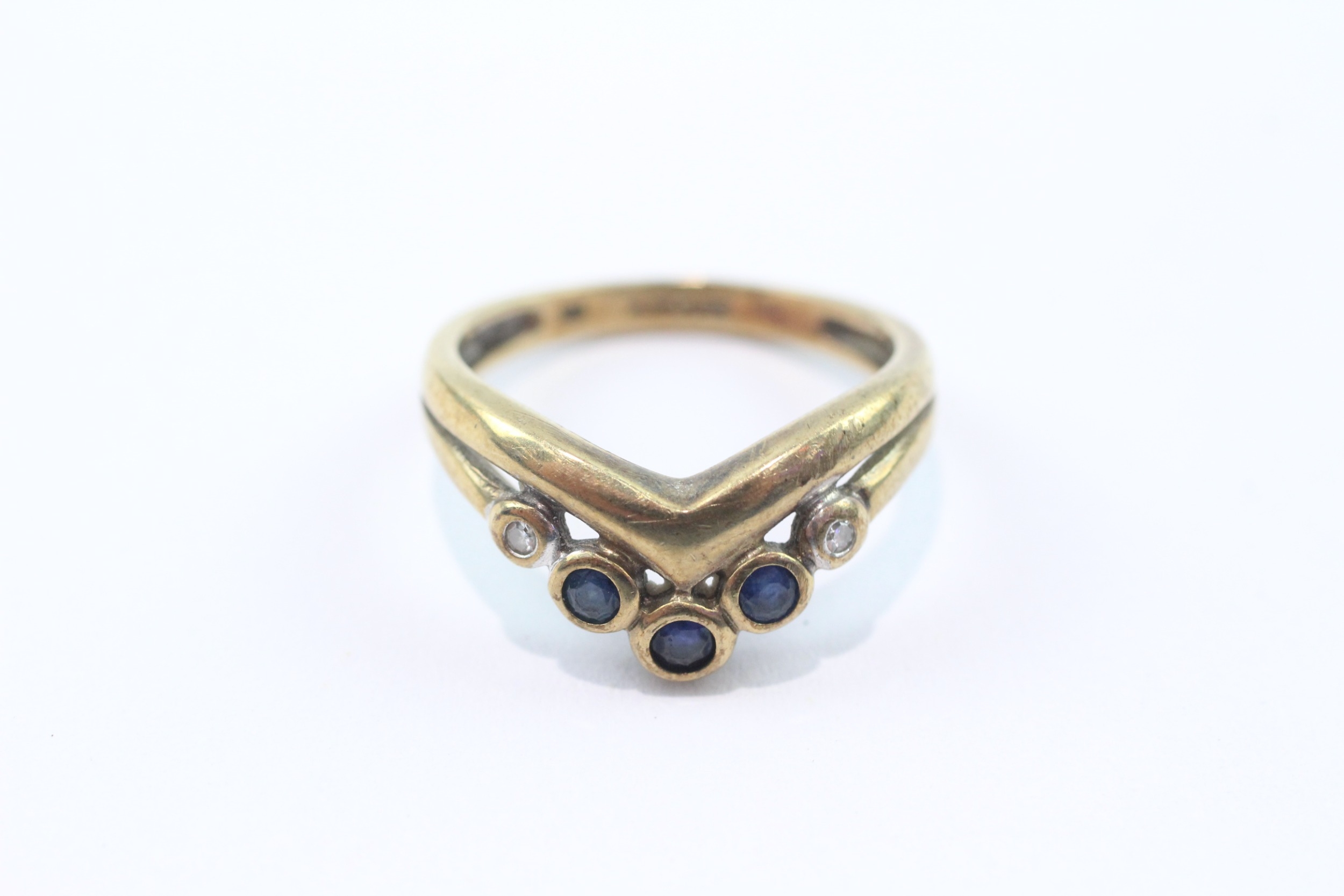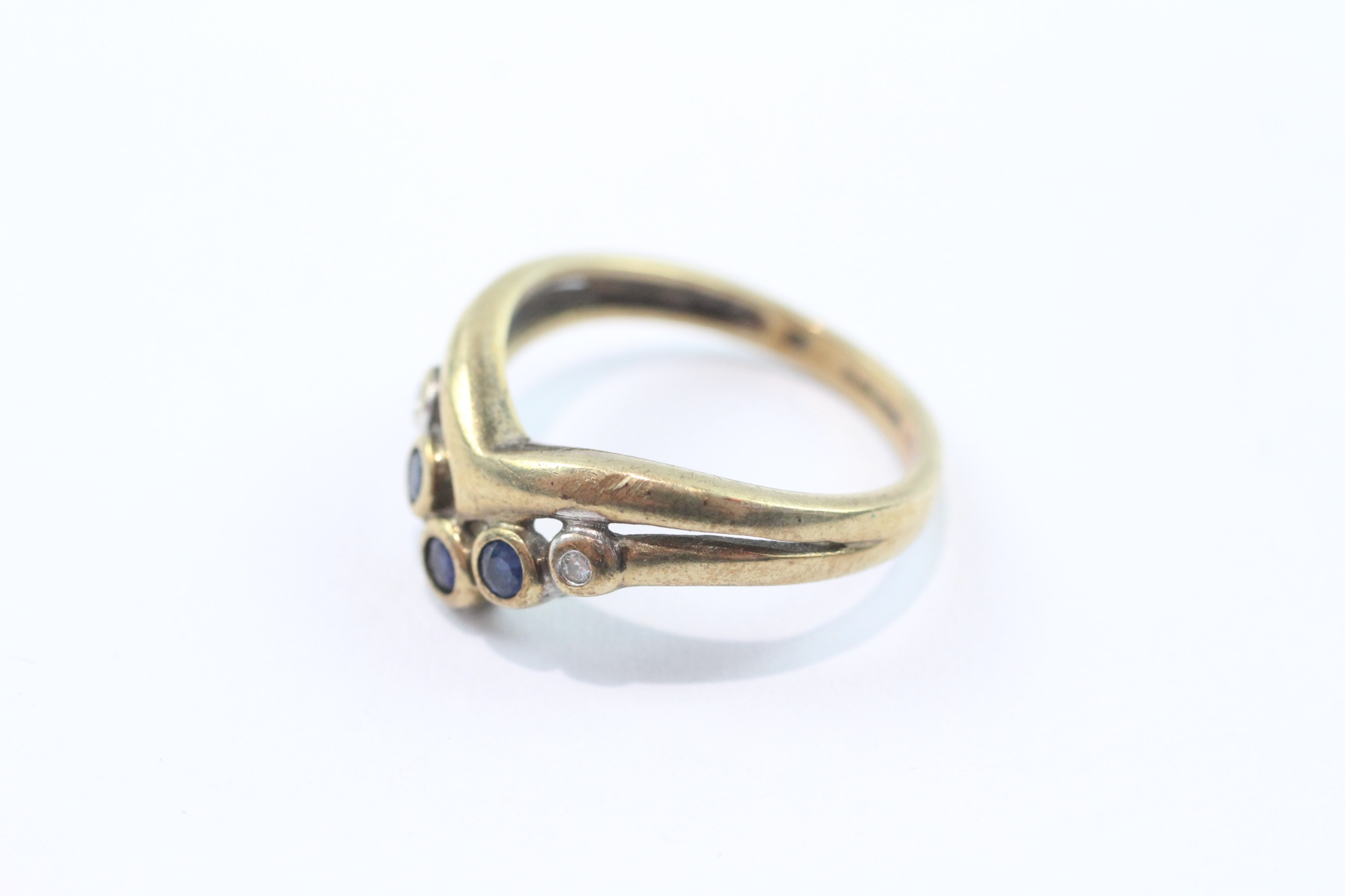 9ct gold sapphire and diamond ring (2.7g) Size M 1/2