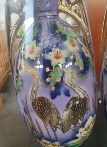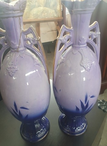 Pair Of Antique Hand-Painted Vases (1x Handle a/f)