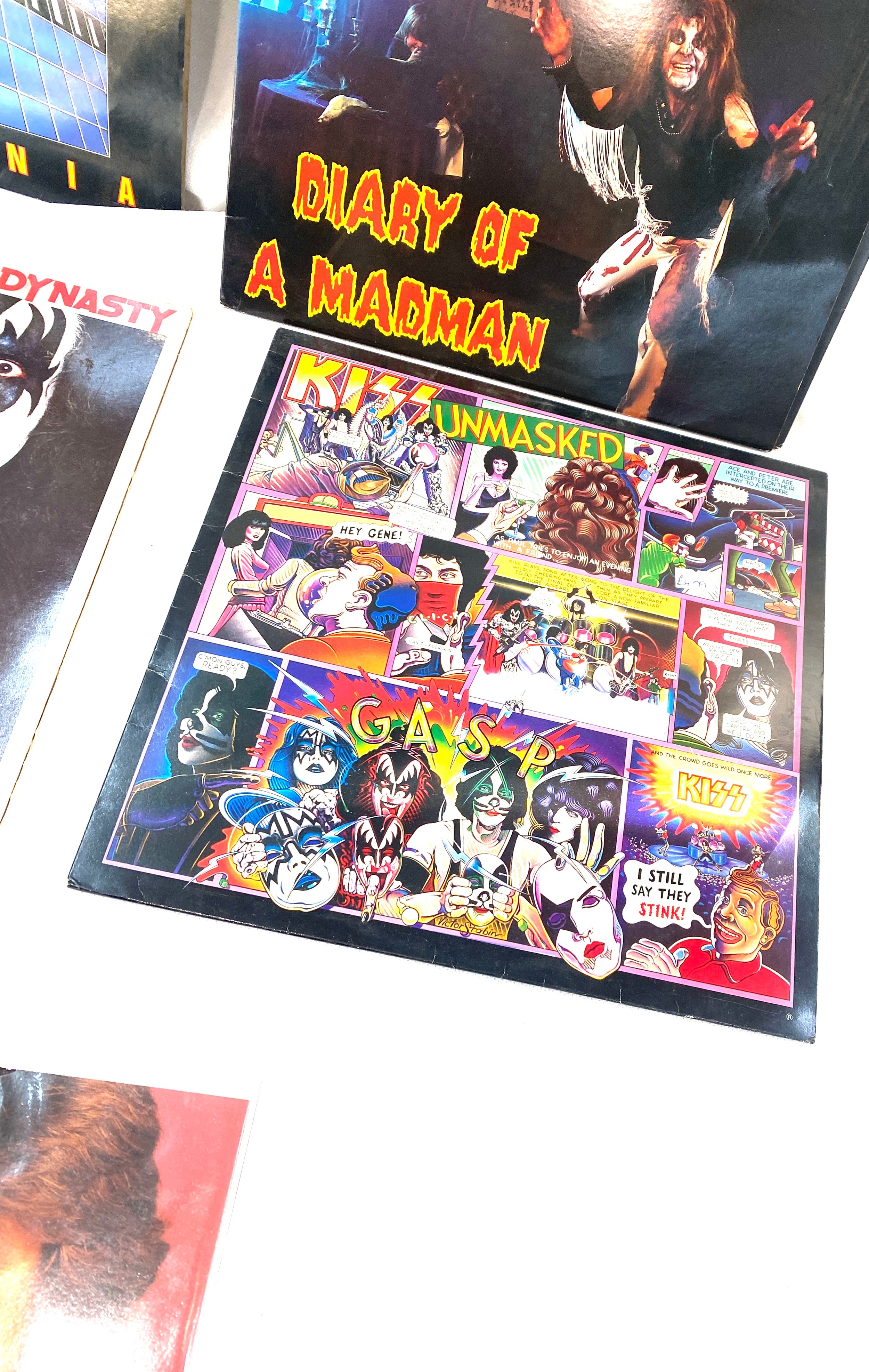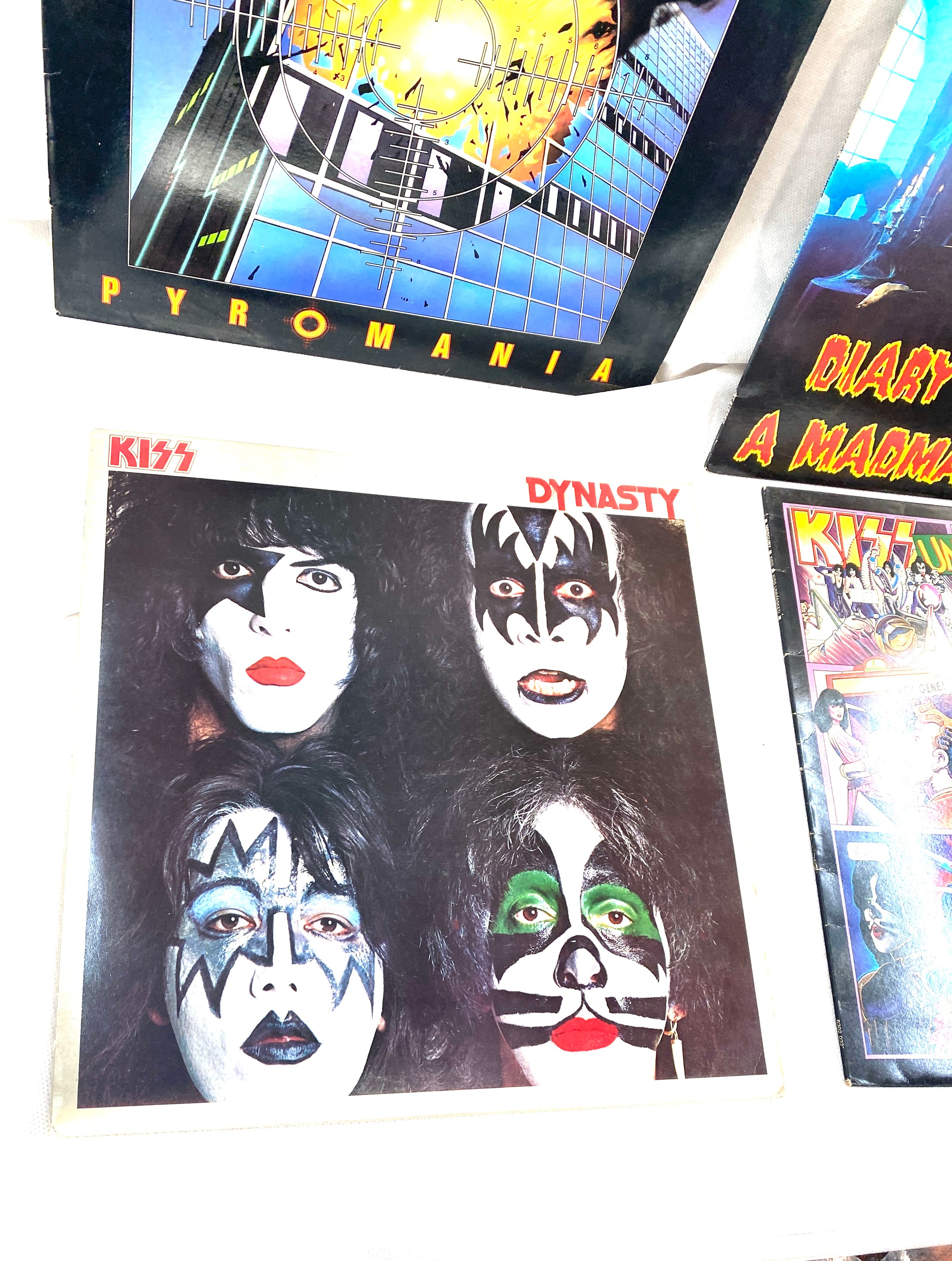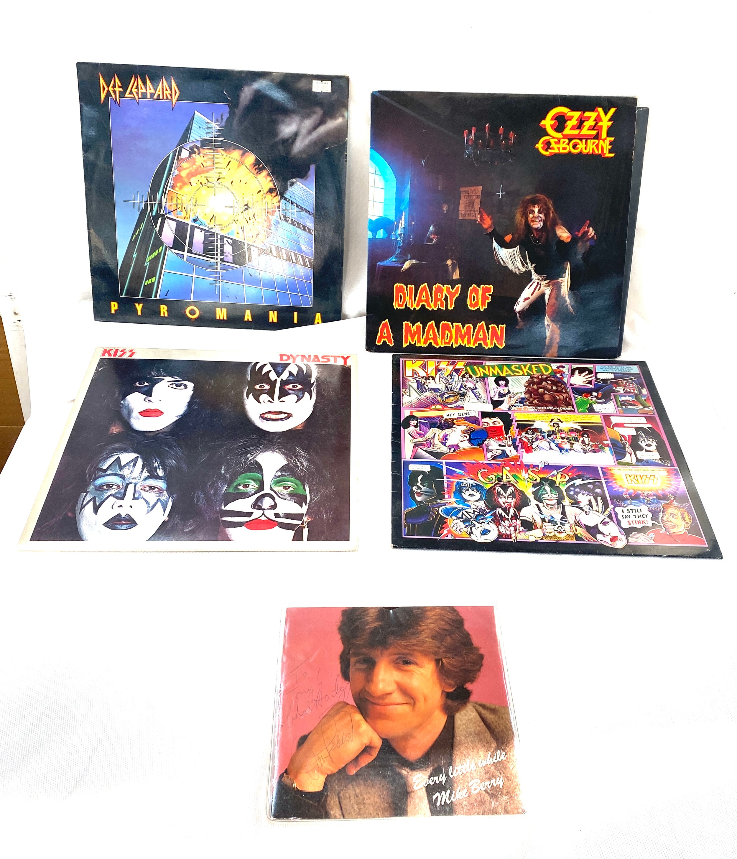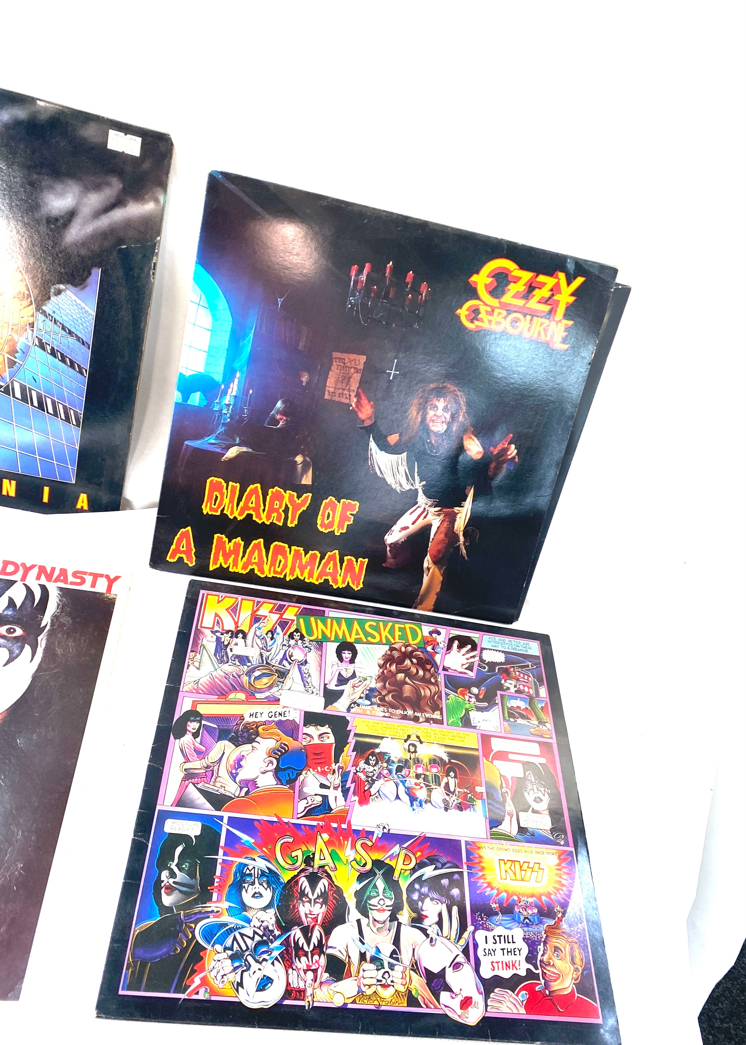 Selection of four vinyl LPs to include Ozzy Osbourne, Kiss and Dek Leppard